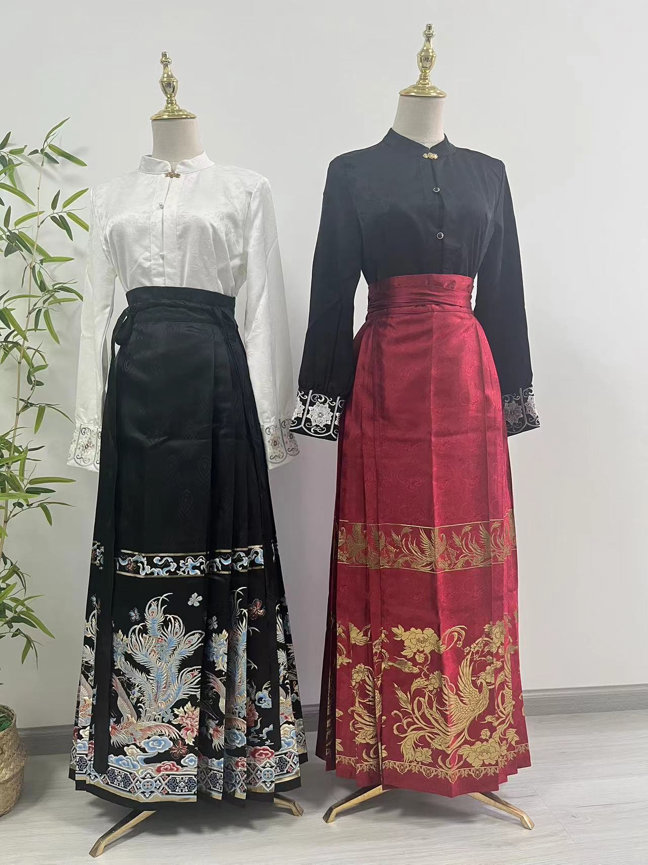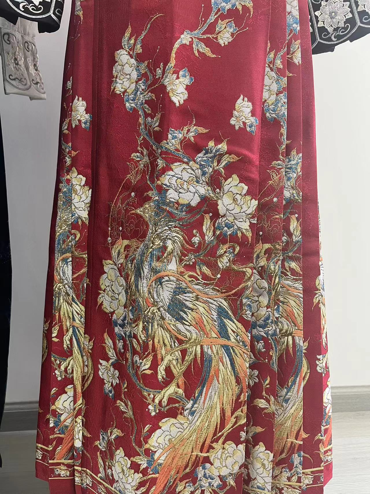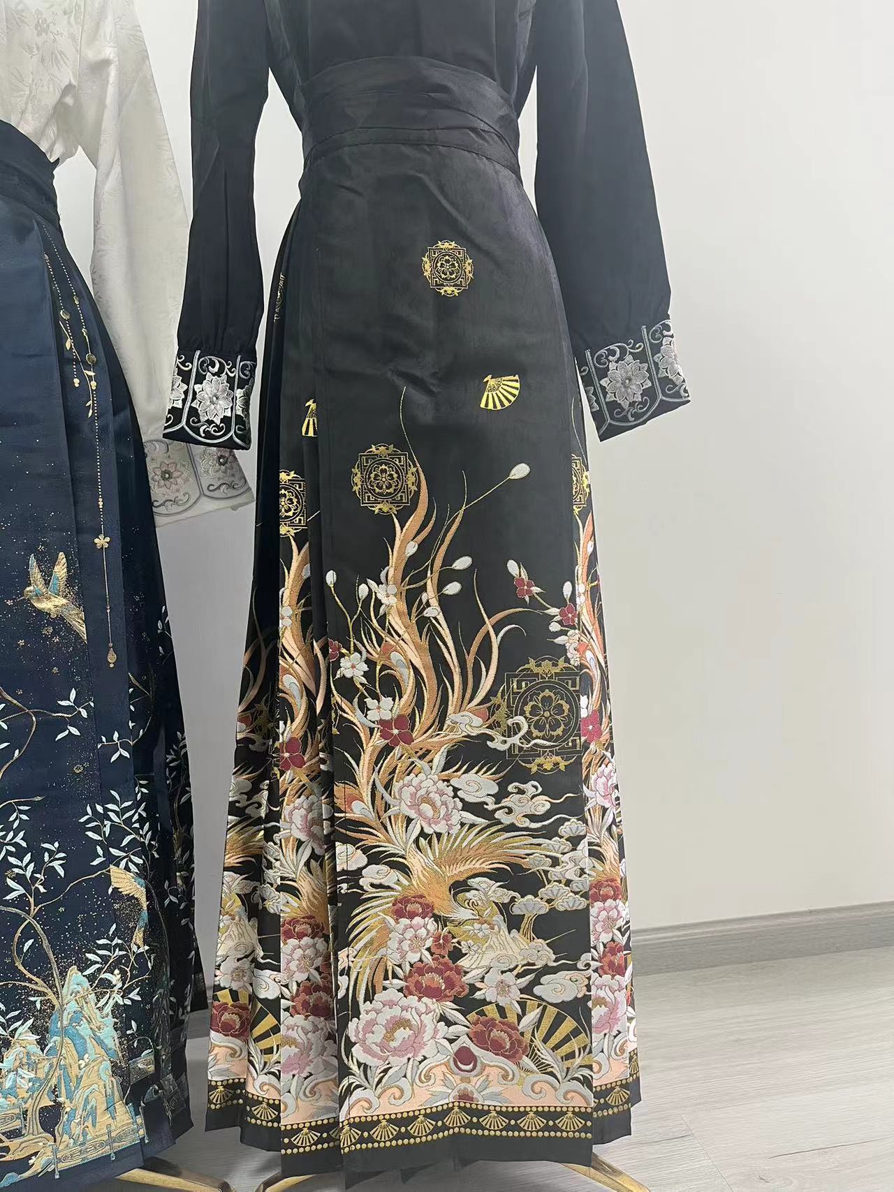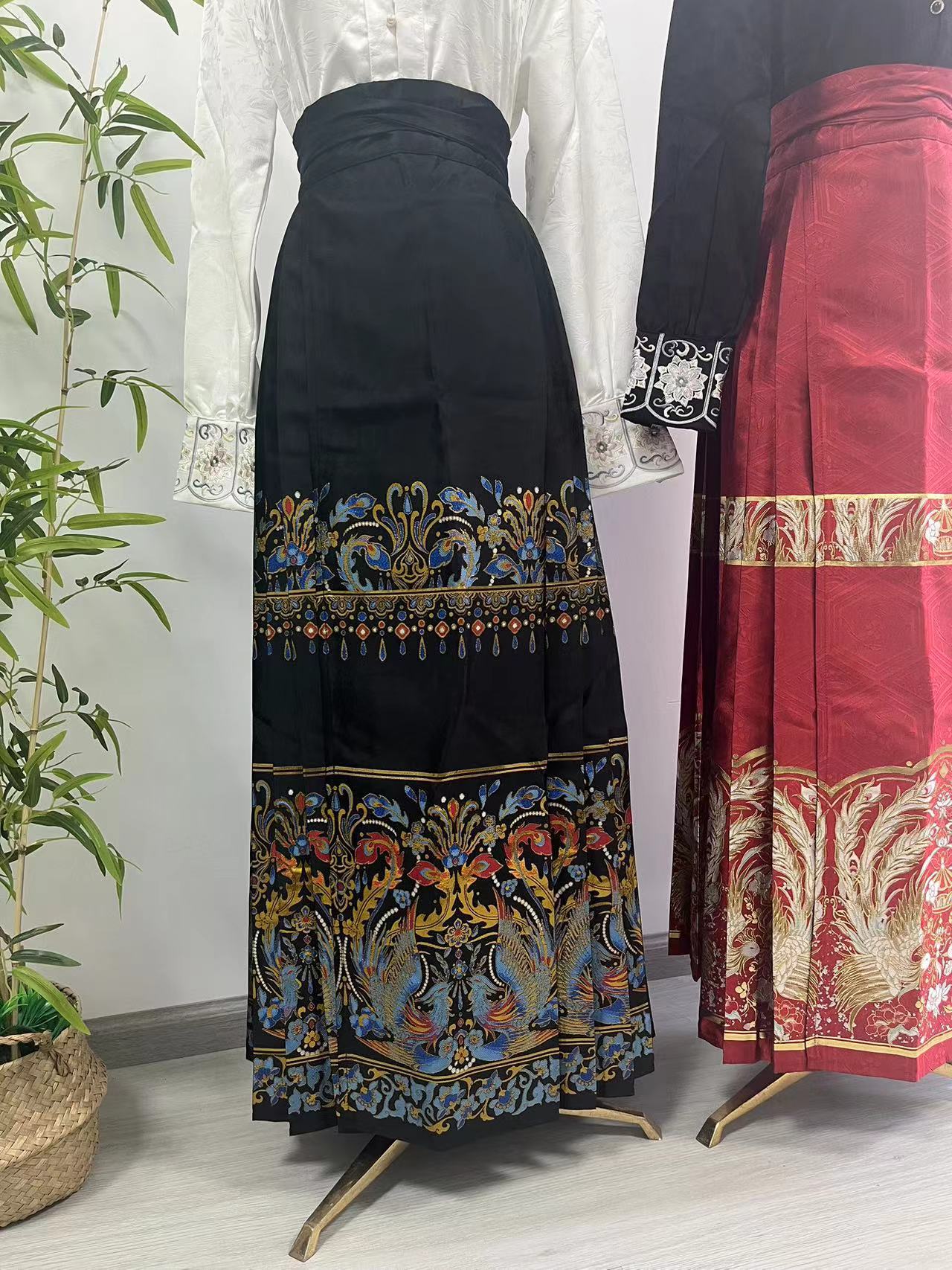 Ming конская юбка 2024 осень-зима новая атласная золотая жаккардовая женская юбка конская юбка без принта