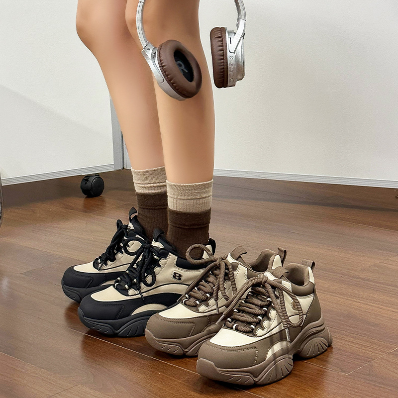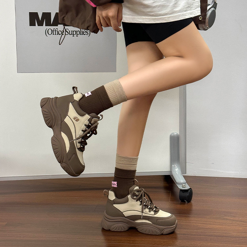 Утолщенные туфли для папы на толстой подошве, осень-зима 2024, новые кроссовки из натуральной кожи, повседневные универсальные маленькие женские туфли с внутренней стороны, спортивная обувь