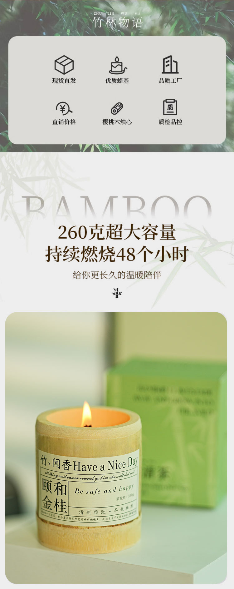 Бамбуковая ароматизированная свеча в помещении для домашнего длительного аромата соевый воск креативный бамбук