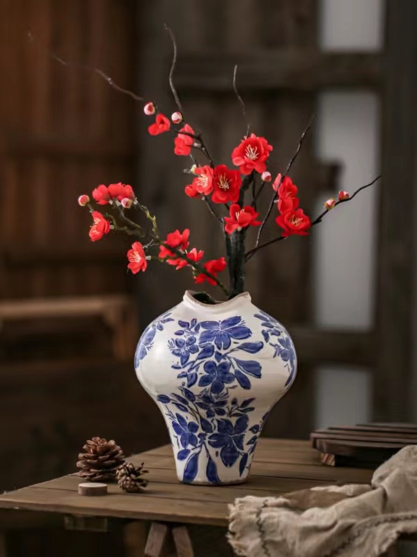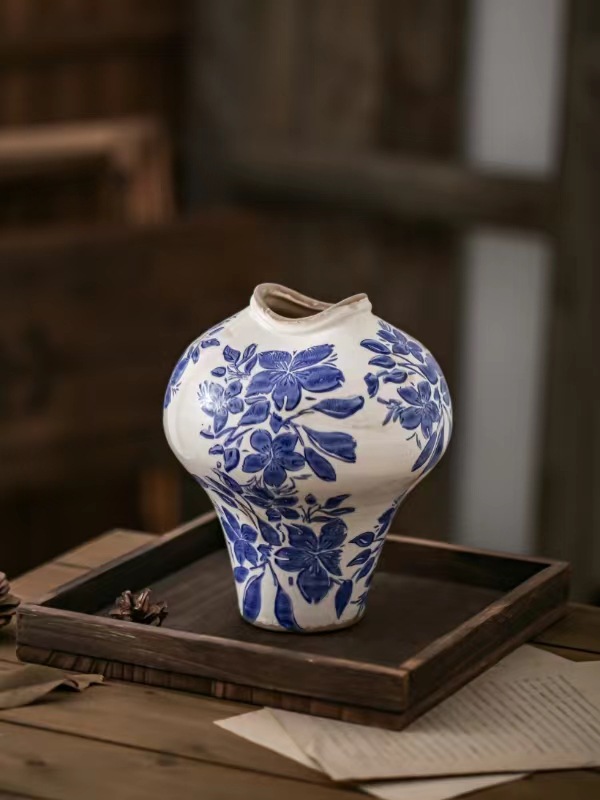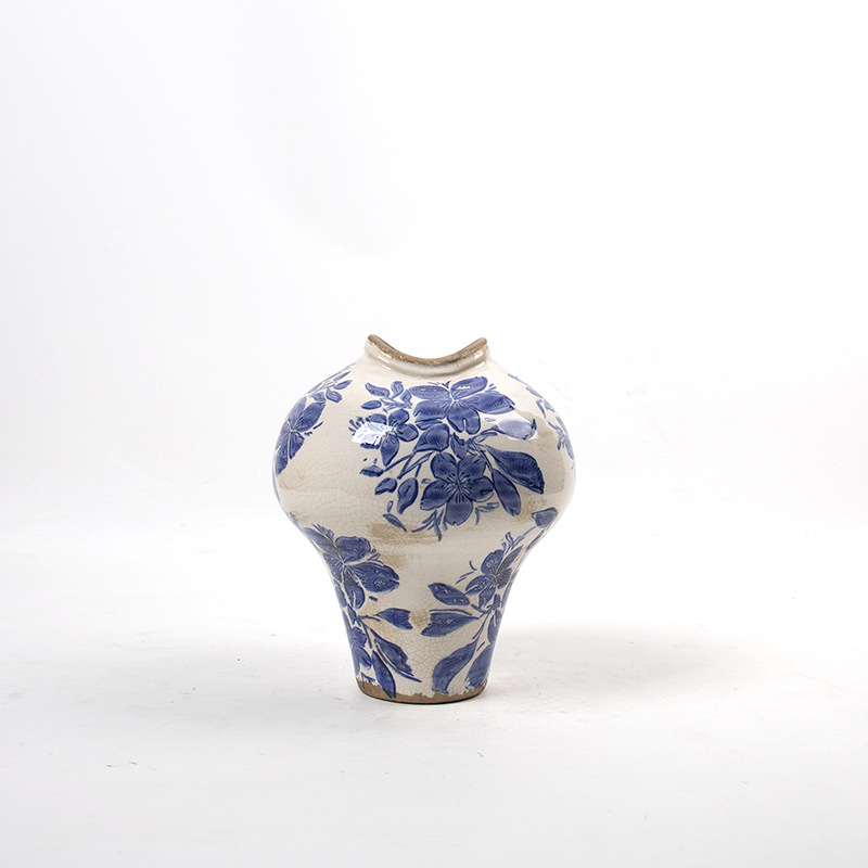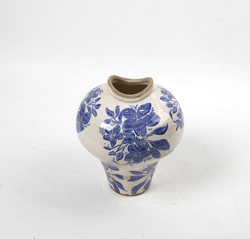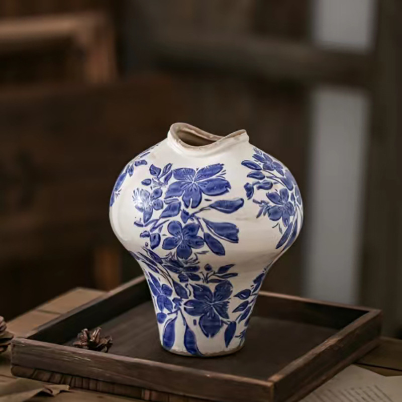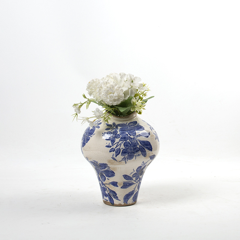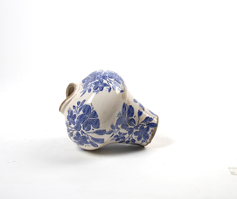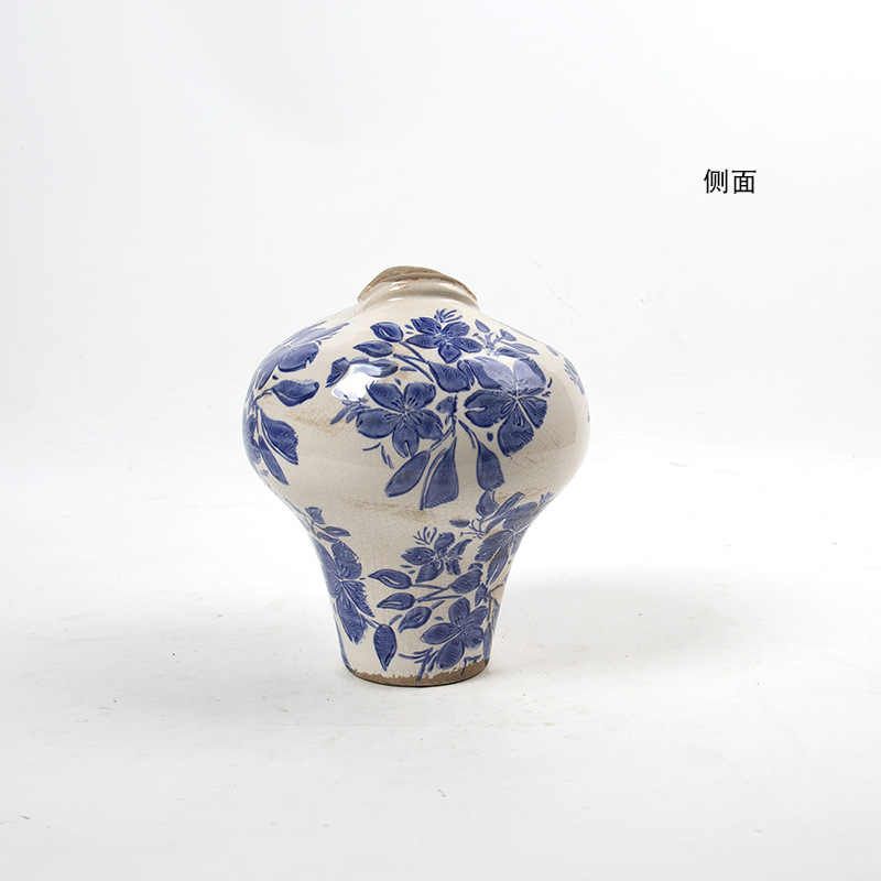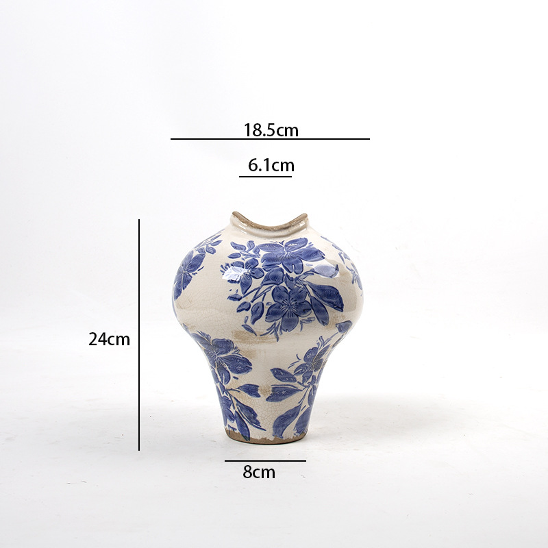 Классический ретро сделанный старый сине-белый фарфоровый керамический ваза с цветком и рыбьим ртом ваза домашний декор гостиной более года