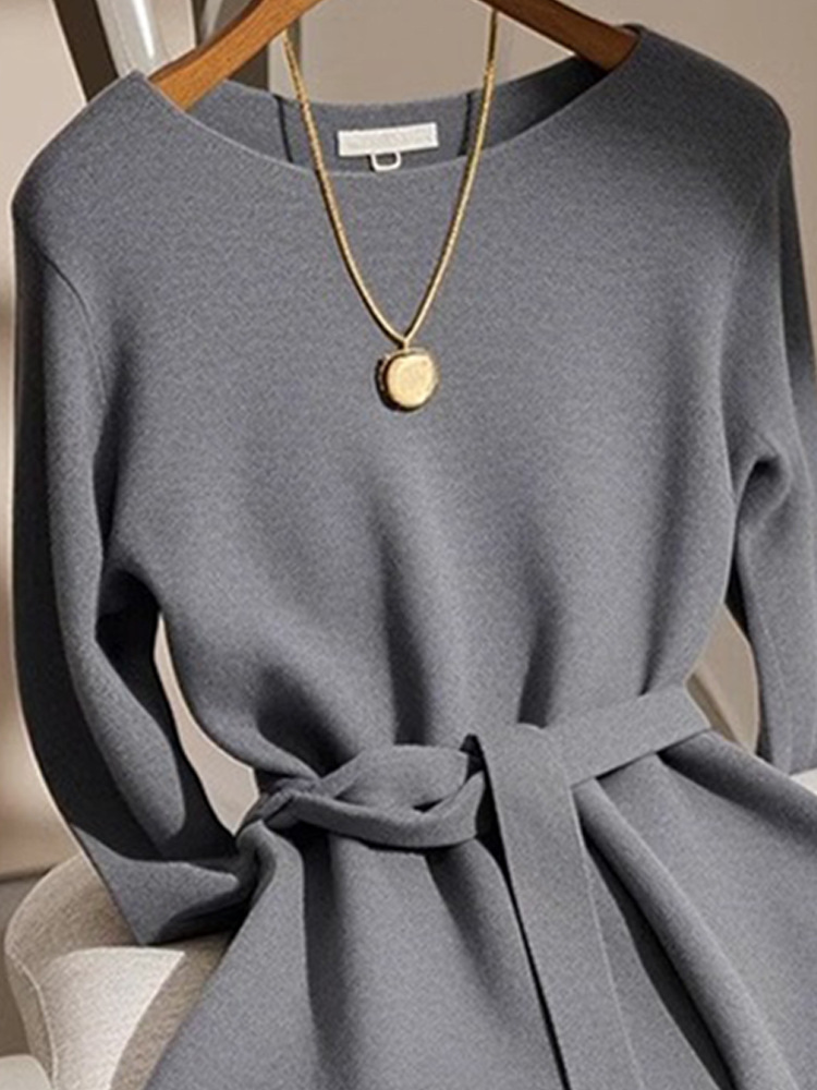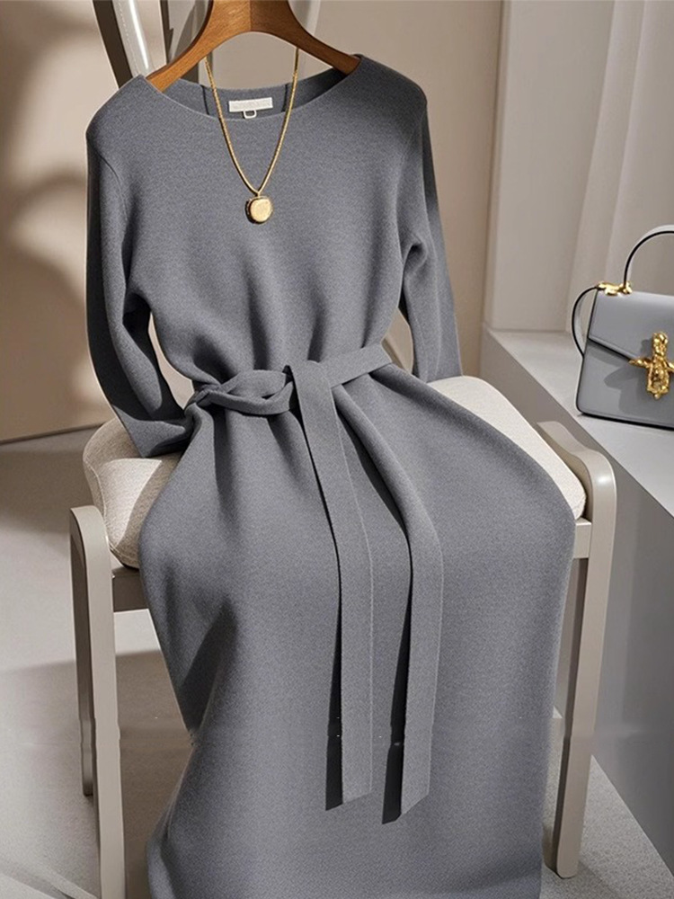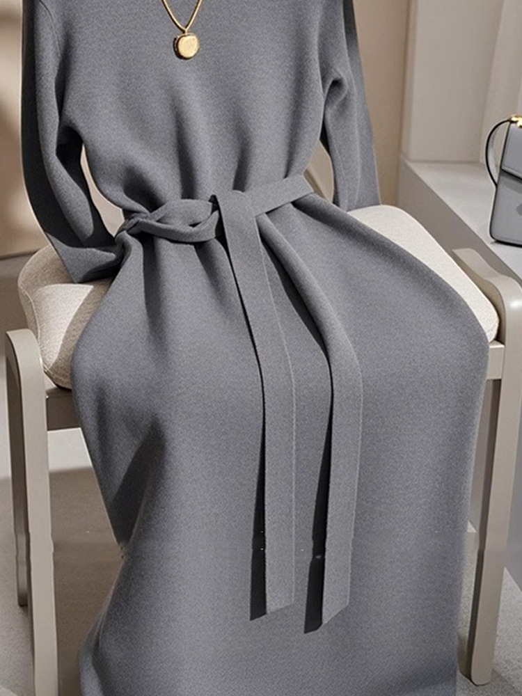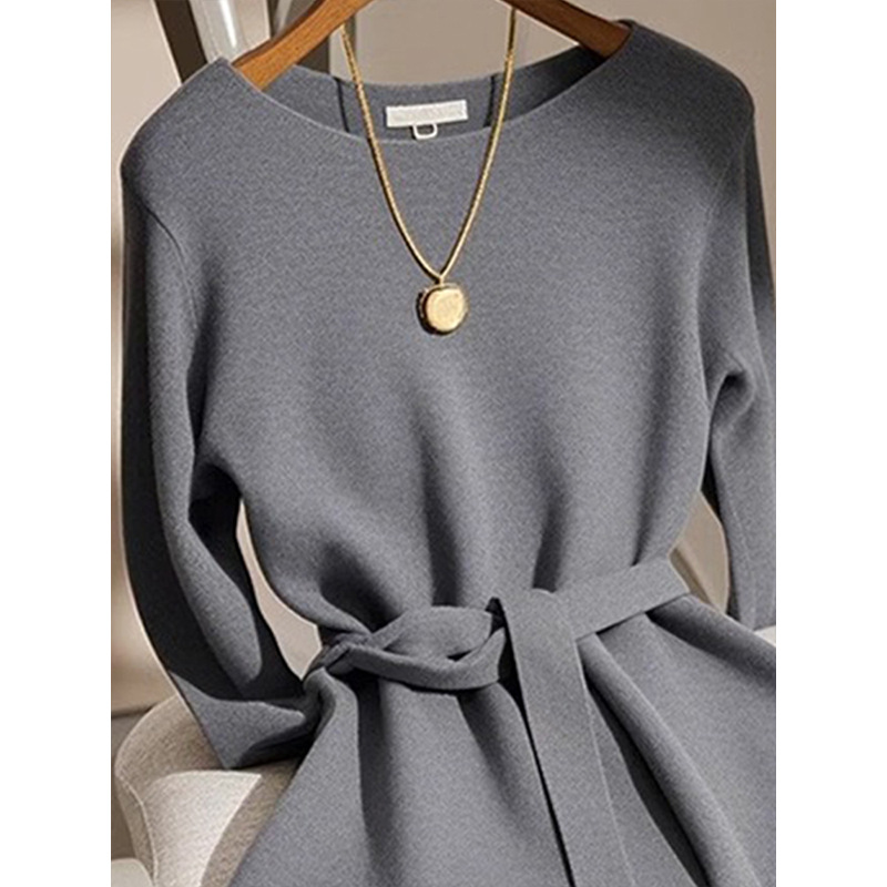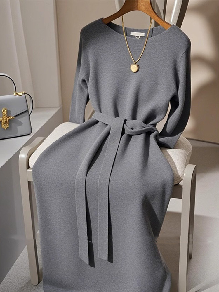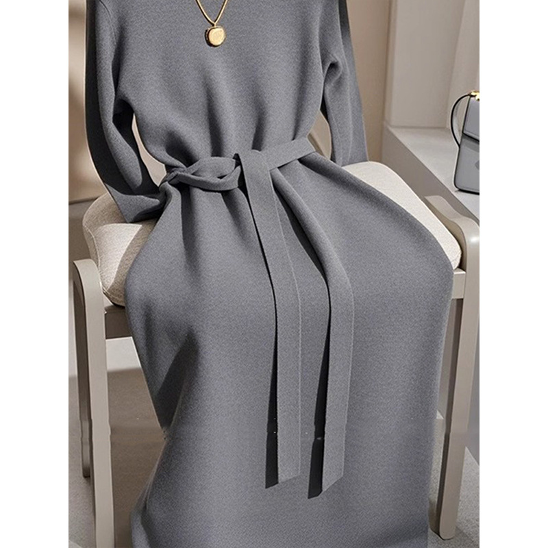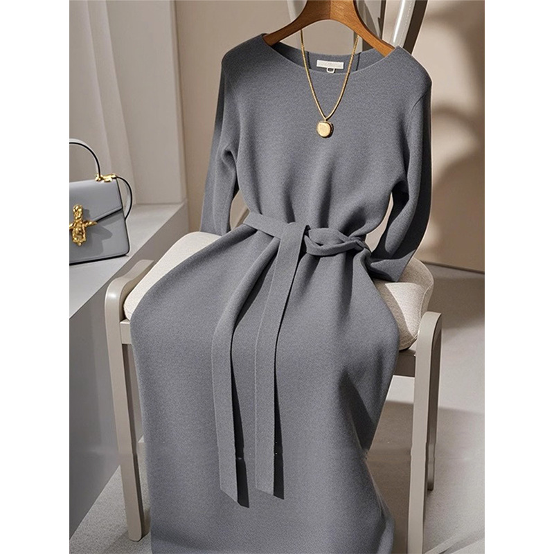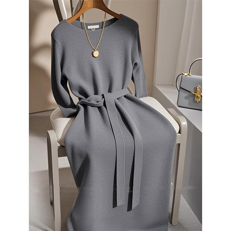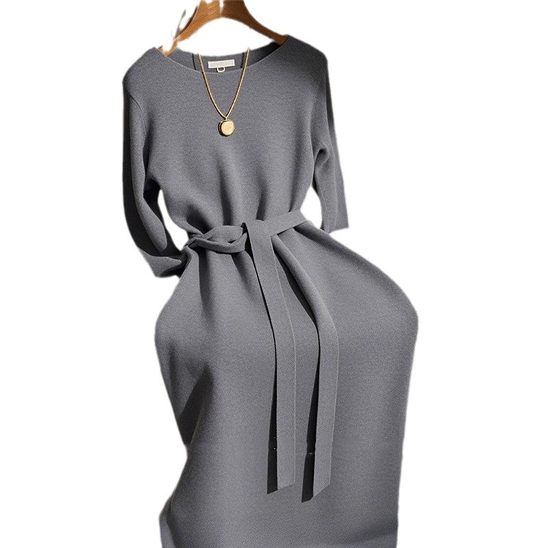 Ранний осенний официальный случай темпераментная юбка легкая роскоши высокого чувства супер красивый достойный серый трикотажное платье для женщин