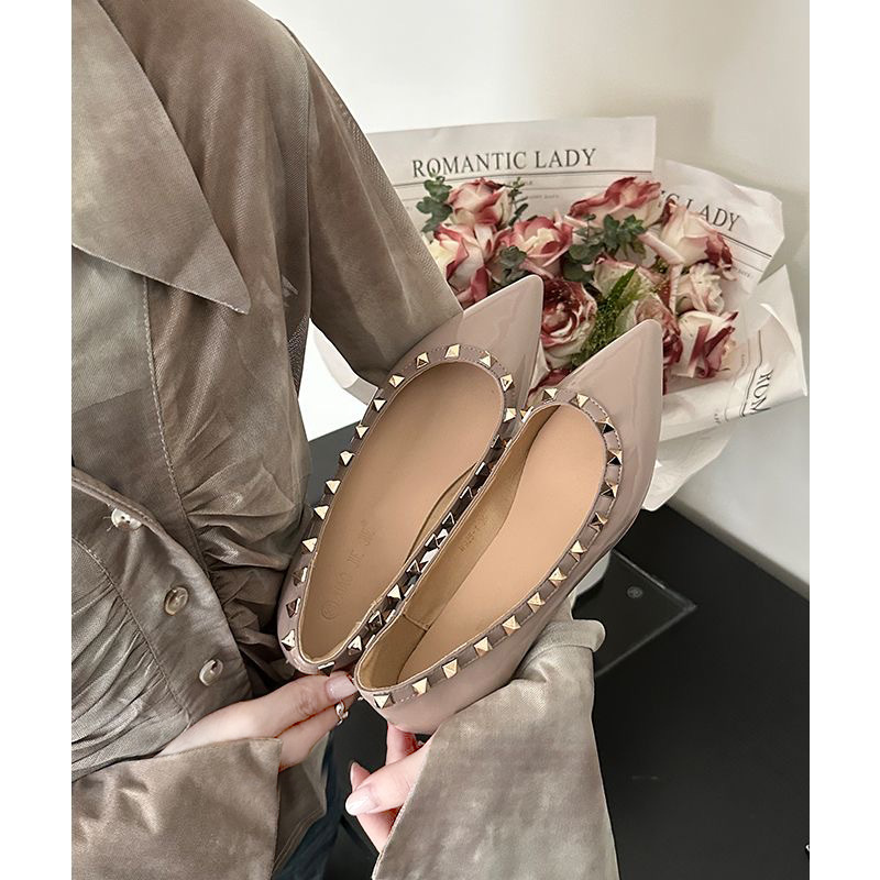 Одиночная заклепка одиночная обувь женская французская темпераментная лакированная кожа носить апельсины