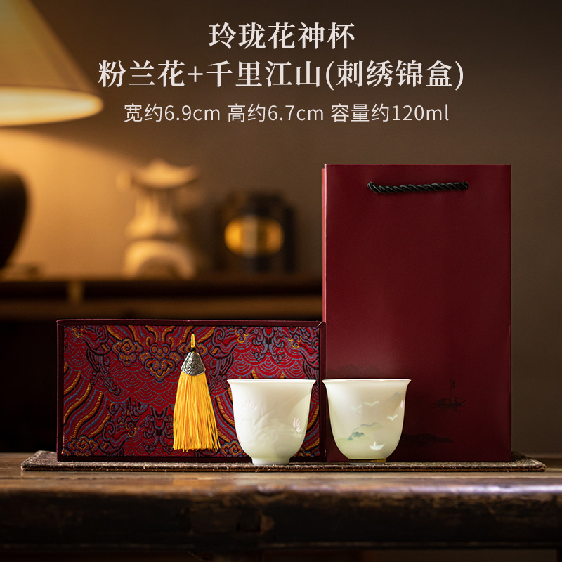 Изысканный цветок бог чашка белого фарфора чашка чая дегустация чашки хозяина домашнего керамического одиночного чашки кунг-фу чайного сервиза подарочная коробка