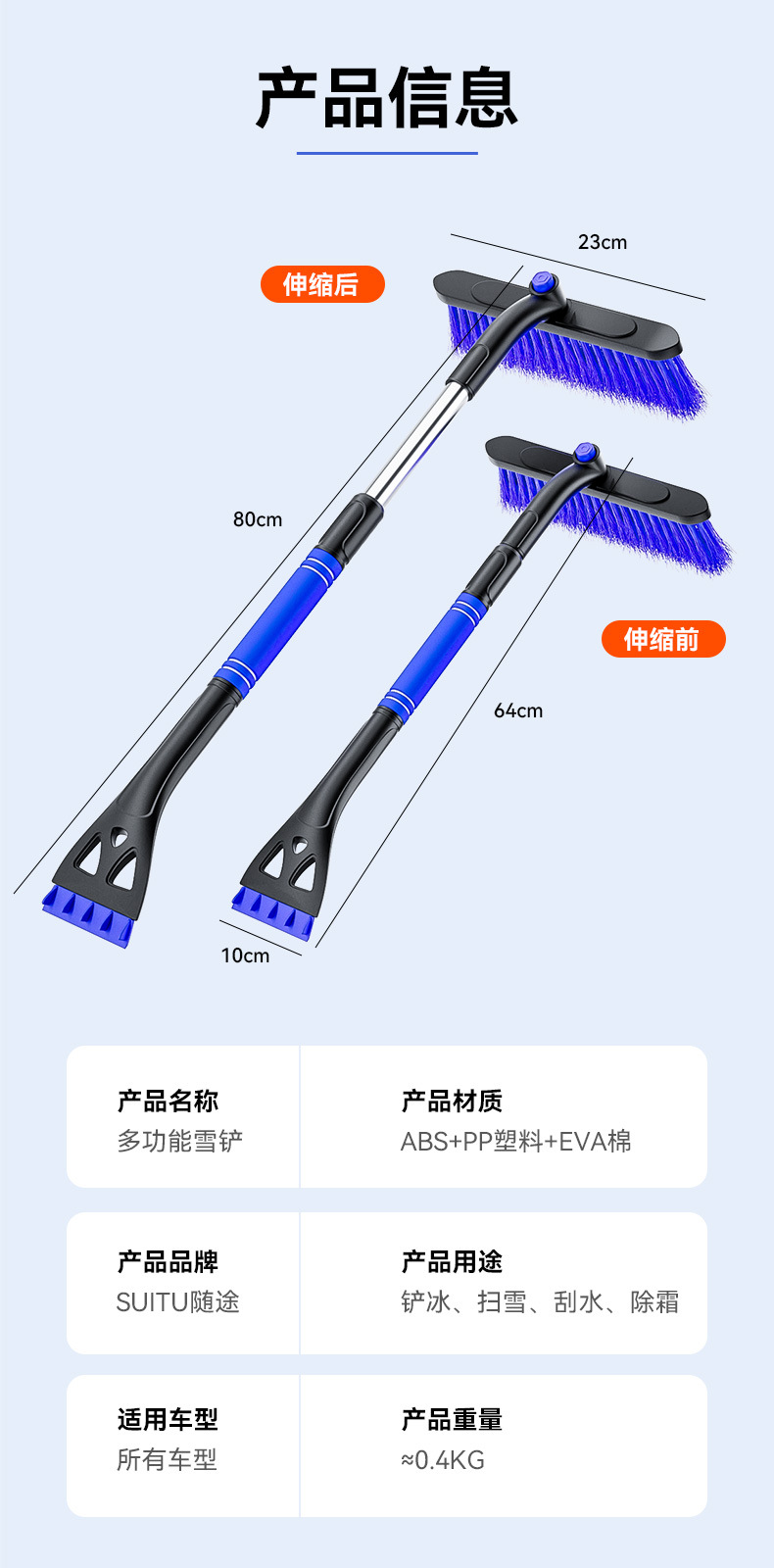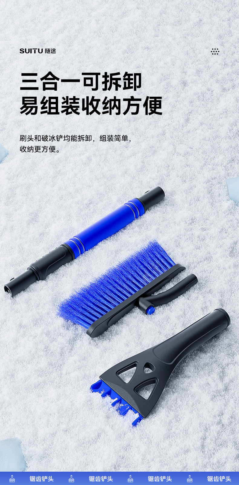 Автомобильный снегоочиститель Снежная лопата Разморозка Три в одном зимой Многофункциональная съемная лопата для удаления льда