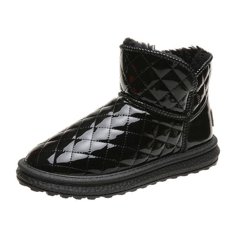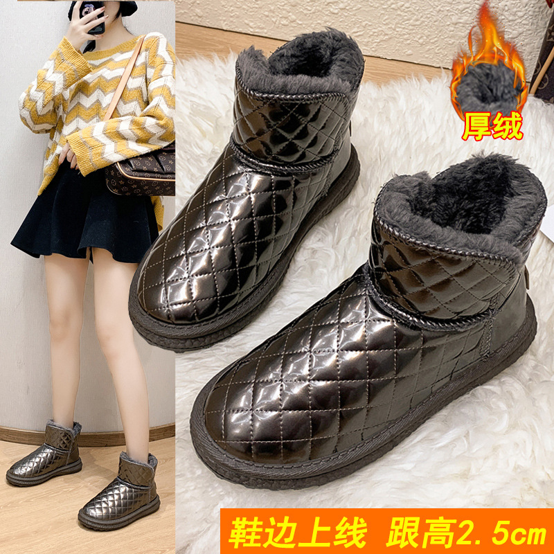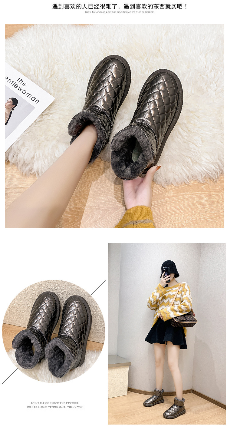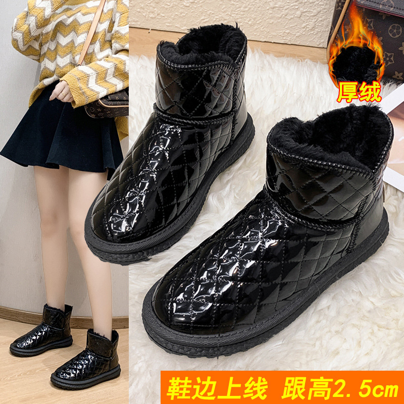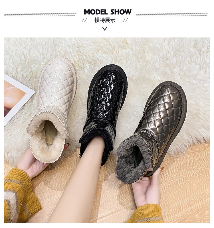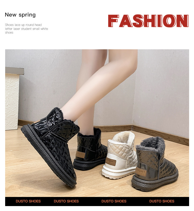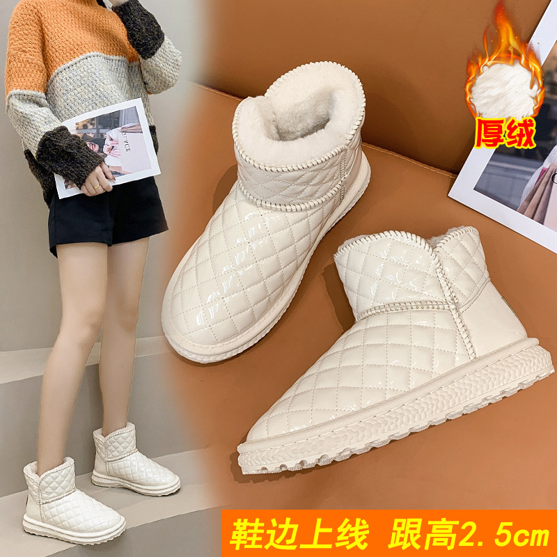 Теплые и утолщенные короткие зимние сапоги 2025 года с плюшевой подкладкой, женские кожаные и меховые ботинки с интегрированным хлопком для защиты от холода.