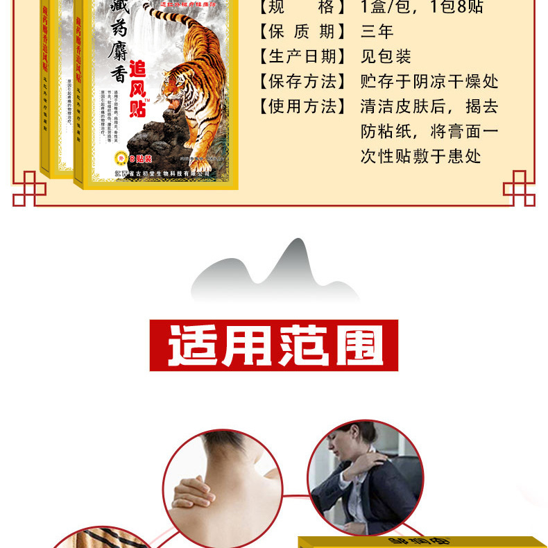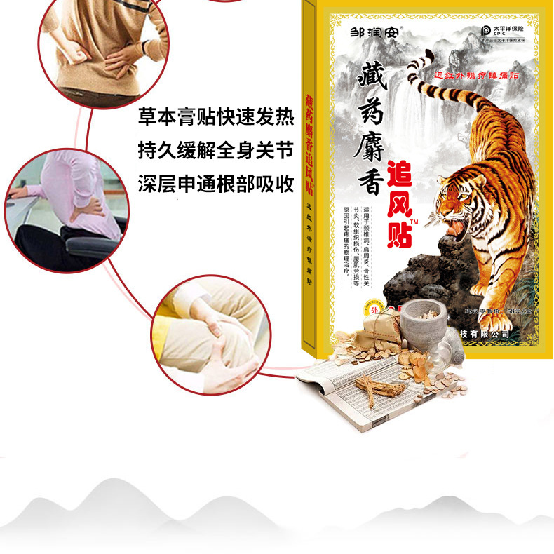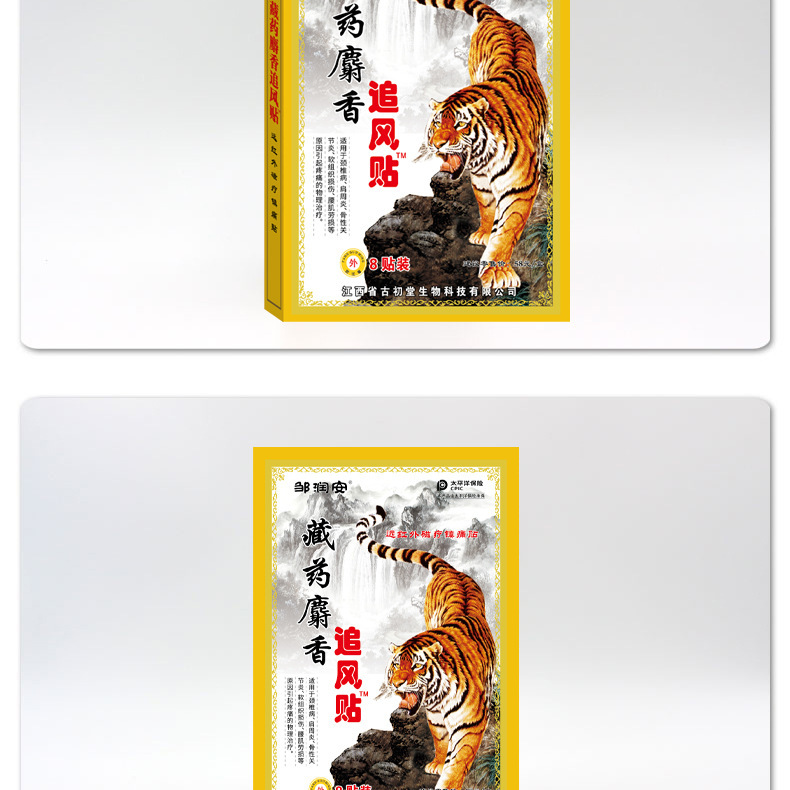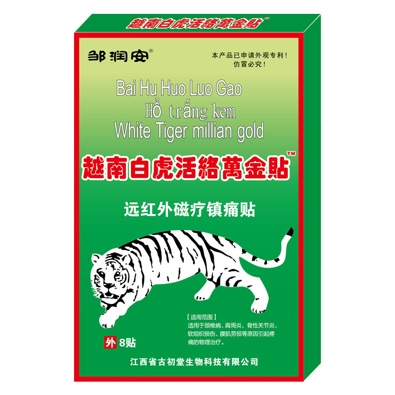 Тибетский мускус, погоняющийся ветром, 8 пластырей в коробке; Тибетская мазь из кости тигра; Пластырь для облегчения боли в традиционной китайской медицине Diannan; Тибетский травяной пластырь для облегчения боли; Вьетнамский восстанавливающий пластырь «Белый Тигр»; Вьетнамский травяной пластырь; Тайские наклейки с изображением многоножек; Пластыри для облегчения боли в мышцах и суставах Hongwan Tong; Гуйчжоу Мяо Медицина Анальгетический пластырь; Наклейки с черной косточкой; Тибетский пластырь из змеиной кости; Пластырь для облегчения боли Miao Fang Baicao; Пластыри для облегчения онемения; Пластырь для прижигания полыни; Патчи с кордицепсом из Ковлона; Тайские травяные пластыри для облегчения боли; Патч «Скорпионовая ядовая борьба с ветром»; Патч меридиана Цитон; Черные пластыри Wan Tong для облегчения боли в мышцах и суставах; Пластырь для укрепления костей и расслабления мышц, облегчающий боль; Пластырь от боли Baiwan; Пластырь для очищения меридиана «Тигровая кость»; Пластырь для укрепления костей «Король Тигров»; Тайские наклейки «Король Змей»; Наклейки Шаолинь Цифан; Вьетнамская черная пластырь-пластырь; Фанкаотанг Фармацевтический Крем Лаохай, 8 пластырей — 1 упаковка; Zhengkang Baibangtai Shenhu Wang Yi Tie Ling 8 наклеек-1 коробка; Фанчаотанг Фармацевтический Пластырь для Облегчения Боли "Тигр" – 8 пластырей в упаковке; Фанчаотанг Фармацевтический пластырь «Король Тигра» — 8 пластырей в упаковке