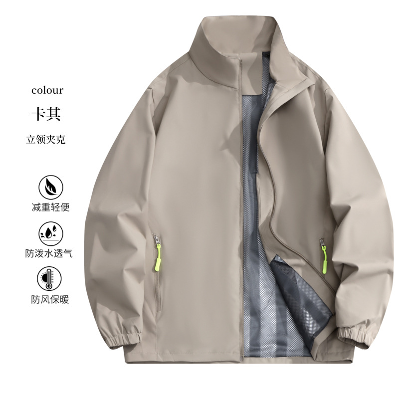 Легкая ветровка с логотипом для мужчин, ветрозащитная рабочая куртка, теплая куртка с воротником-стойкой, одежда для групповых мероприятий на открытом воздухе, тренчкот с вышивкой.