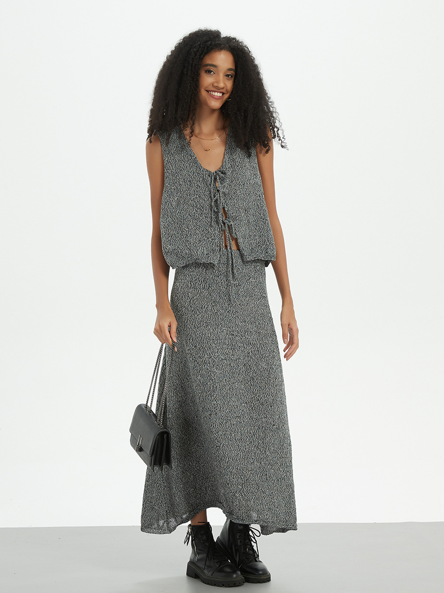 Трансграничная женская оптовая продажа в европейском и американском стиле мода из двух частей V-образный шнуровка тканый жилет с высокой талией