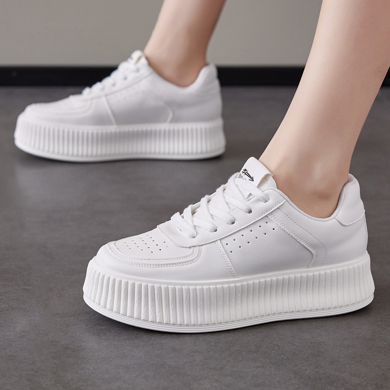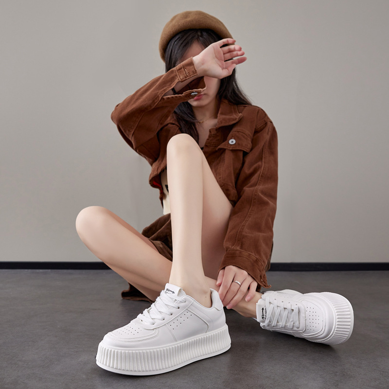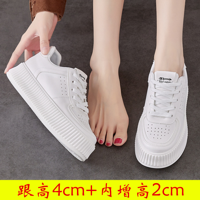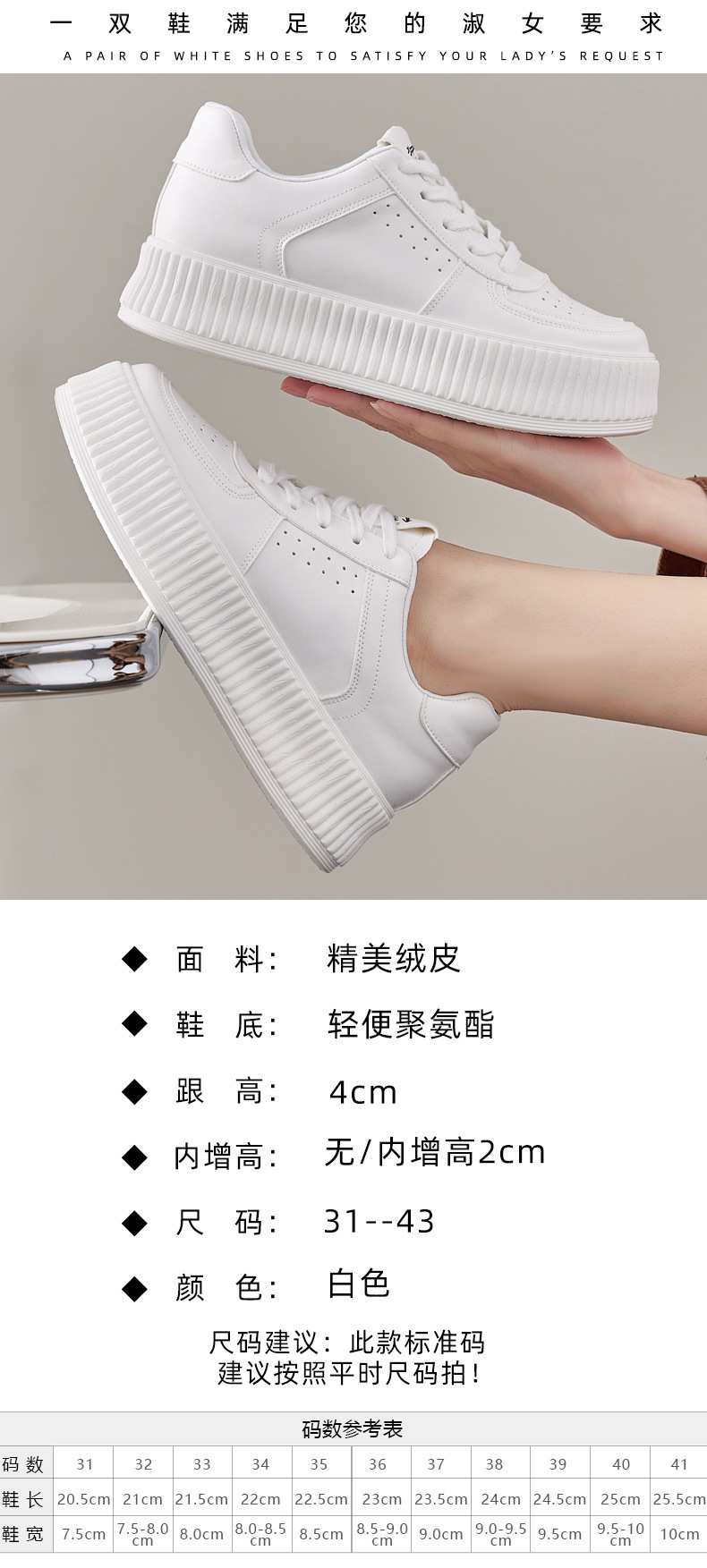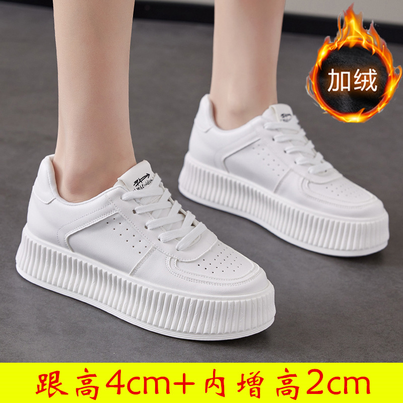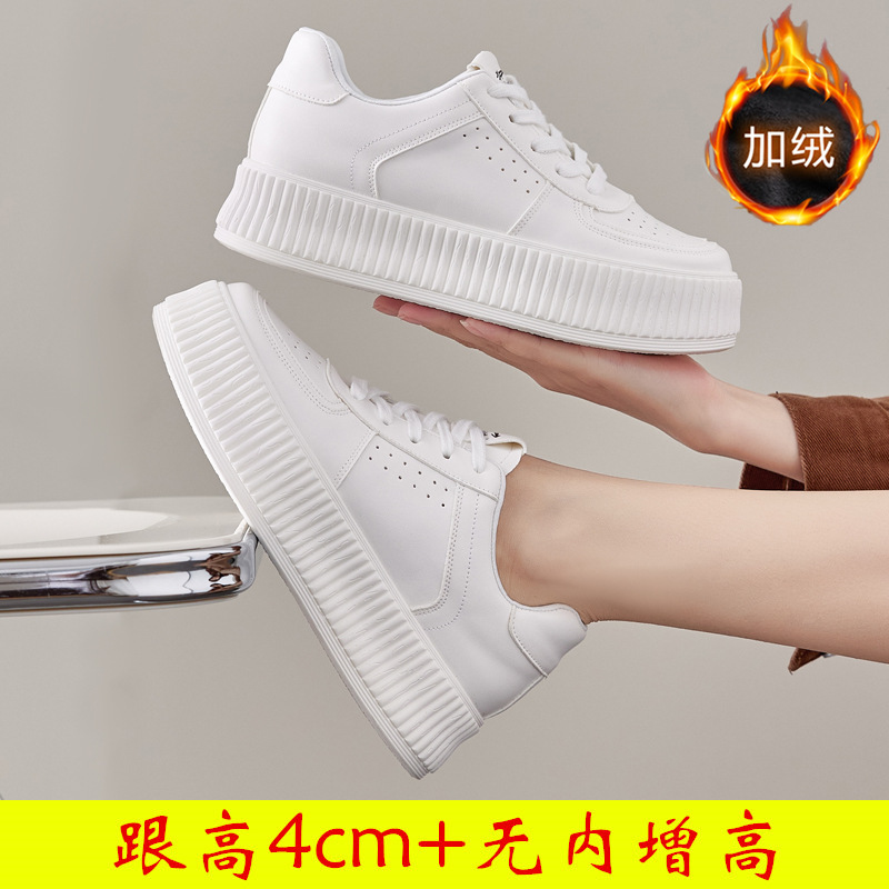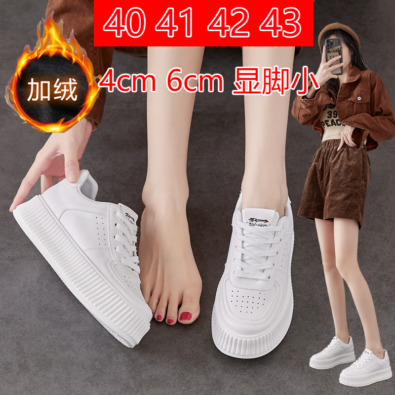 Женская обувь большого размера 41-43 новая кожаная лапша с бархатом, супер легкий, дикий бисквитный ботинок, толстая подошва, высокая маленькая белая обувь для женщин