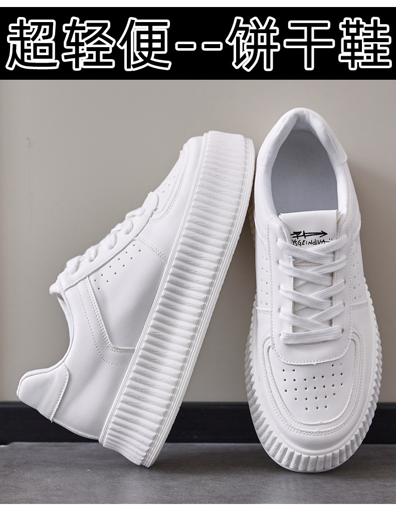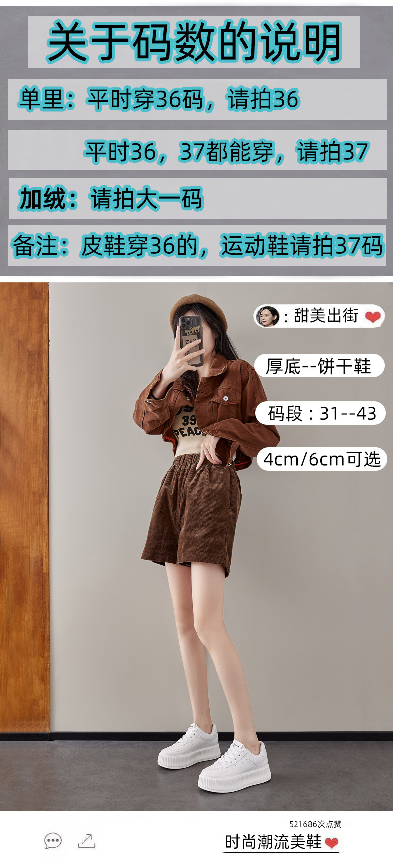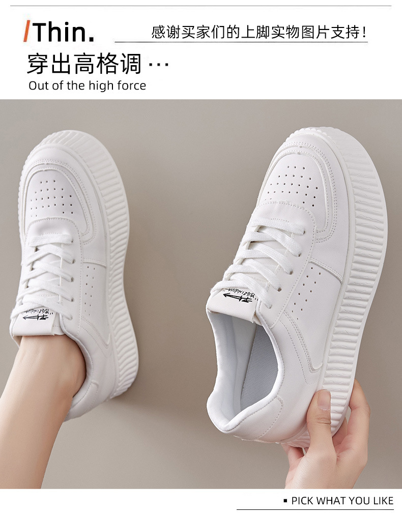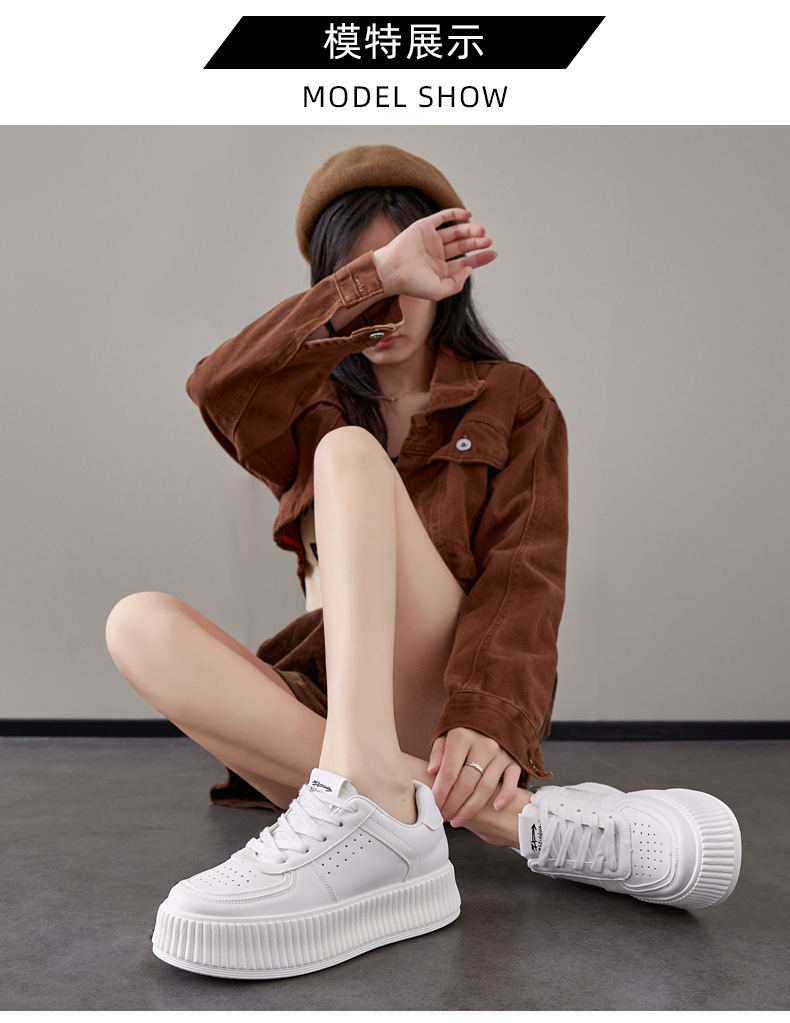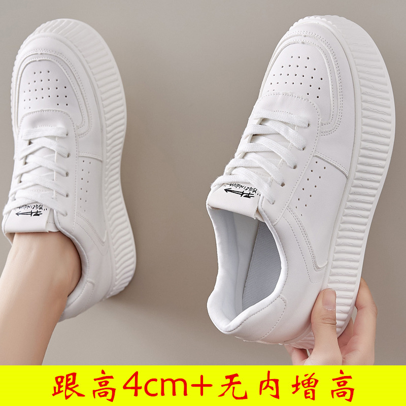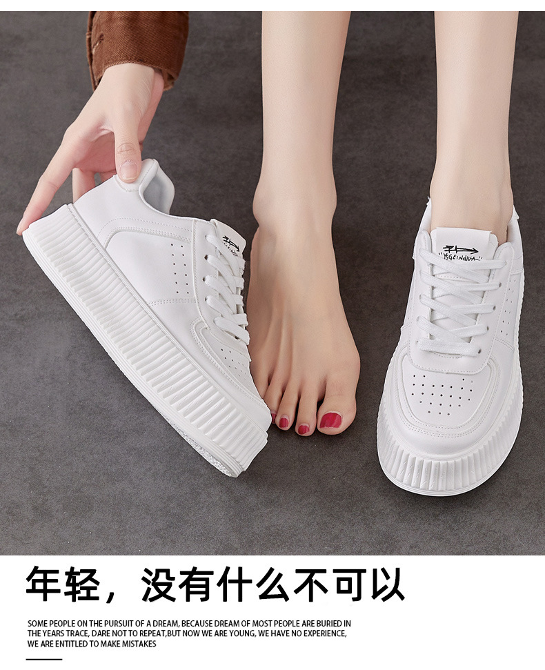 Женская обувь большого размера 41-43 новая кожаная лапша с бархатом, супер легкий, дикий бисквитный ботинок, толстая подошва, высокая маленькая белая обувь для женщин