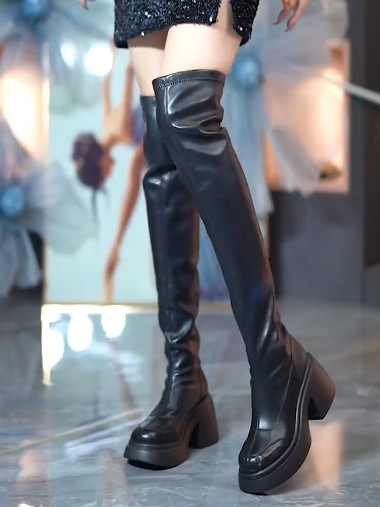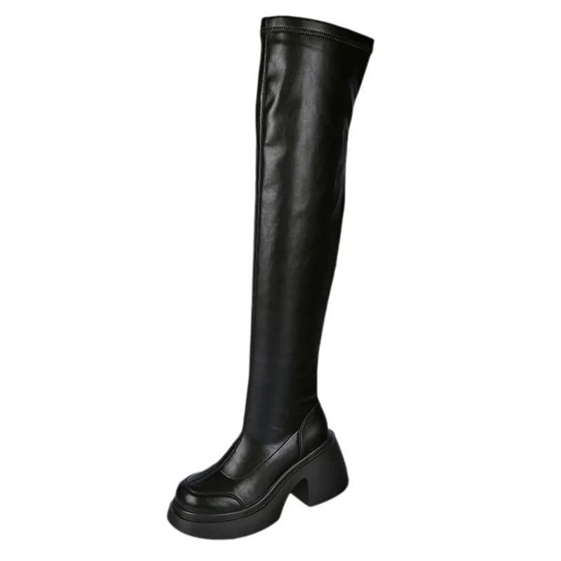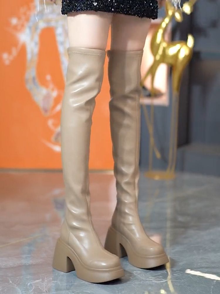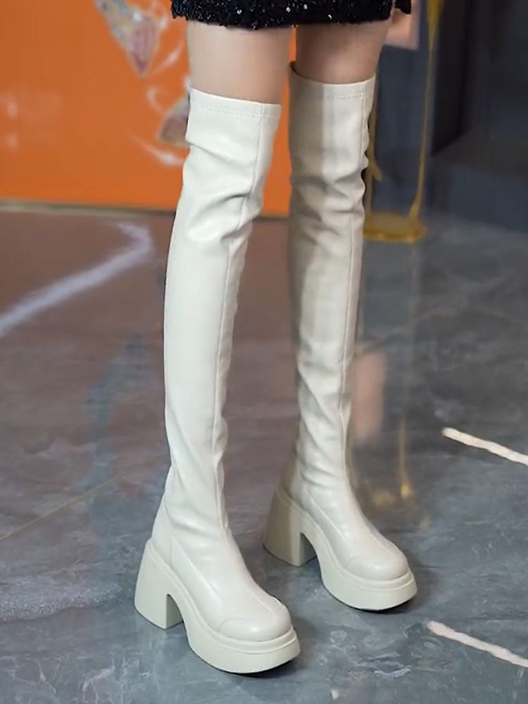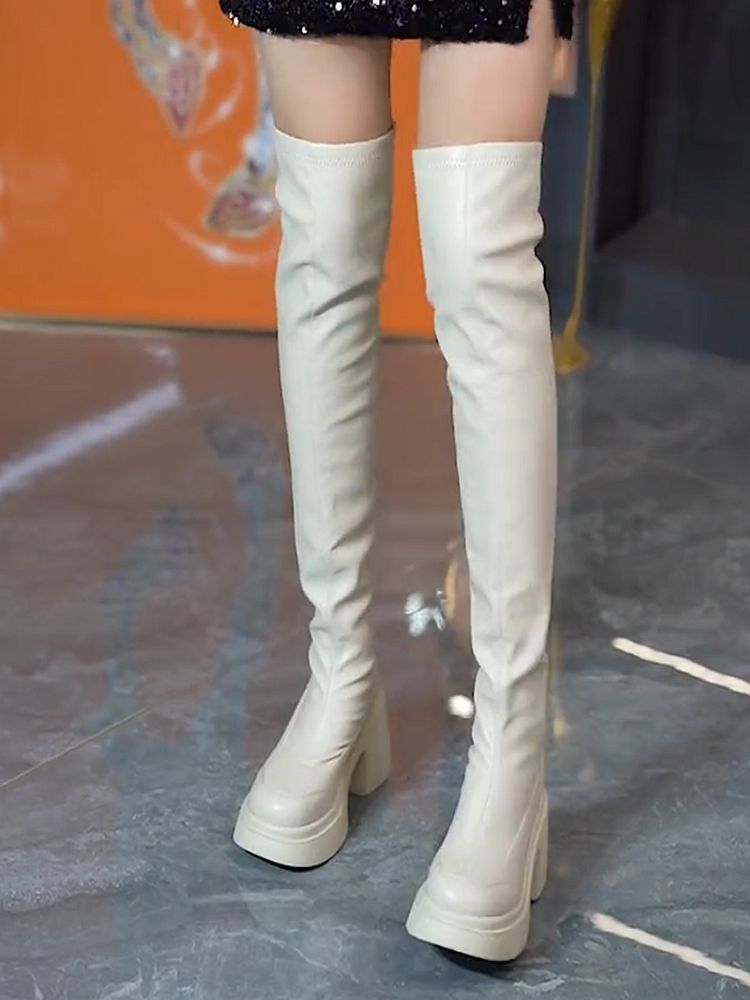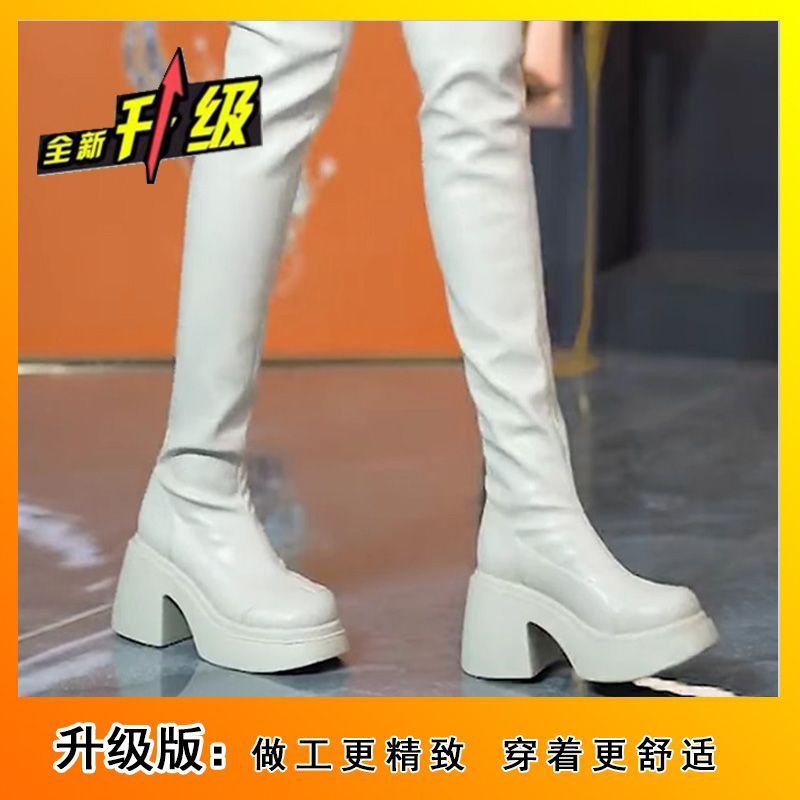 Маленькие тонкие белые длинные женские сапоги дикие толстые каблуки