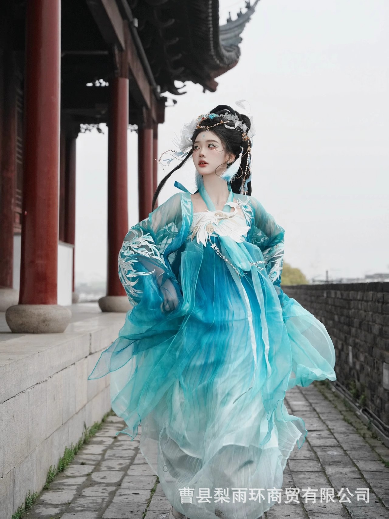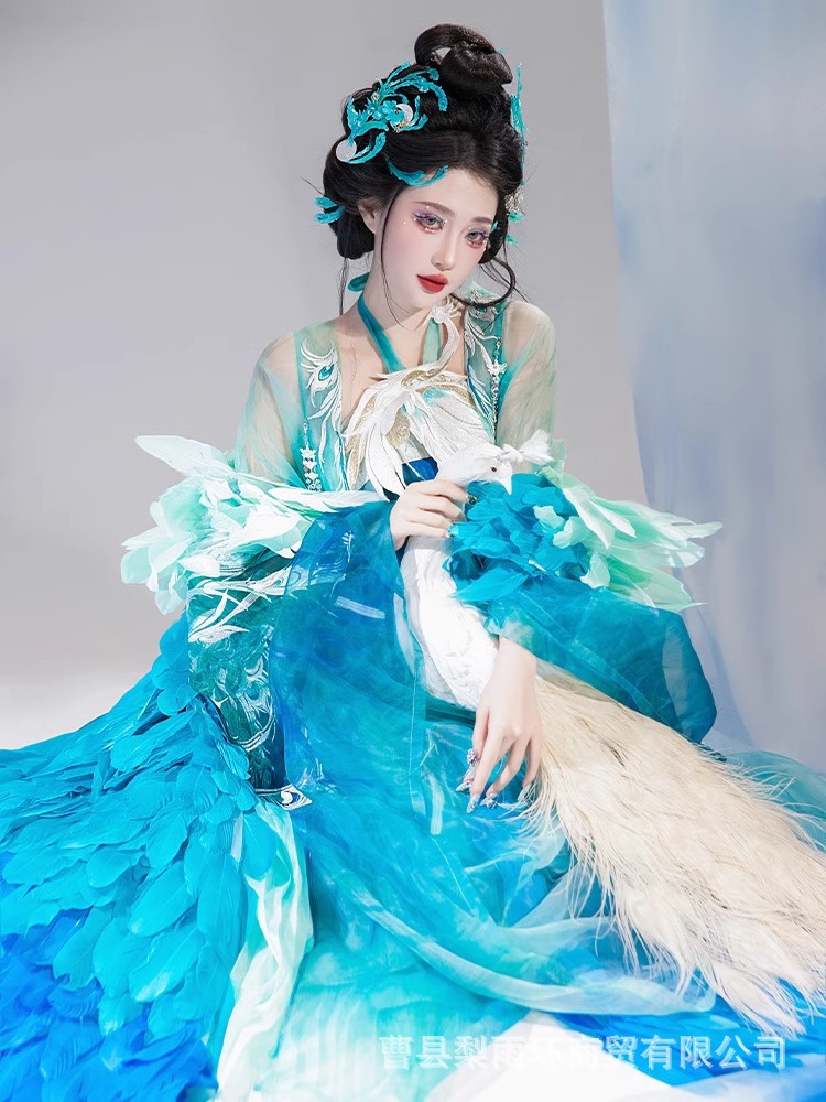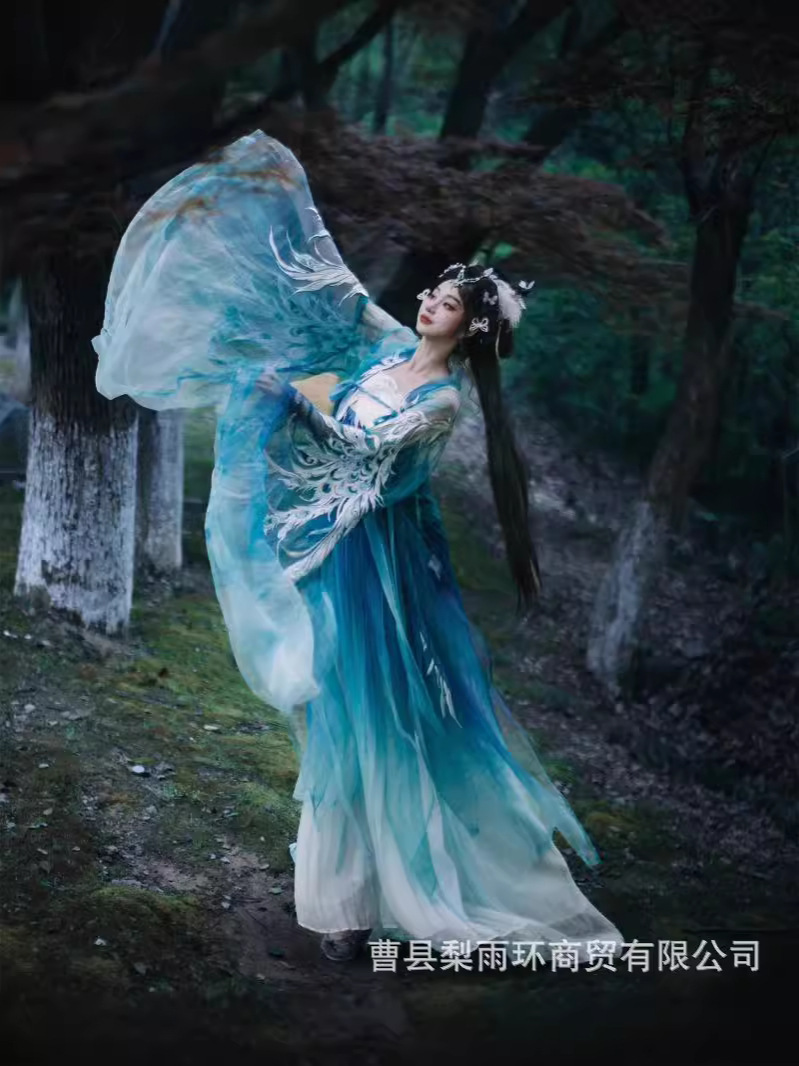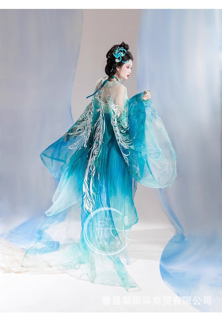 Супер сказочный костюм павлин Ханфу женский тяжелый рабочий вышивка, юбка, юбка с большими рукавами, рубашка, летняя новая