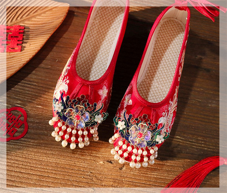 [Long Yanzun] Весенние и осенние новые шкатулки Hanfu обувь древняя вышитая обувь невесты Xiuhe свадебная обувь в китайском стиле