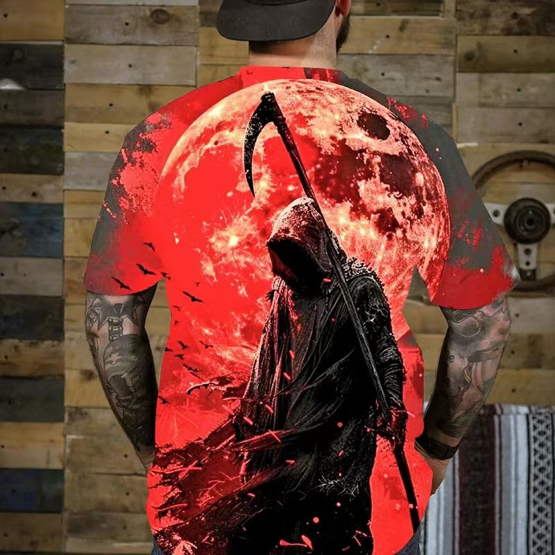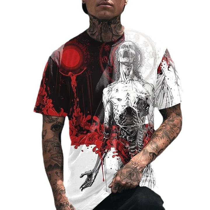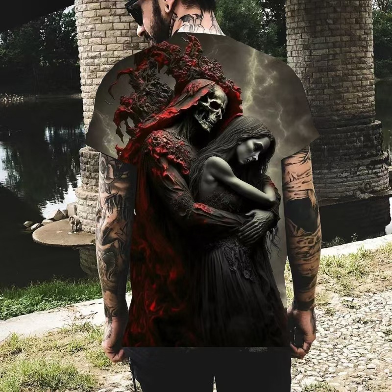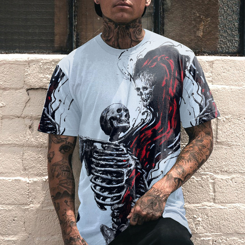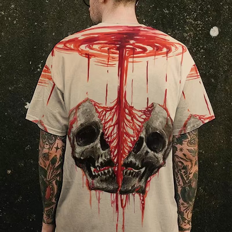 Летняя новинка: футболка-пуловер в американском ретро-стиле, крутая и модная мужская футболка с 3D-принтом в виде черепа, индивидуальный пошив на заказ.