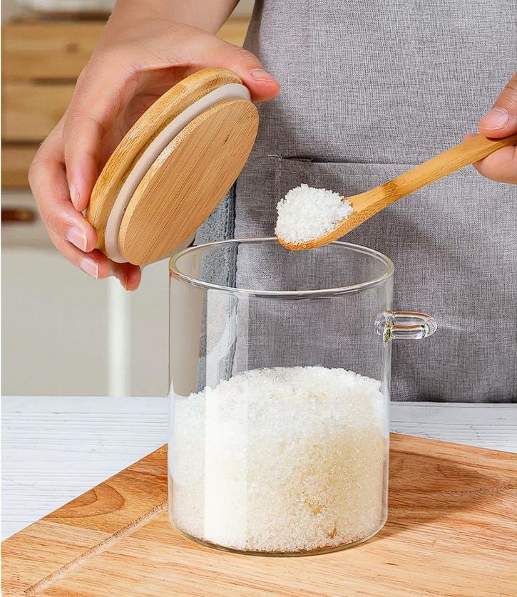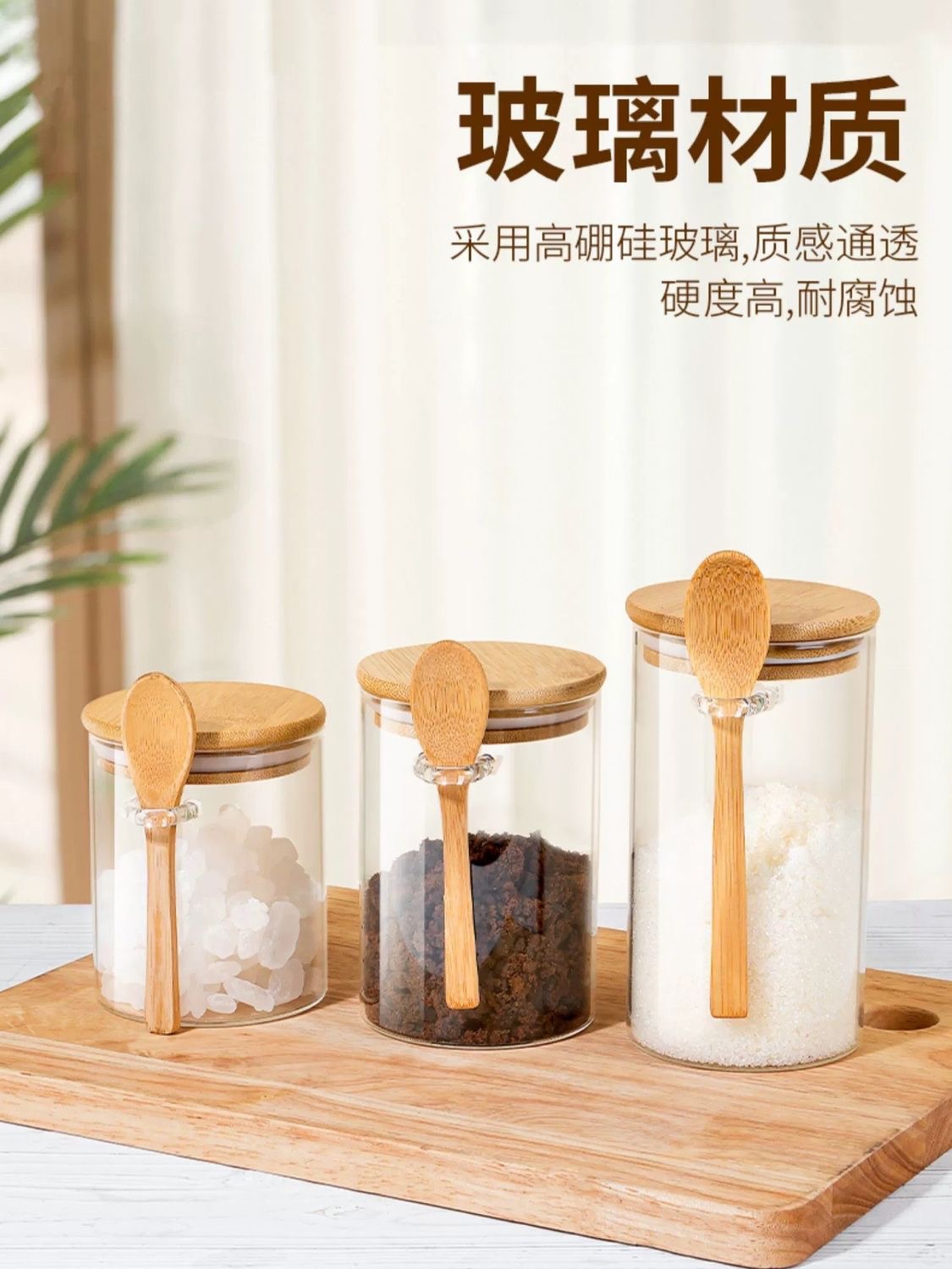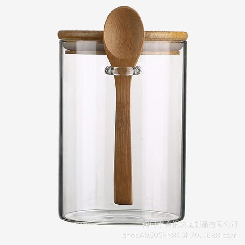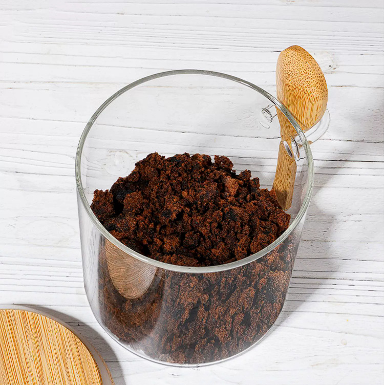 Круглый термостойкий стеклянный герметичный резервуар для домашнего хранения кофе в зернах с деревянной ложкой для бутылок для хранения пищевых продуктов