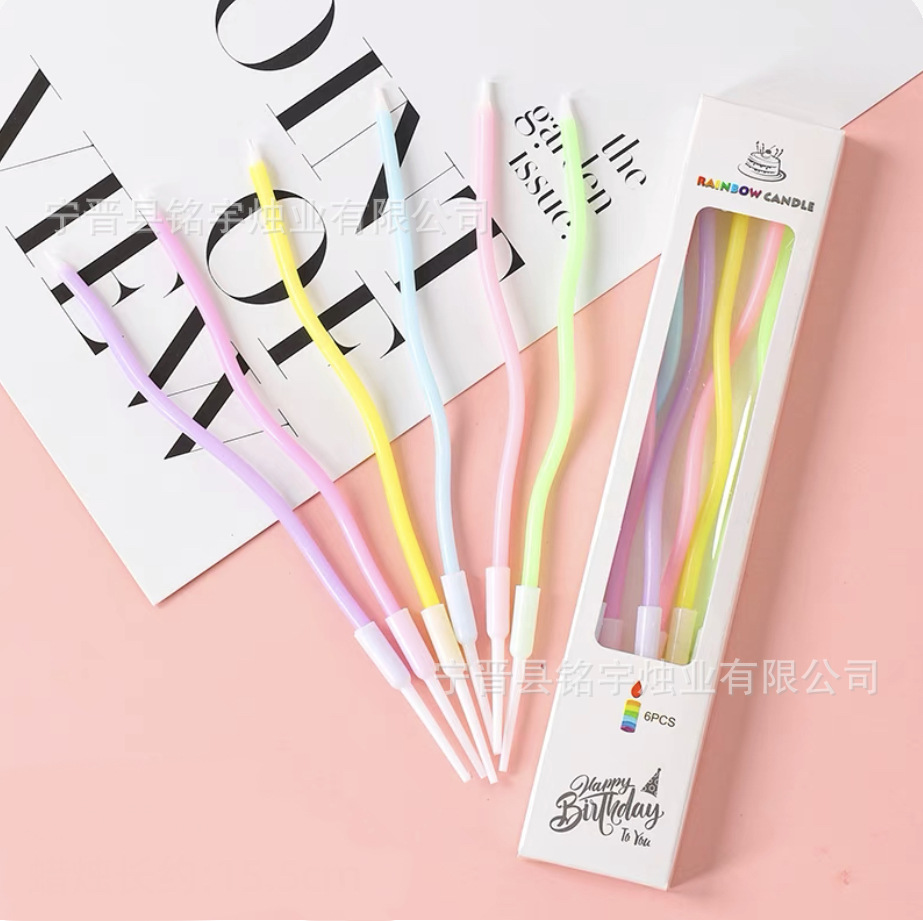Кривая свеча день рождения торт свеча романтическая вечеринка украшения радуга свечи ins ветер кривая день рождения свеча