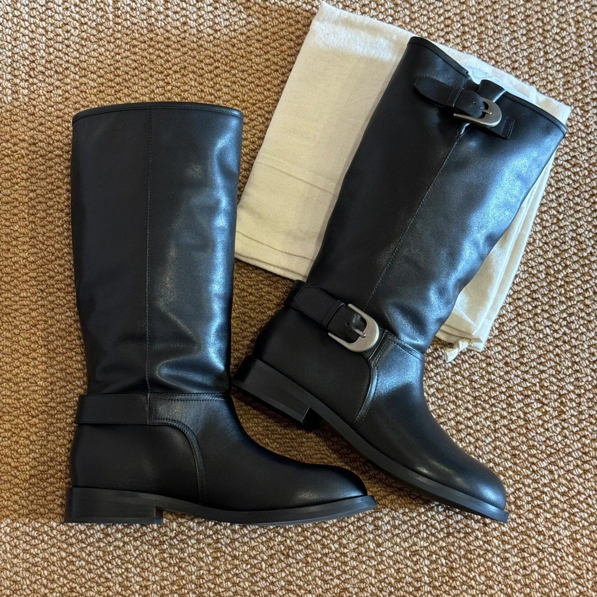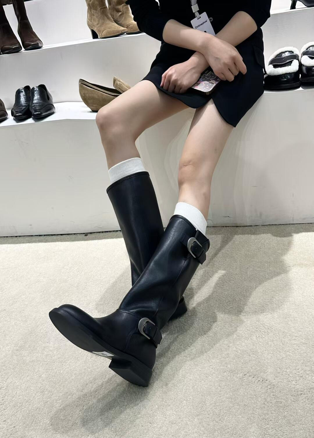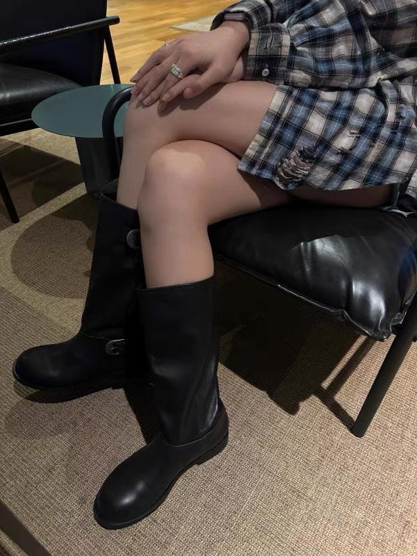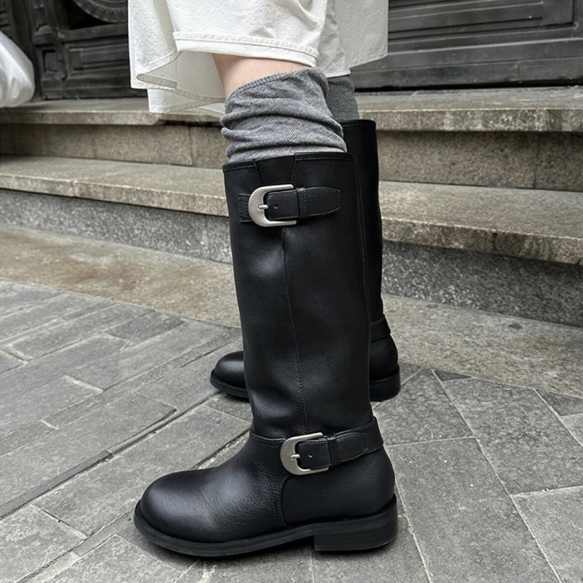 Версия из воловьей кожи ~ широкие женские рыцарские сапоги из натуральной кожи на толстой подошве, зимние длинные сапоги больших размеров, высокие сапоги в стиле вестерн.