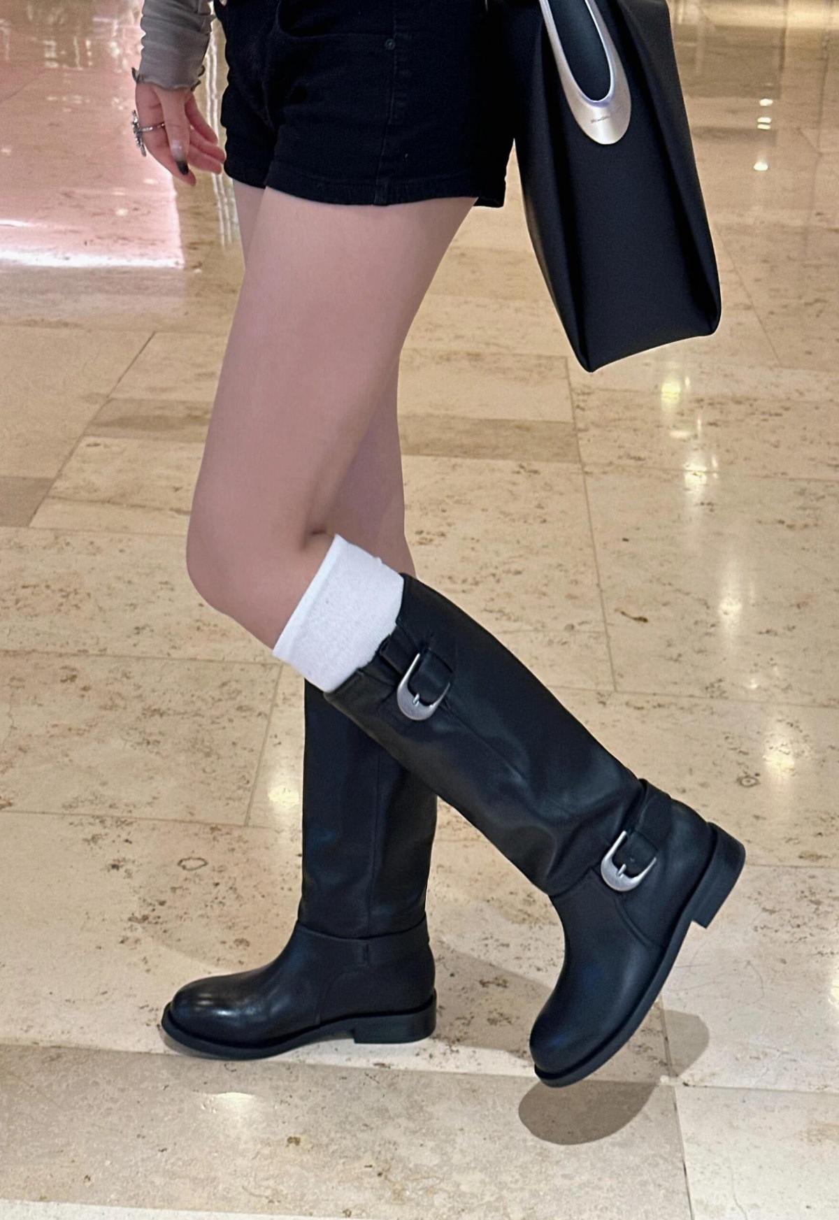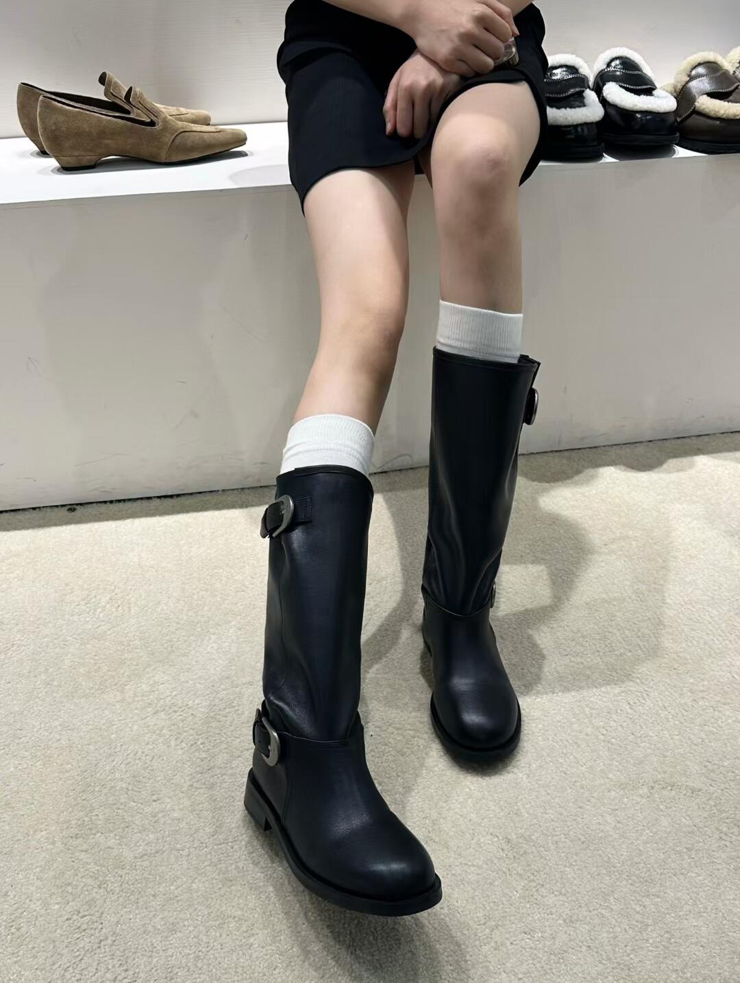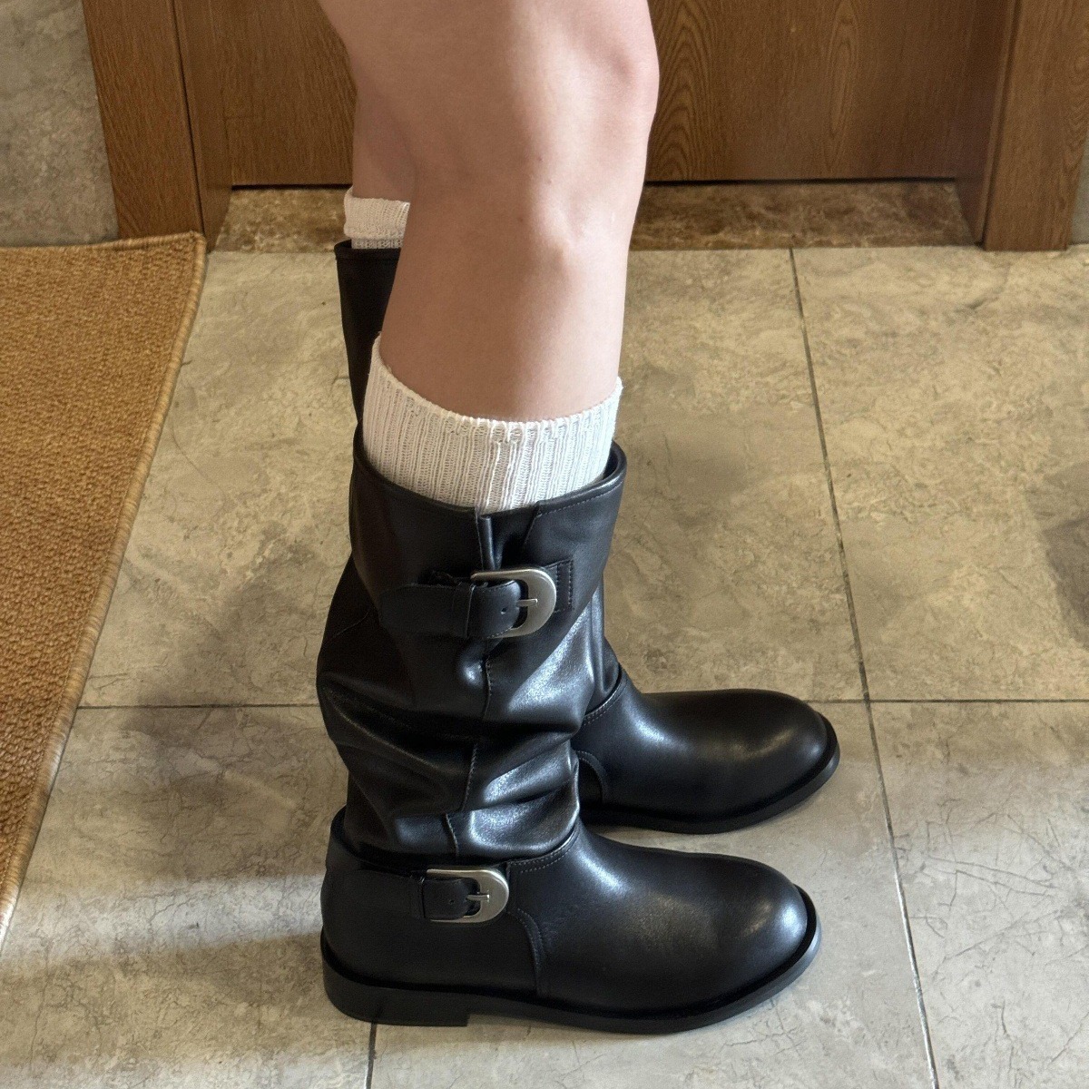Версия из воловьей кожи ~ широкие женские рыцарские сапоги из натуральной кожи на толстой подошве, зимние длинные сапоги больших размеров, высокие сапоги в стиле вестерн.