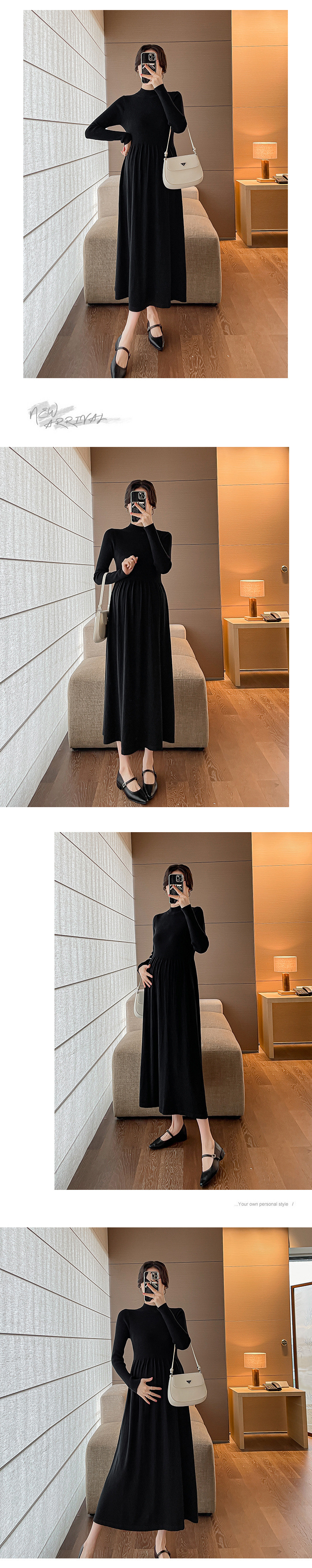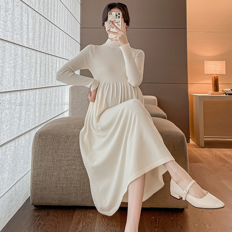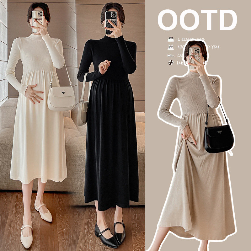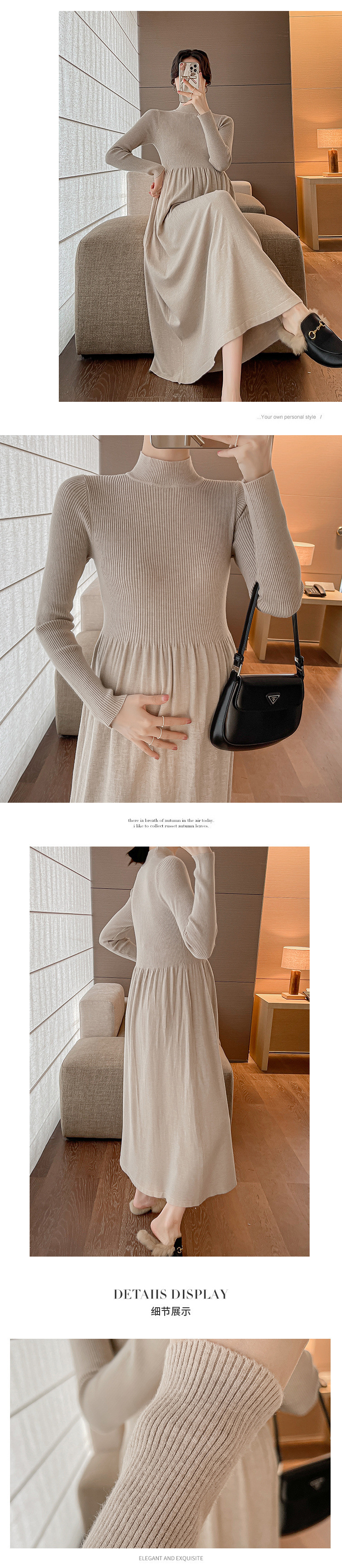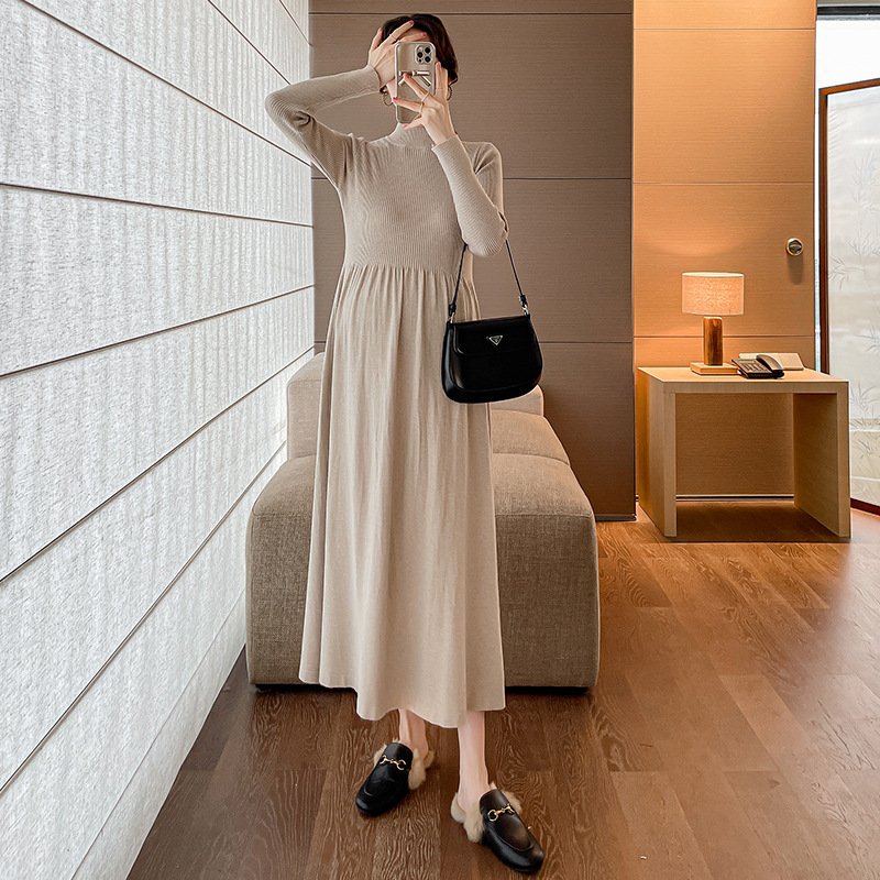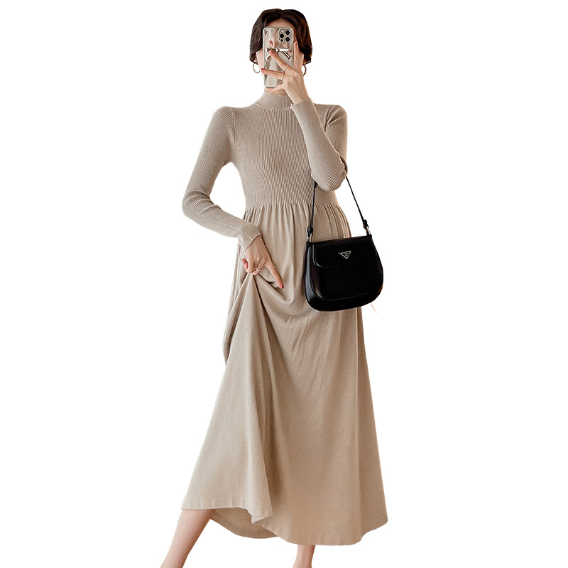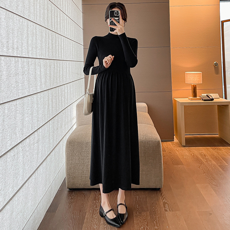 Подлинное платье для беременных осенью и зимой новая корейская версия с круглым вырезом и листьями лотоса тонкие и сплошные платья
