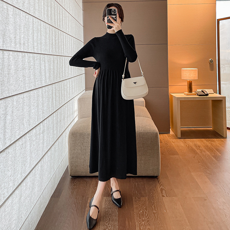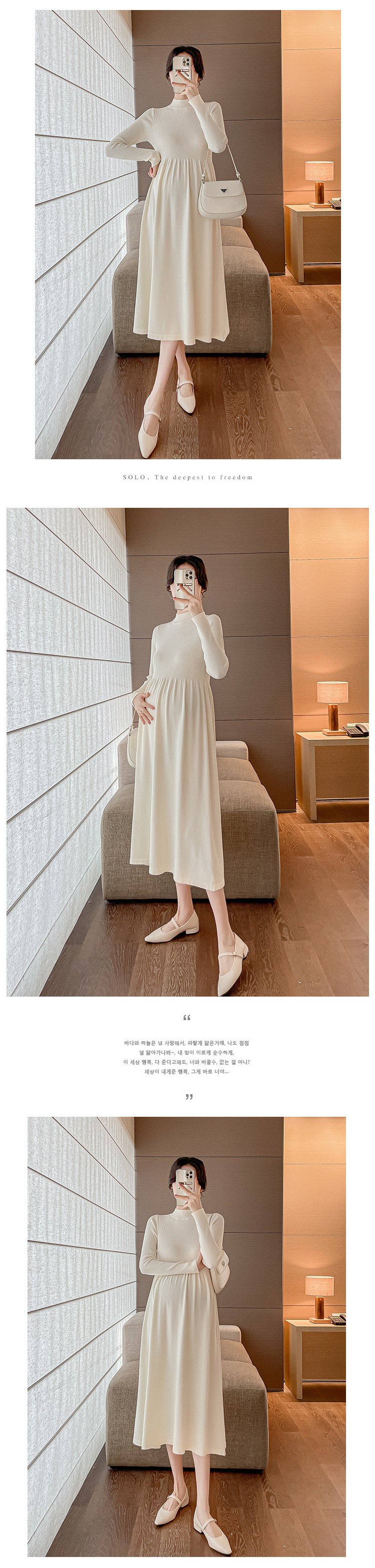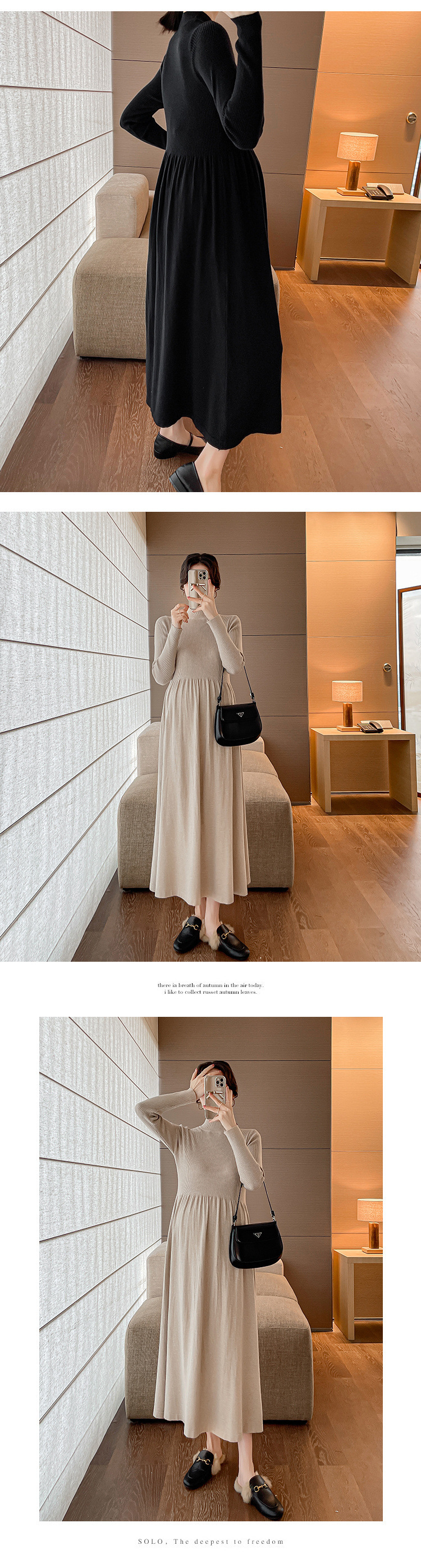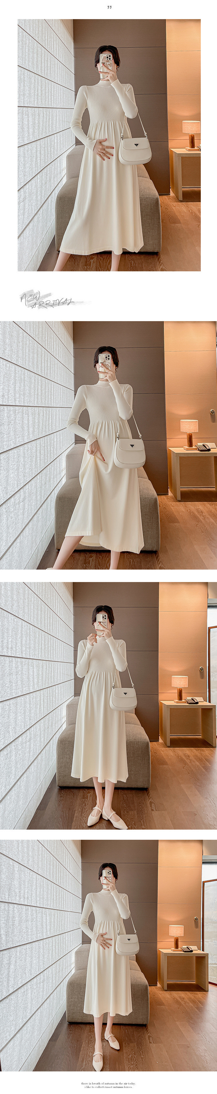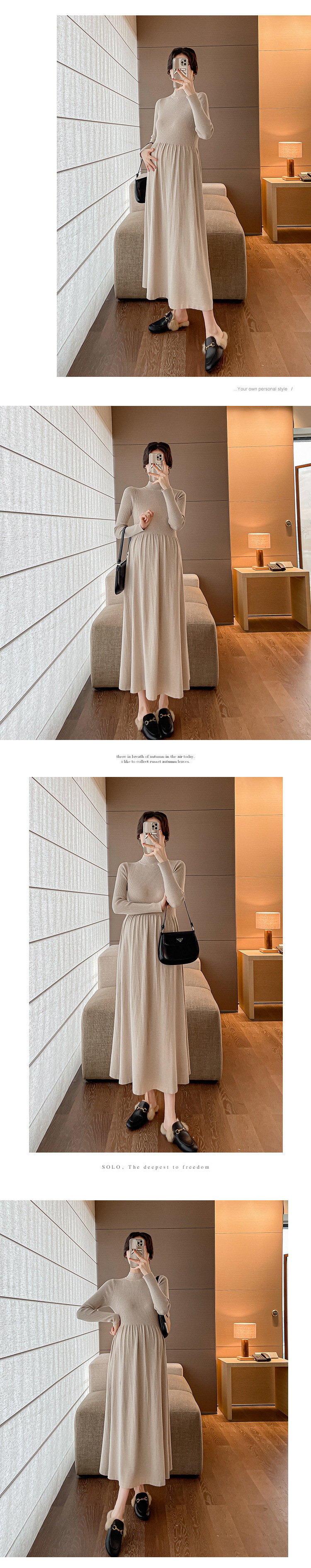 Подлинное платье для беременных осенью и зимой новая корейская версия с круглым вырезом и листьями лотоса тонкие и сплошные платья