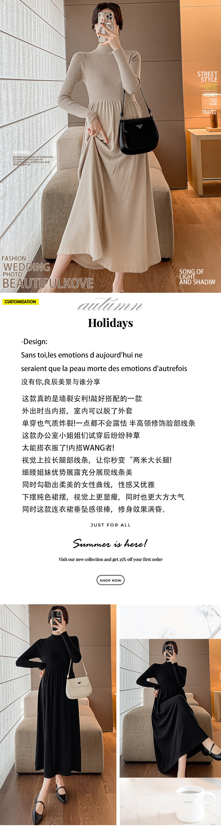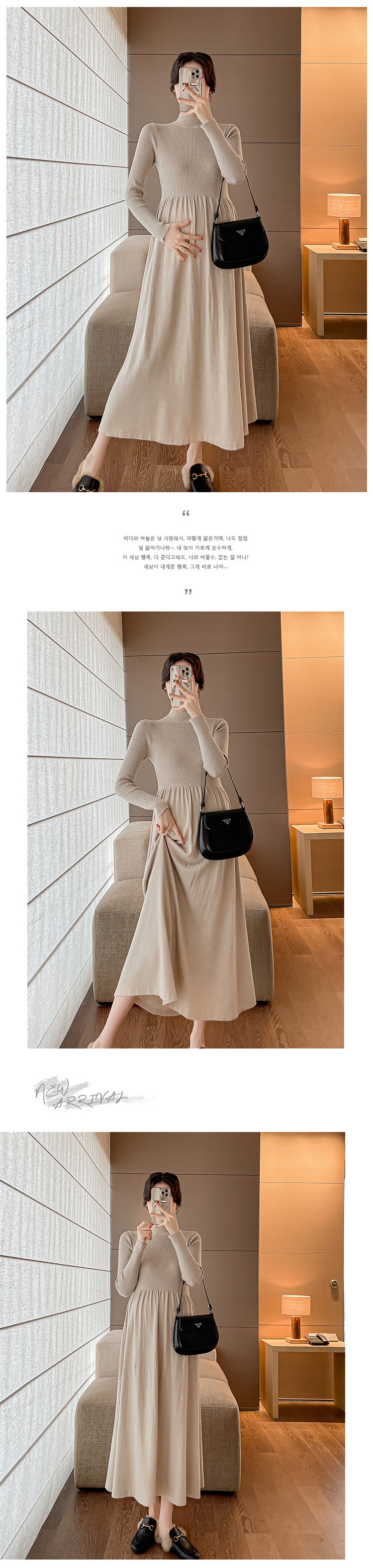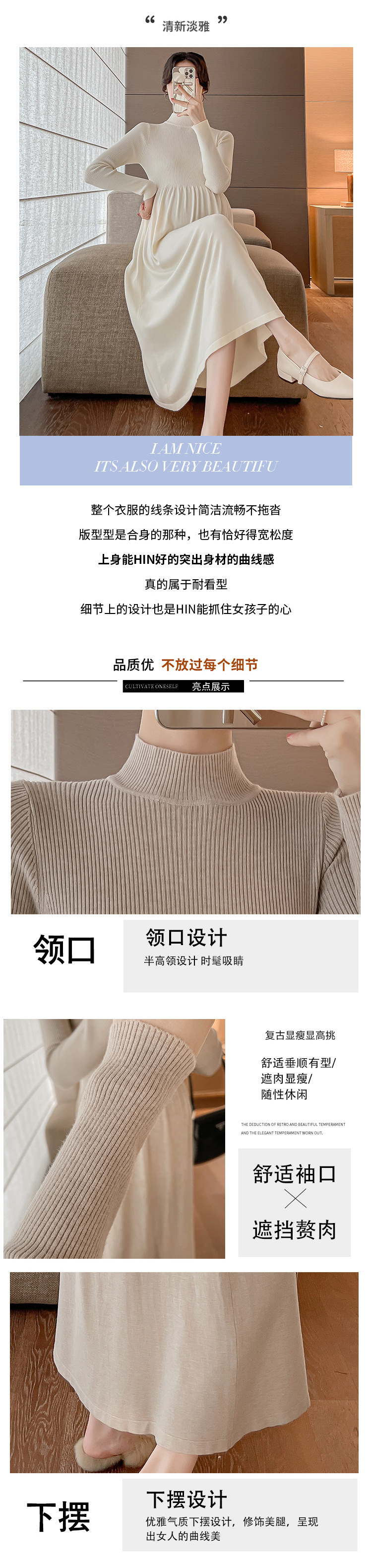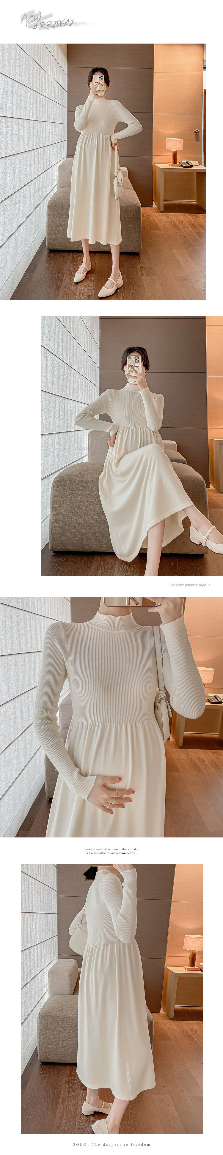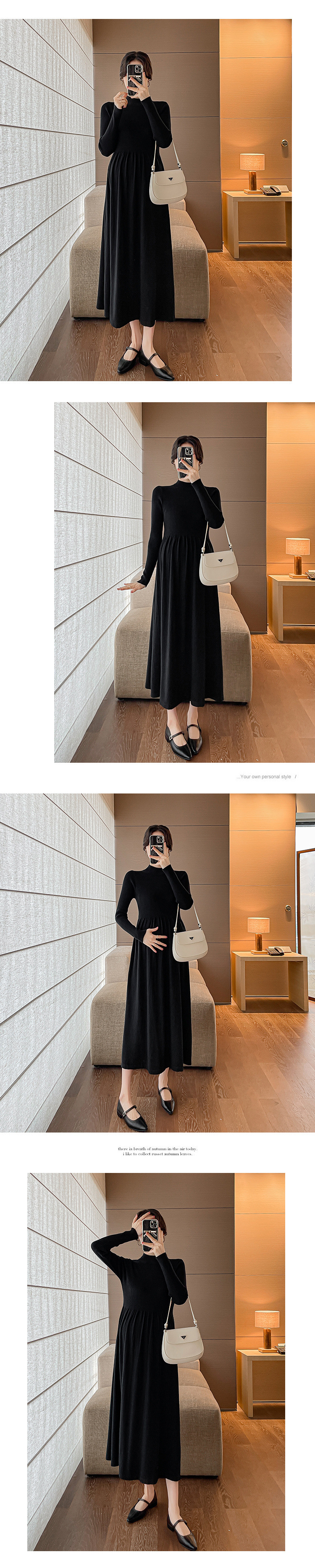 Подлинное платье для беременных осенью и зимой новая корейская версия с круглым вырезом и листьями лотоса тонкие и сплошные платья