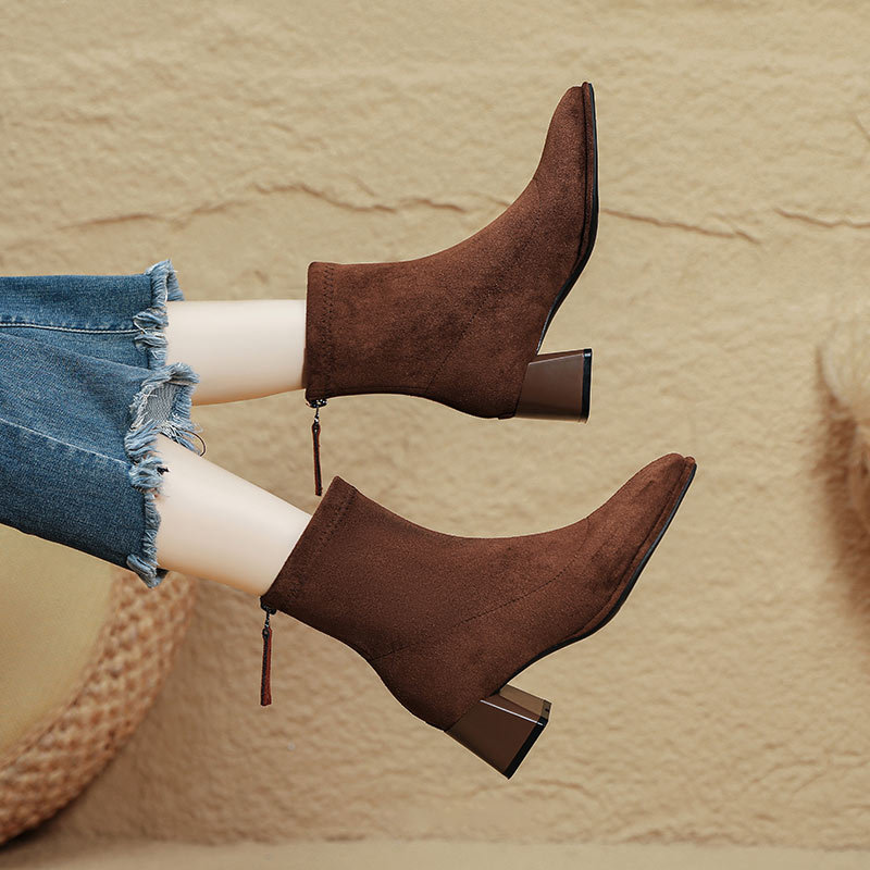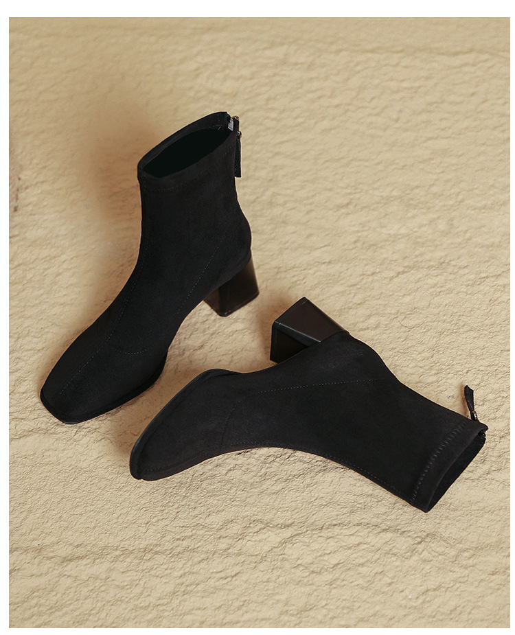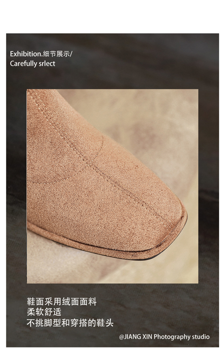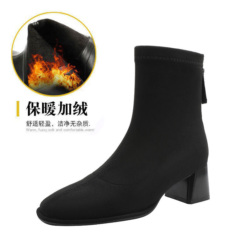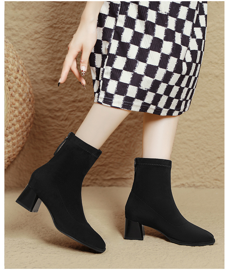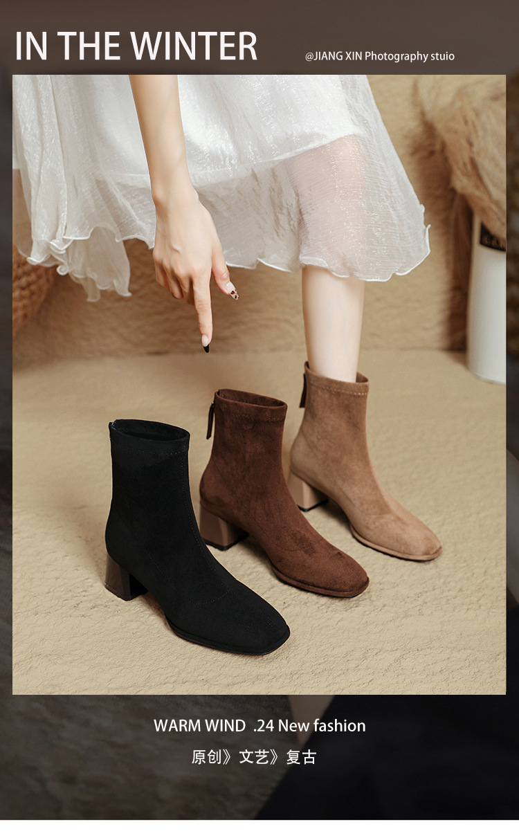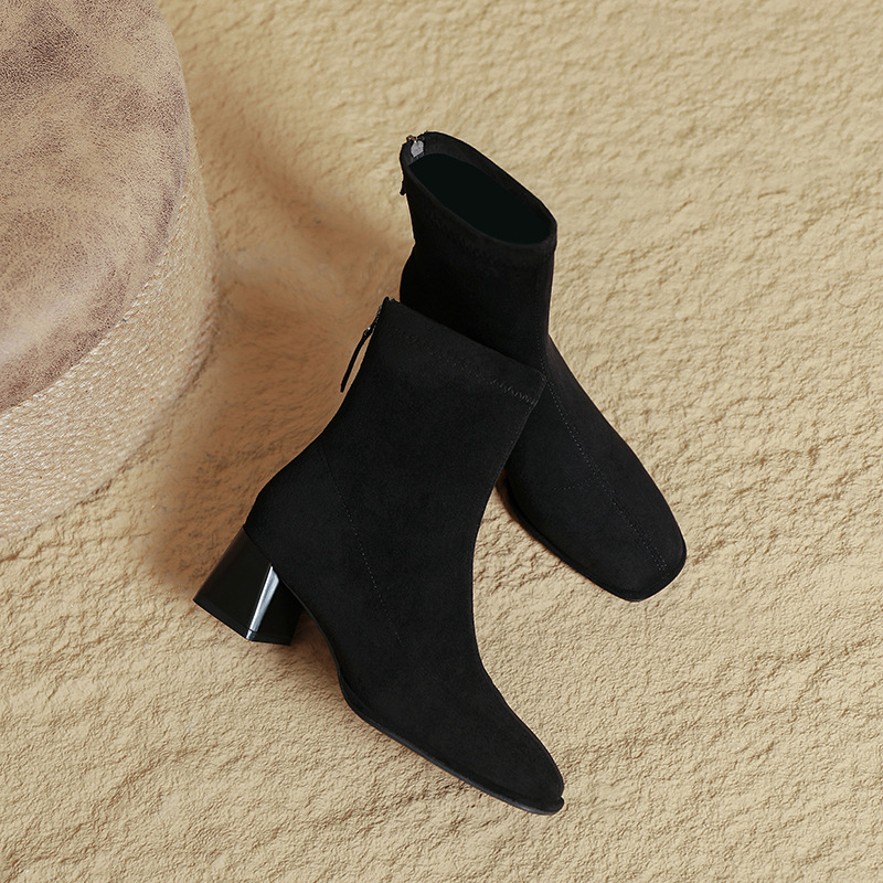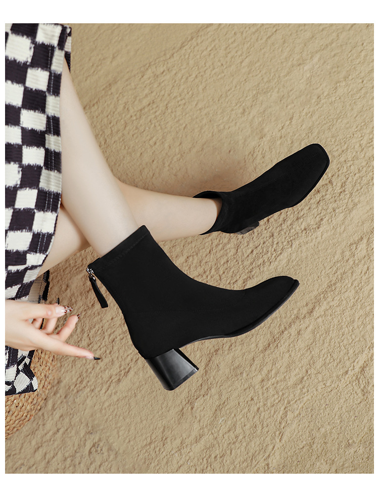 Женские короткие сапоги осень-зима 2025, новые замшевые ботинки до середины икры цвета хаки на высоком каблуке и массивной платформе, модные эластичные обтягивающие сапоги.