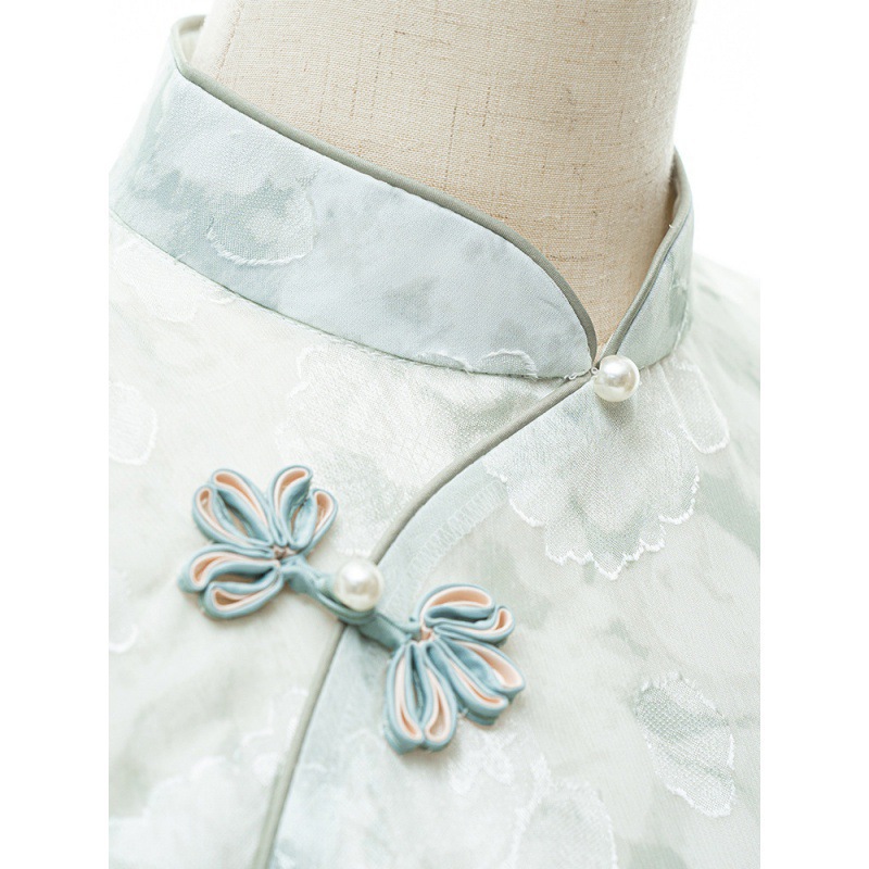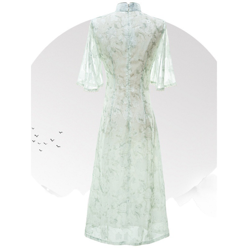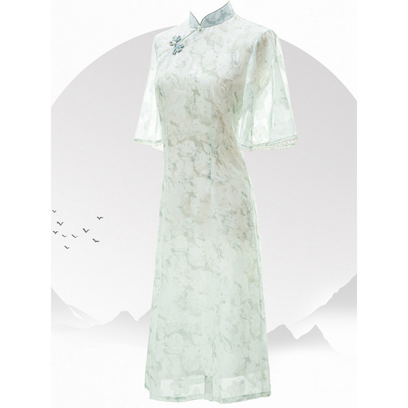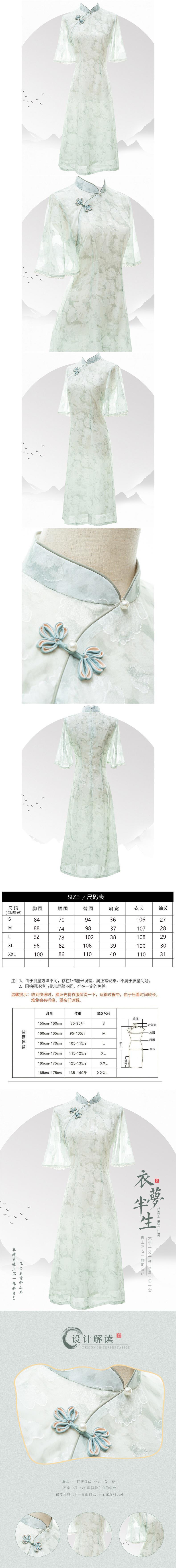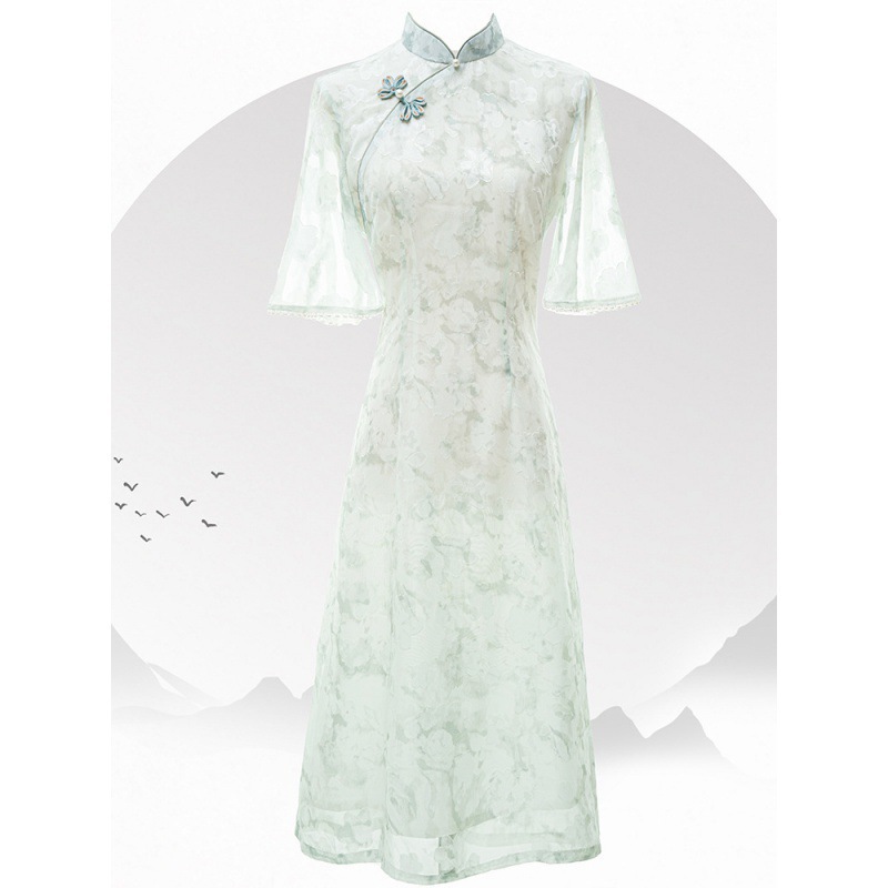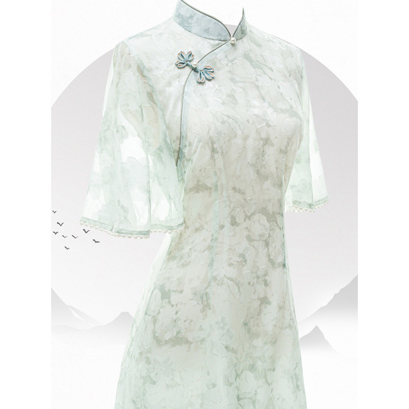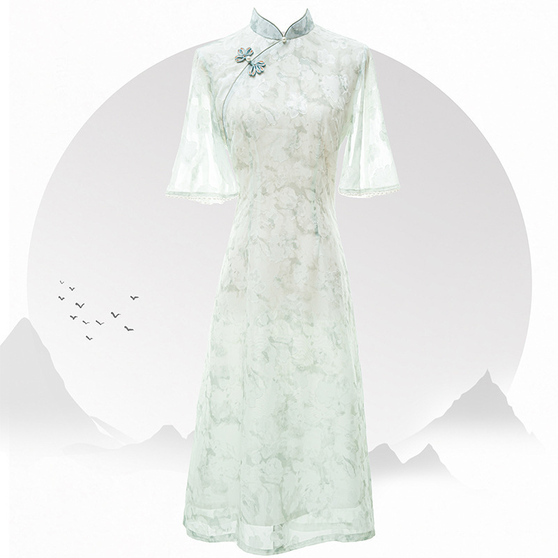 Зеленый свежий чонсам молодой высококачественный темперамент улучшает повседневные новые платья для девочек