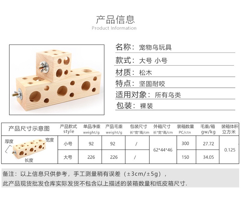 Игрушка для птиц: деревянный блок для жевания, шлифовки клюва, сверления, подставка для леса, стоячая палочка из сосны