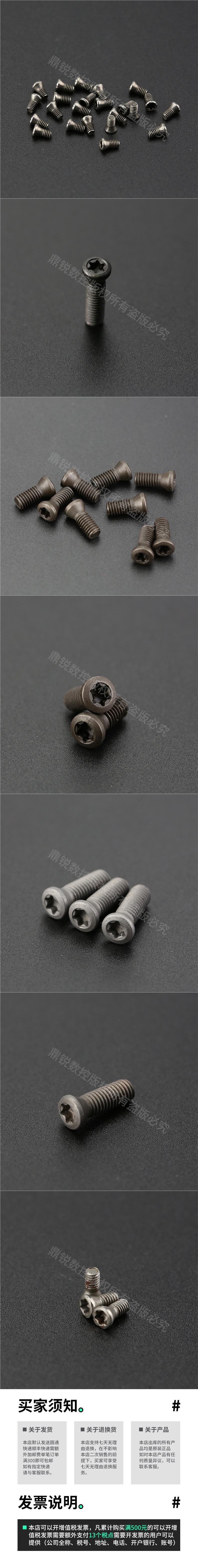 Винт Torx M2.2*5; Винт Torx M2*5; Винт Torx М2,5*6; Винт Torx М2,5*8; Винт Torx M3*6; Винт Torx M3*8; Винт Torx М3*10; Винт Torx M3*12; Винт Torx M3.5*10; Винт Torx M3.5*12; Винт Torx М4*8; Винт Torx М4*10; Винт Torx М4*12; Винт Torx M4*16; Винт Torx M4.5*15; Винт Torx M5*8; Винт Torx М5*12; Винты по индивидуальному заказу M4.5*14W; Винты по индивидуальному заказу M3.5*13T; Шестигранные винты M4*14 10, винты с 12 канавками; Шестигранный винт M5*16 Нож с 16 канавками; Шестигранные винты M6*20, ножи с 20 канавками и выше включают 20; Большая голова М5*25; Резьбовой держатель инструмента со стороны винтов M3*5