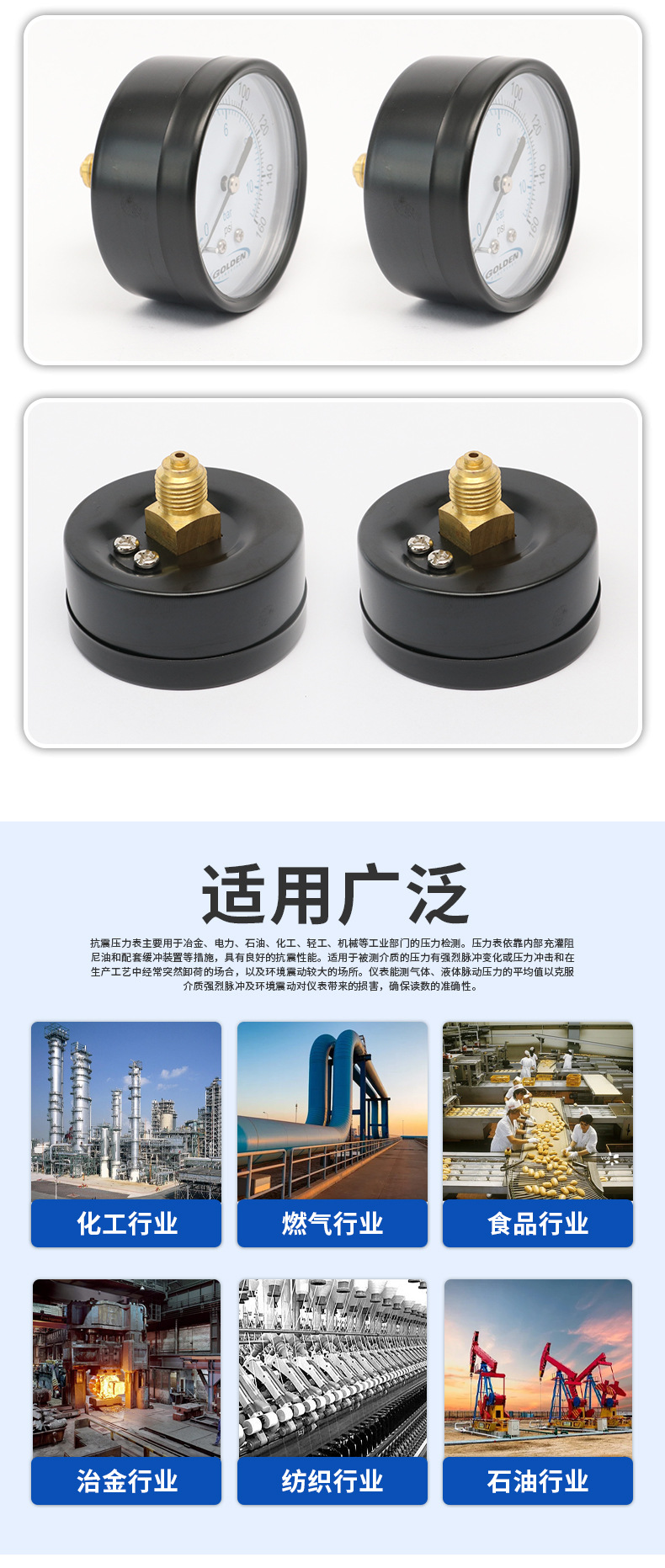 震动、以及突然卸荷场合。克服介质强烈脉冲及环境震动对仪表带来的损害,确