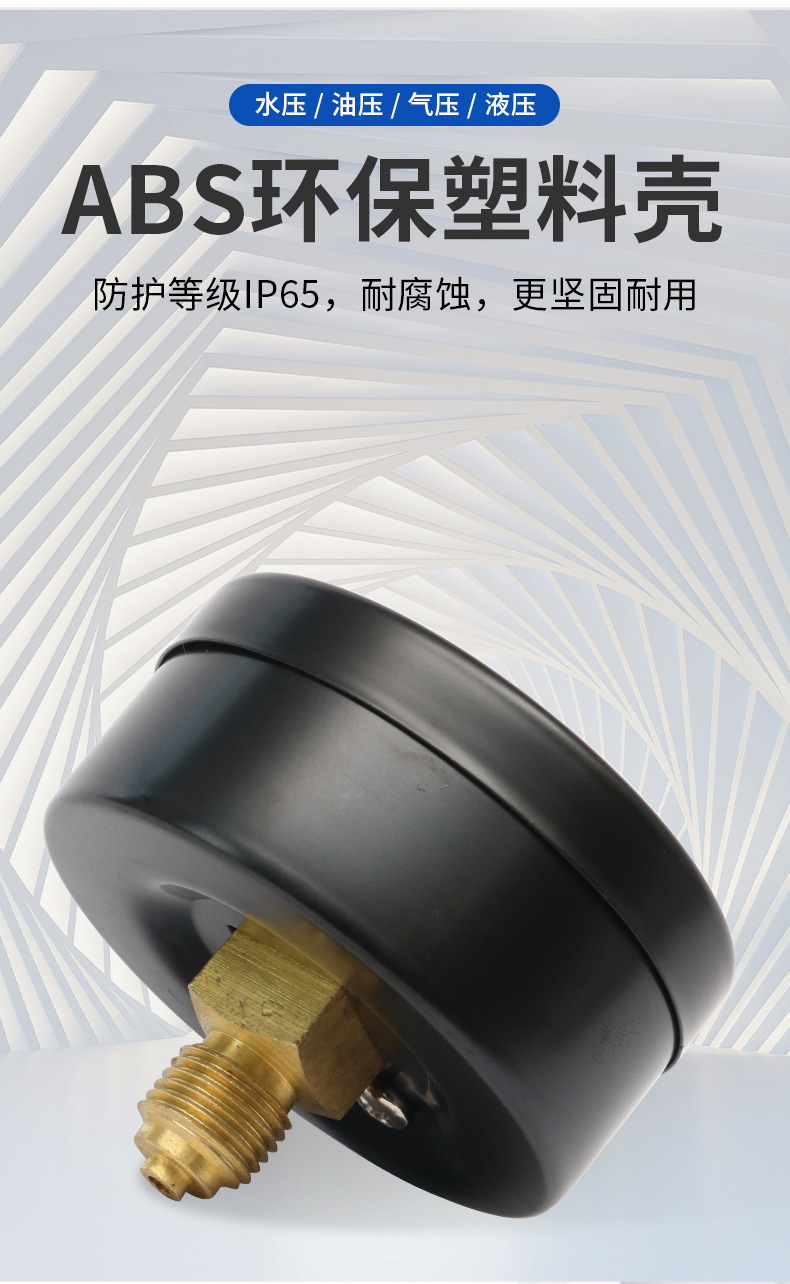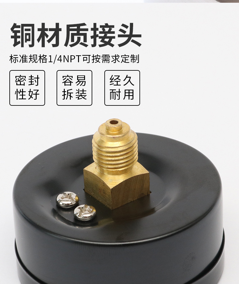压力表的外壳采用304不锈钢材料,内部结构采用不锈钢材料与铜材料二种