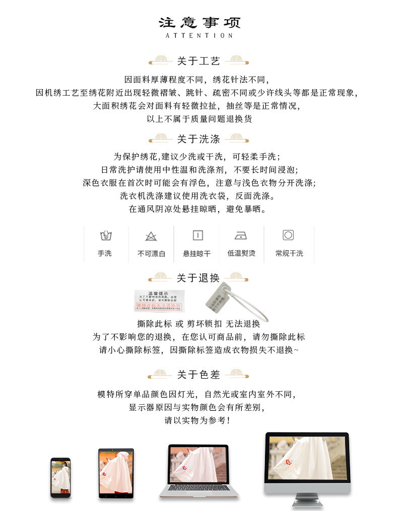 洗涤说明* 禁用肥皂,洗衣粉 等碱性洗涤用品