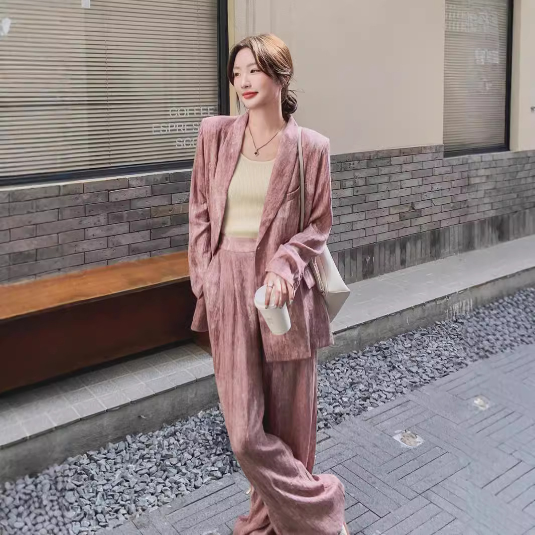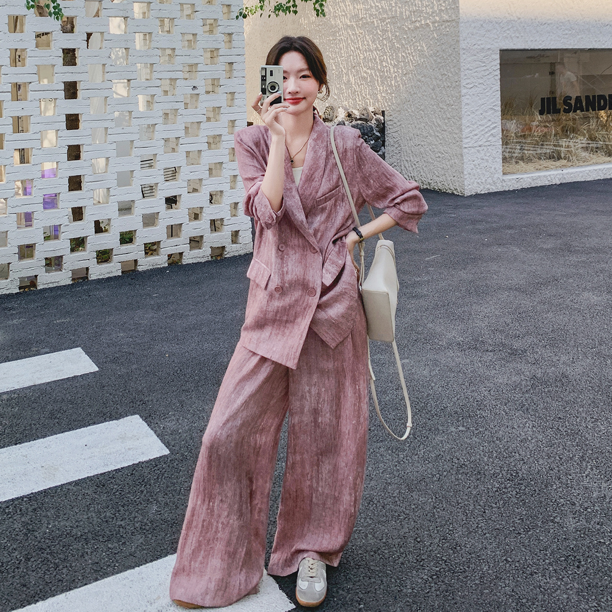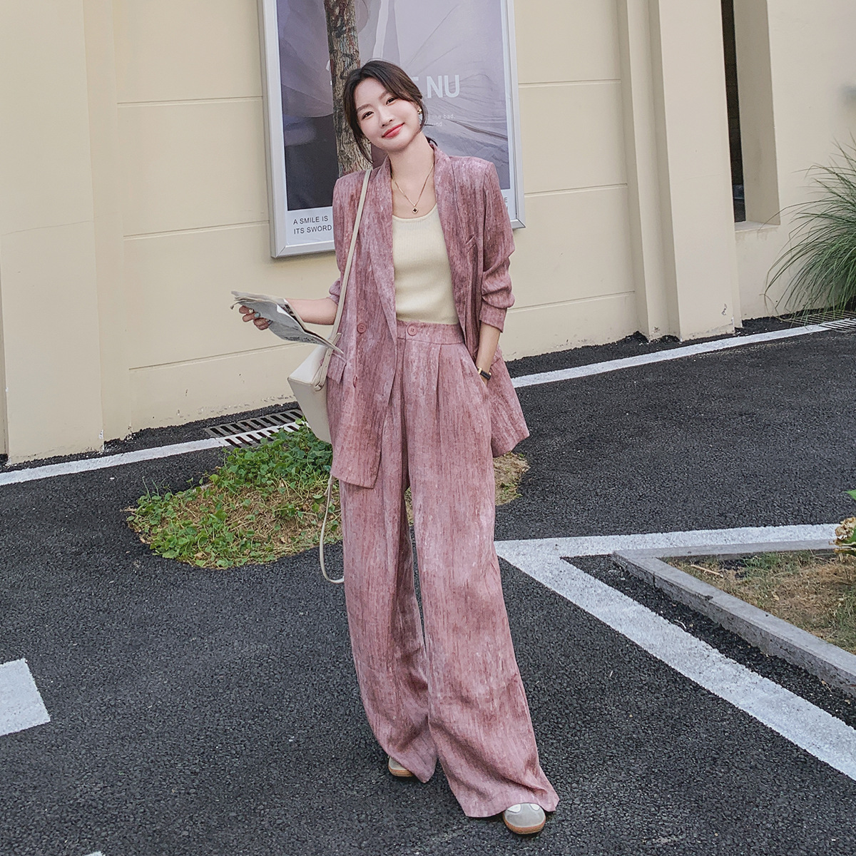 2706 большой размер женский ретро дизайн чувство повседневный костюм костюм женский толстый мм минус модные широкие брюки из двух частей