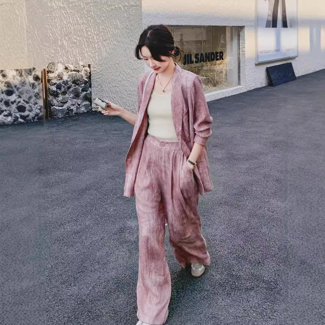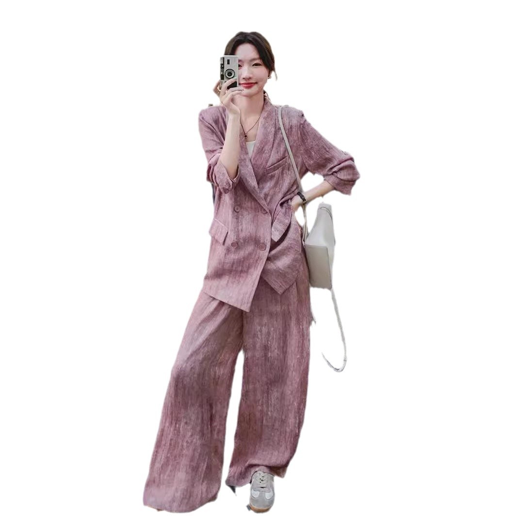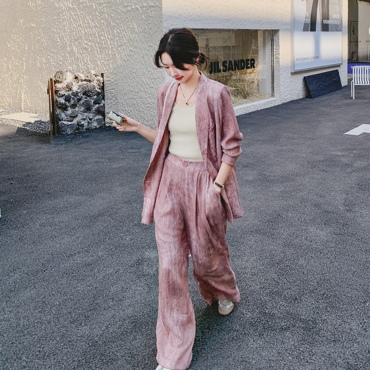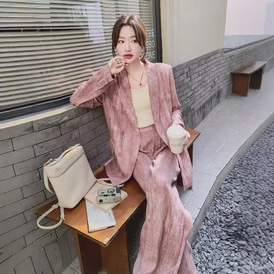 2706 большой размер женский ретро дизайн чувство повседневный костюм костюм женский толстый мм минус модные широкие брюки из двух частей