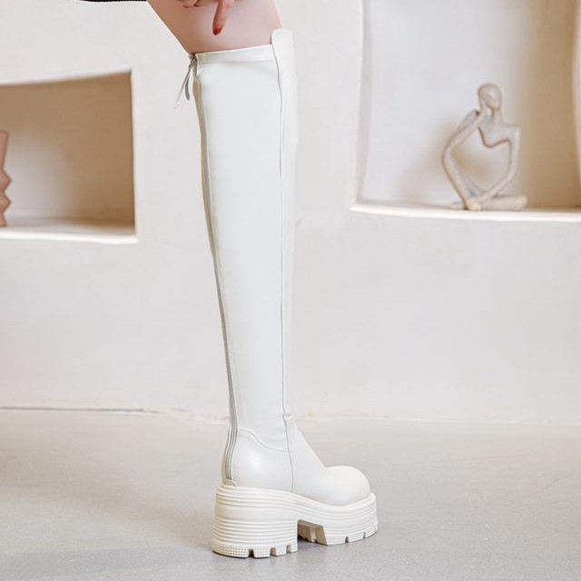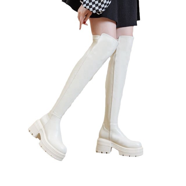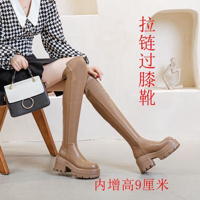 Сапоги на молнии с толстым дном 9 см тощий колен женские сапоги высокая эластичная модификация большие длинные ноги прохладные сапоги