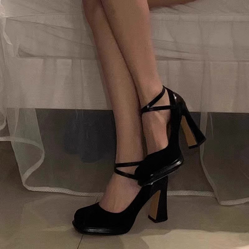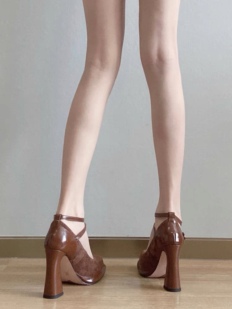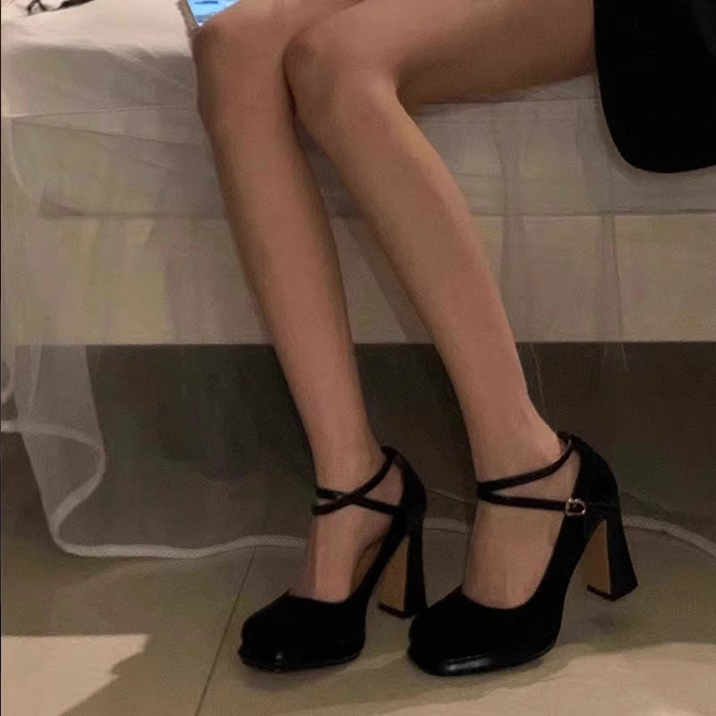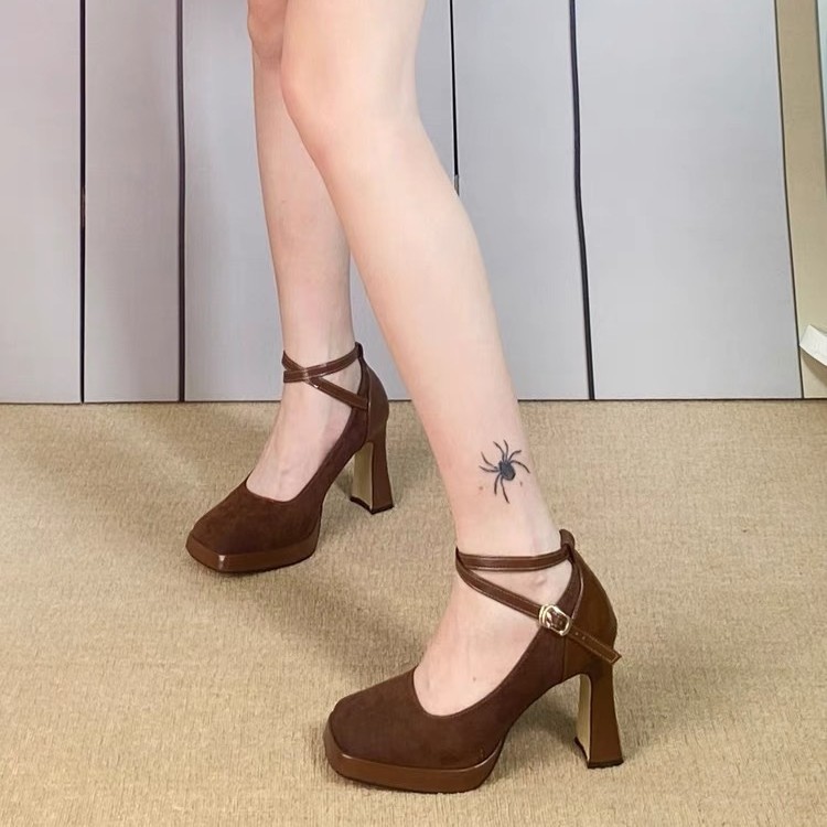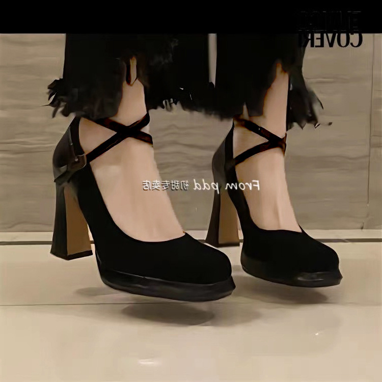 Туфли на высоком каблуке Женская весна и осень 2024 новая мода мелкий рот ретро квадратная голова толстые каблуки водонепроницаемая платформа Мэри Джейн