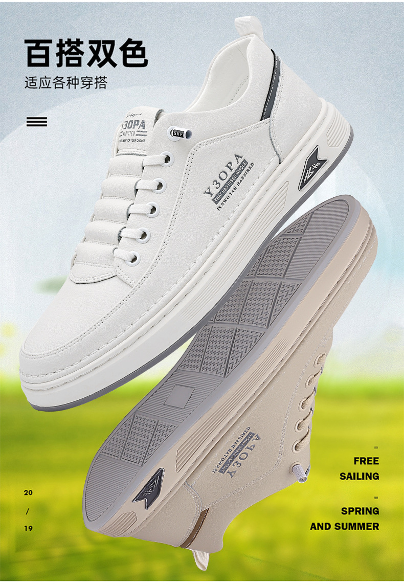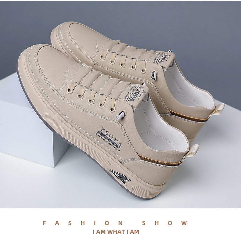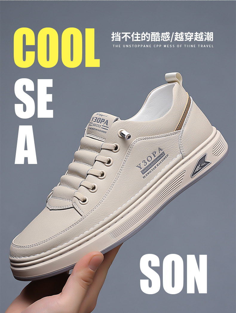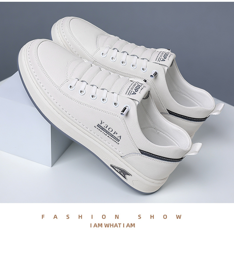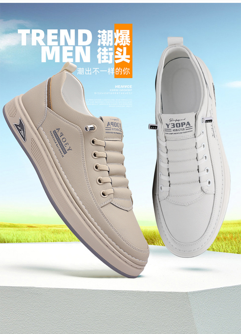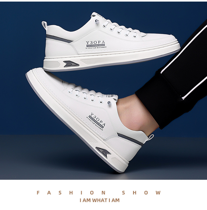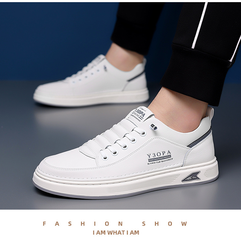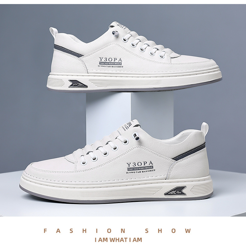 Мужские кроссовки осень 2025: новые кожаные дышащие спортивные повседневные туфли для подростков, модные универсальные белые туфли для мужчин