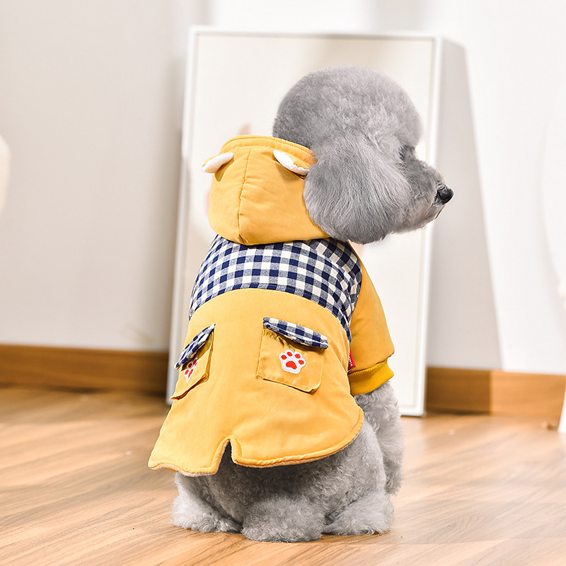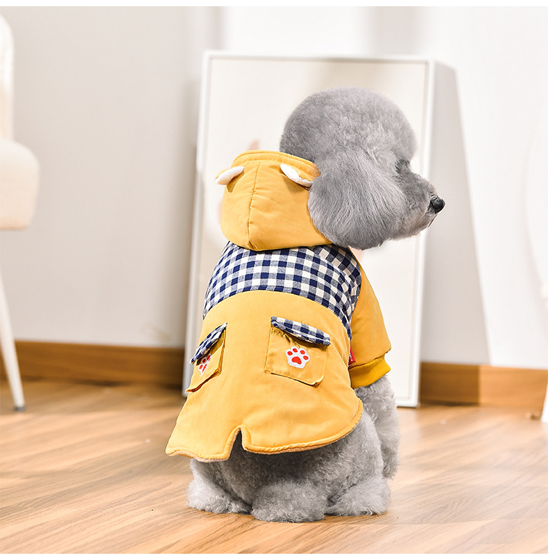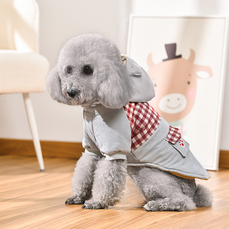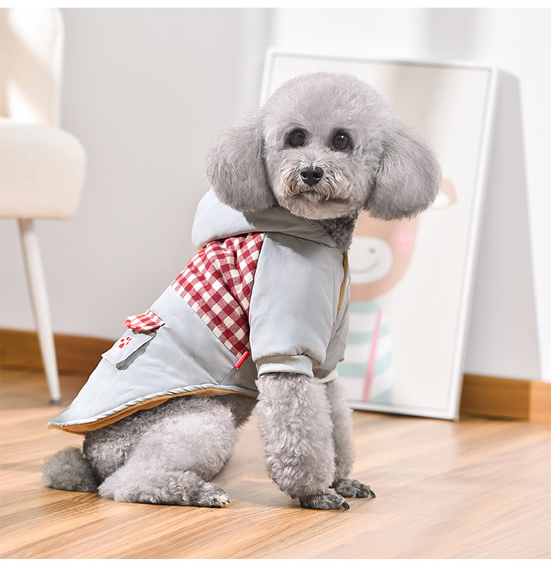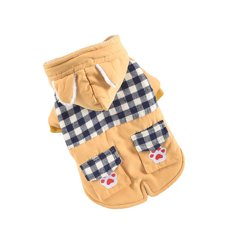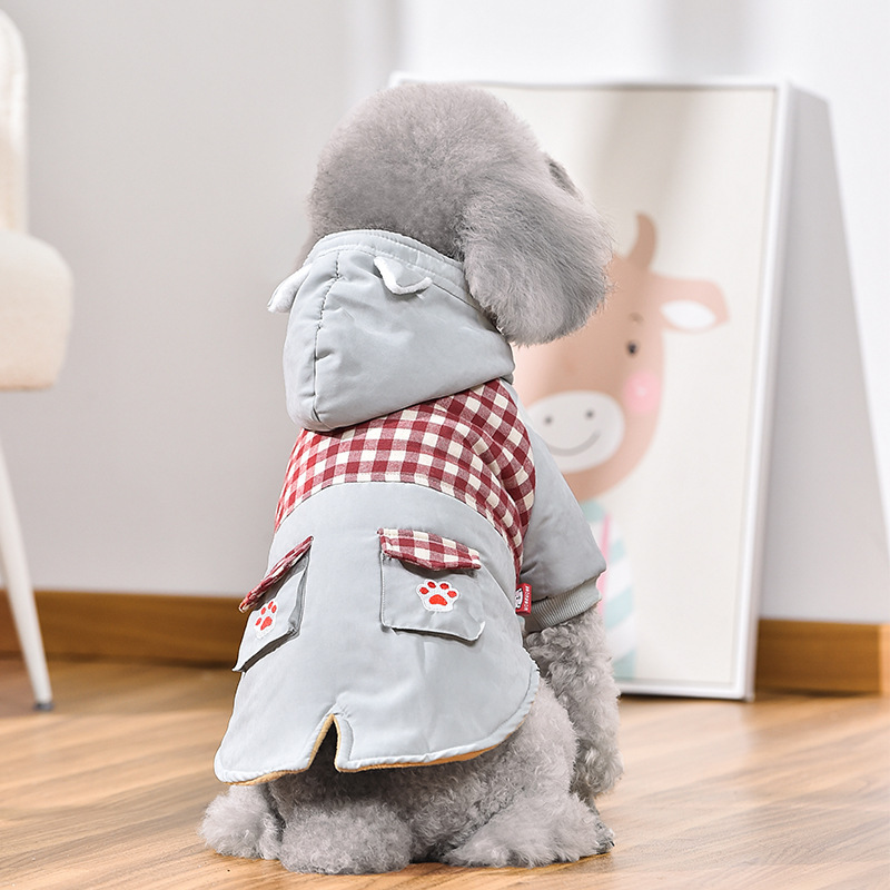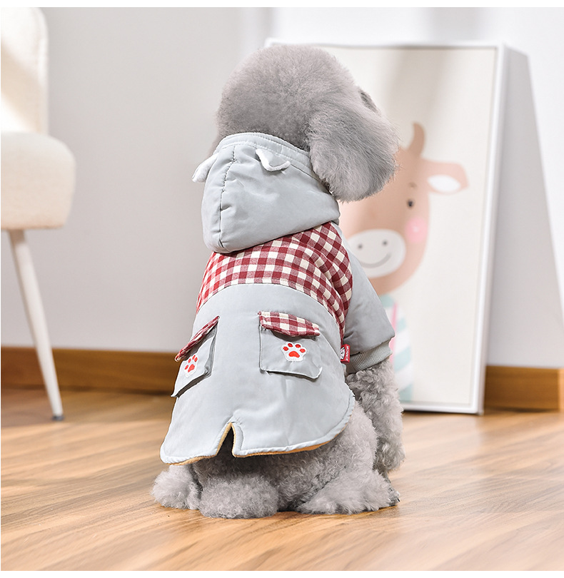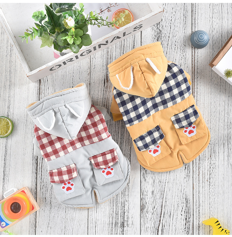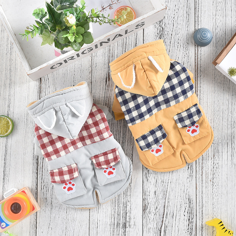 Новая пота собака кошка милая клетчатая шапка куртка осенне-зимняя толстая маленькая одежда для собак среднего размера