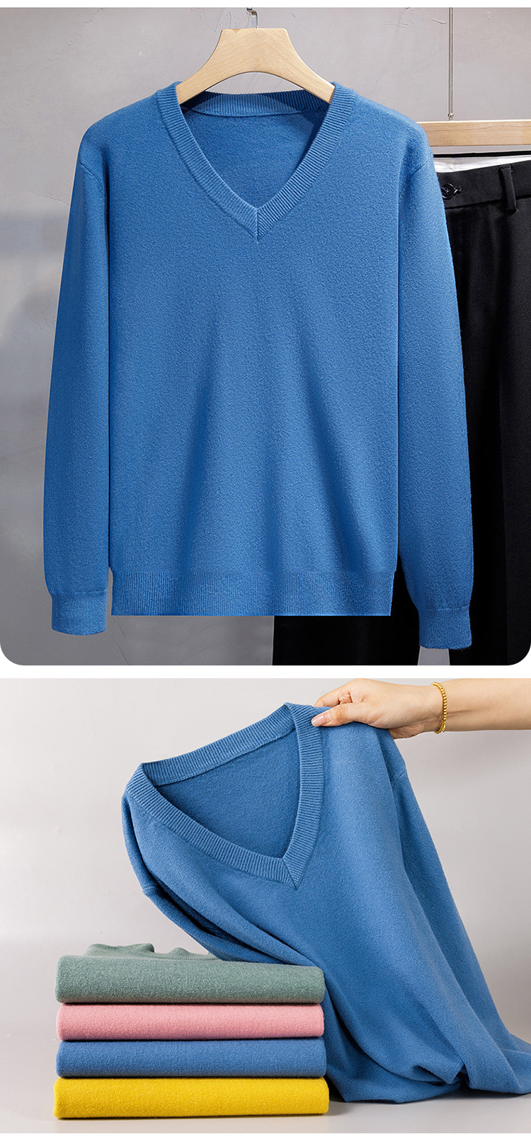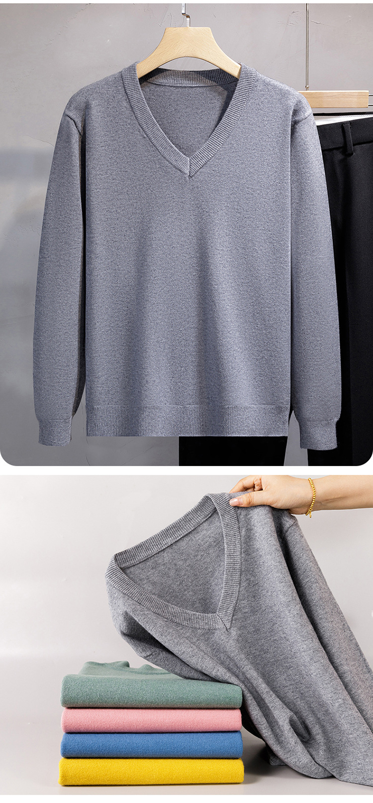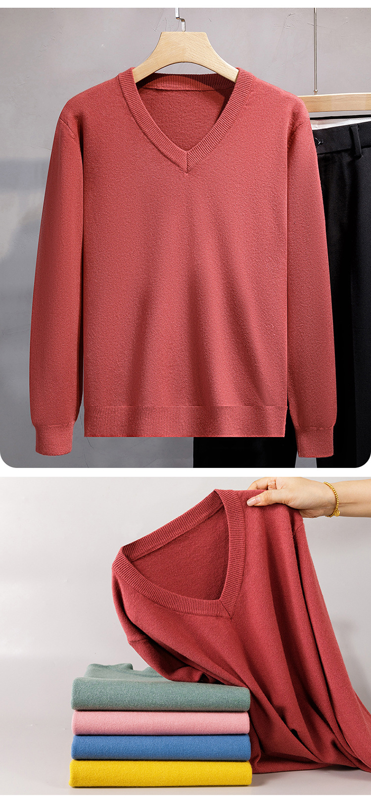 2024 осень и зима новый повседневный бизнес V-образный вырез сплошной цвет джемпер джемпер сплошной цвет мужской трикотаж с длинными рукавами