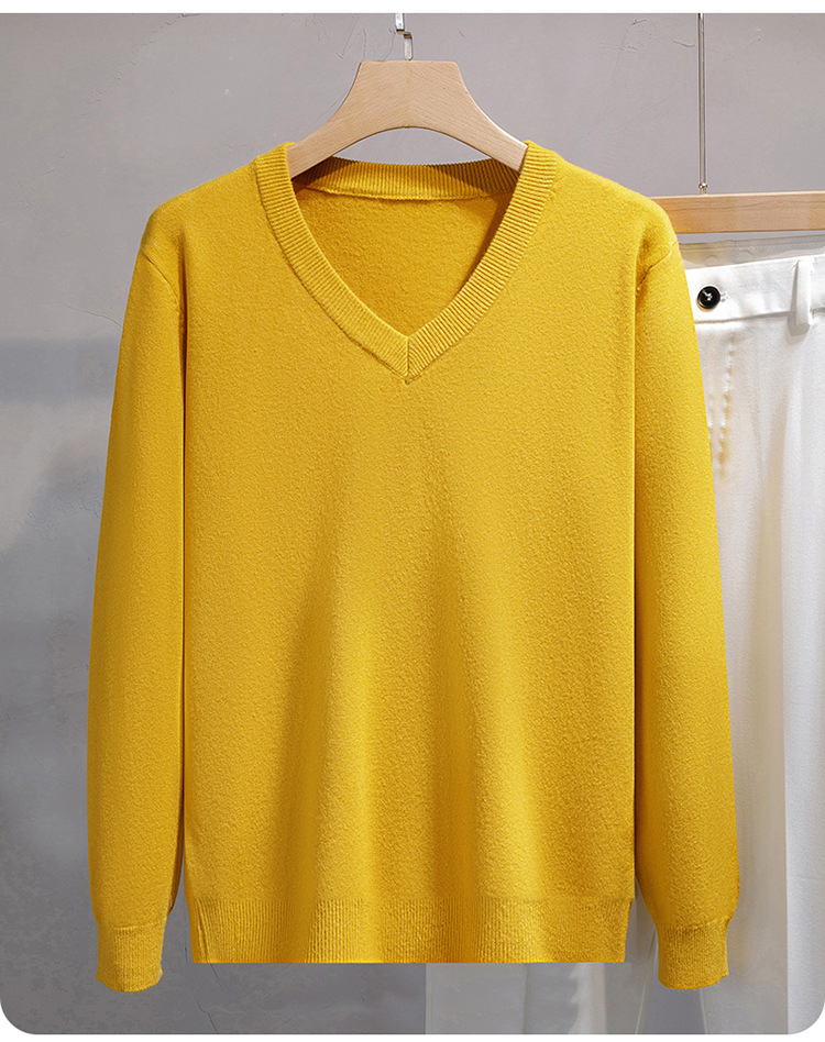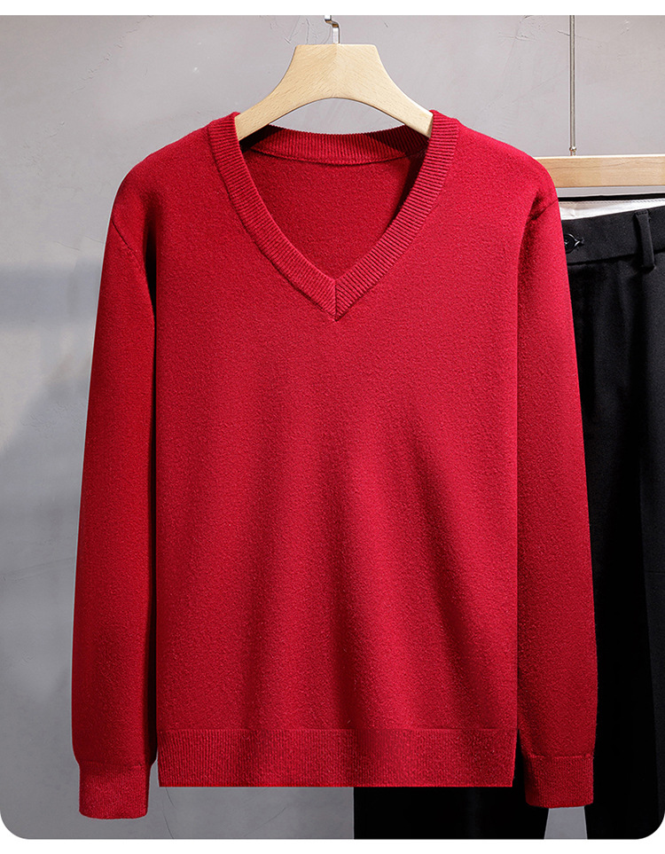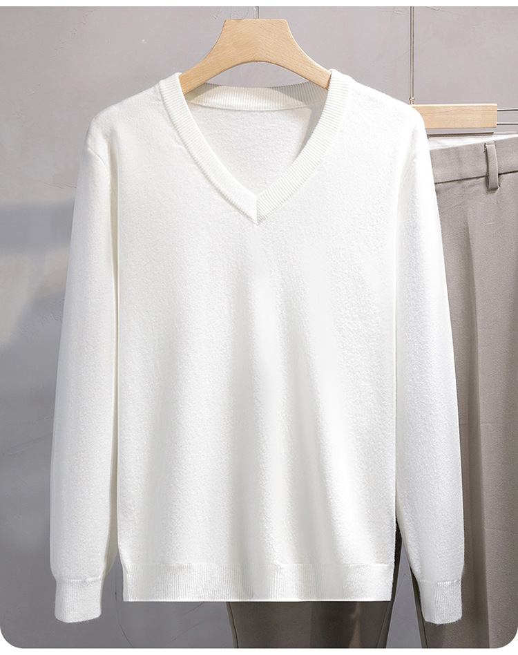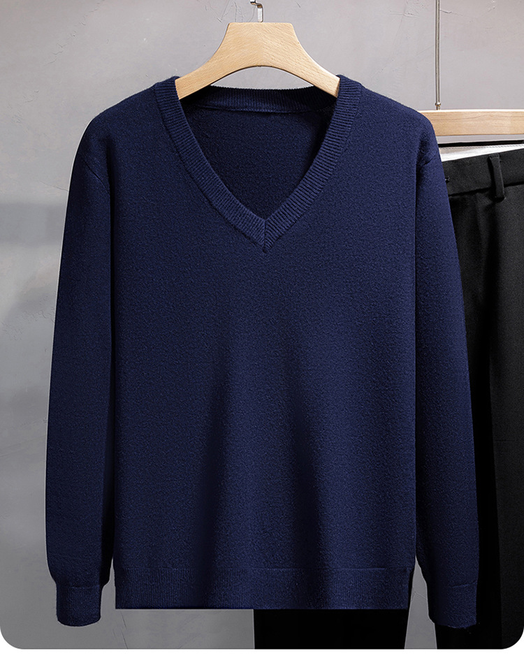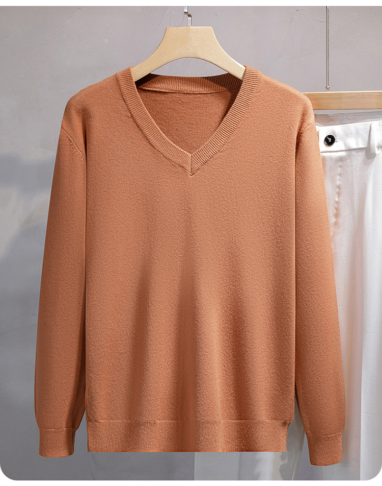 2024 осень и зима новый повседневный бизнес V-образный вырез сплошной цвет джемпер джемпер сплошной цвет мужской трикотаж с длинными рукавами