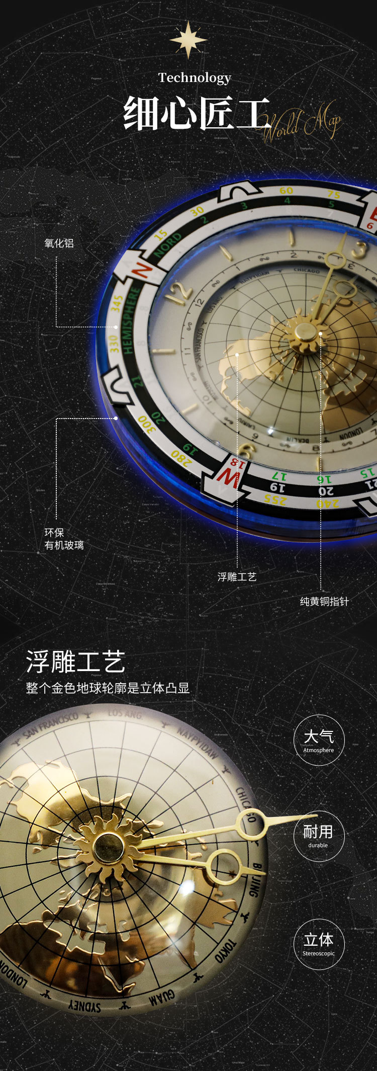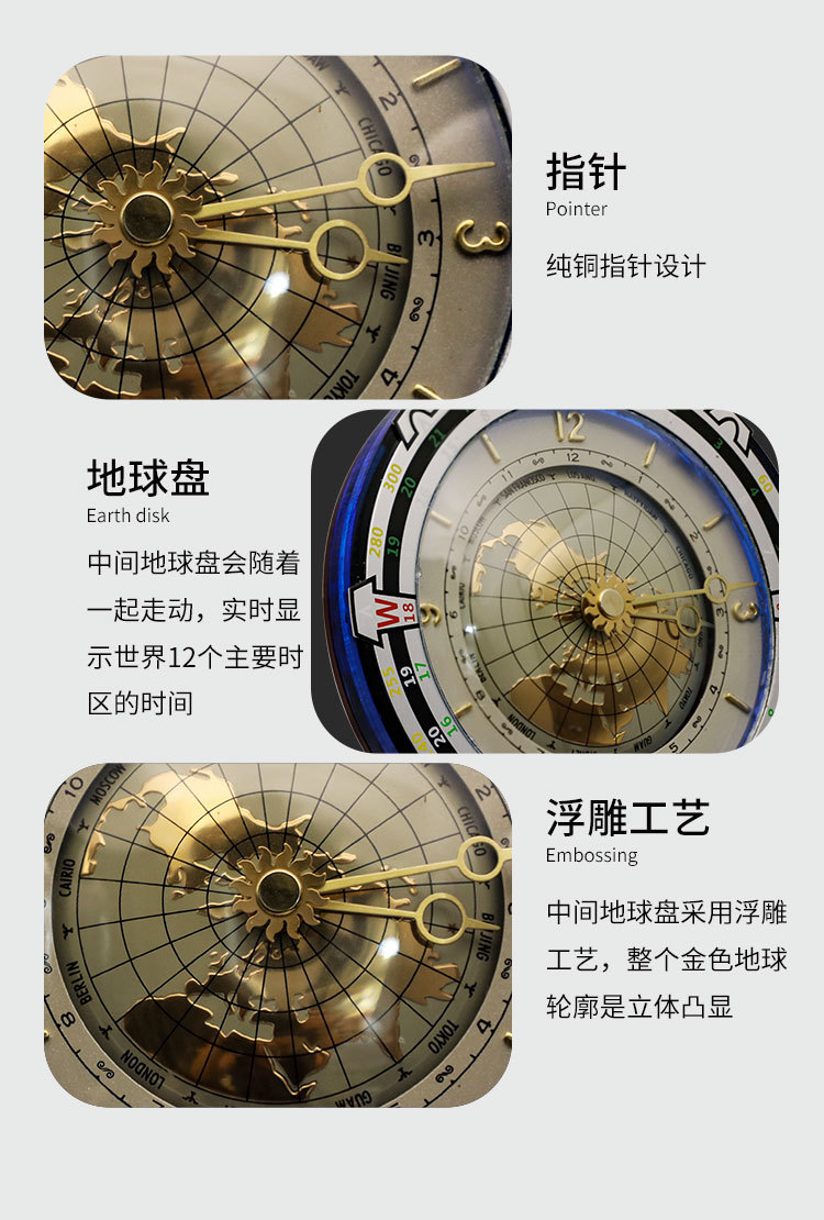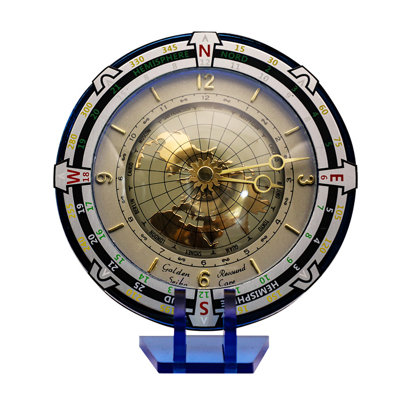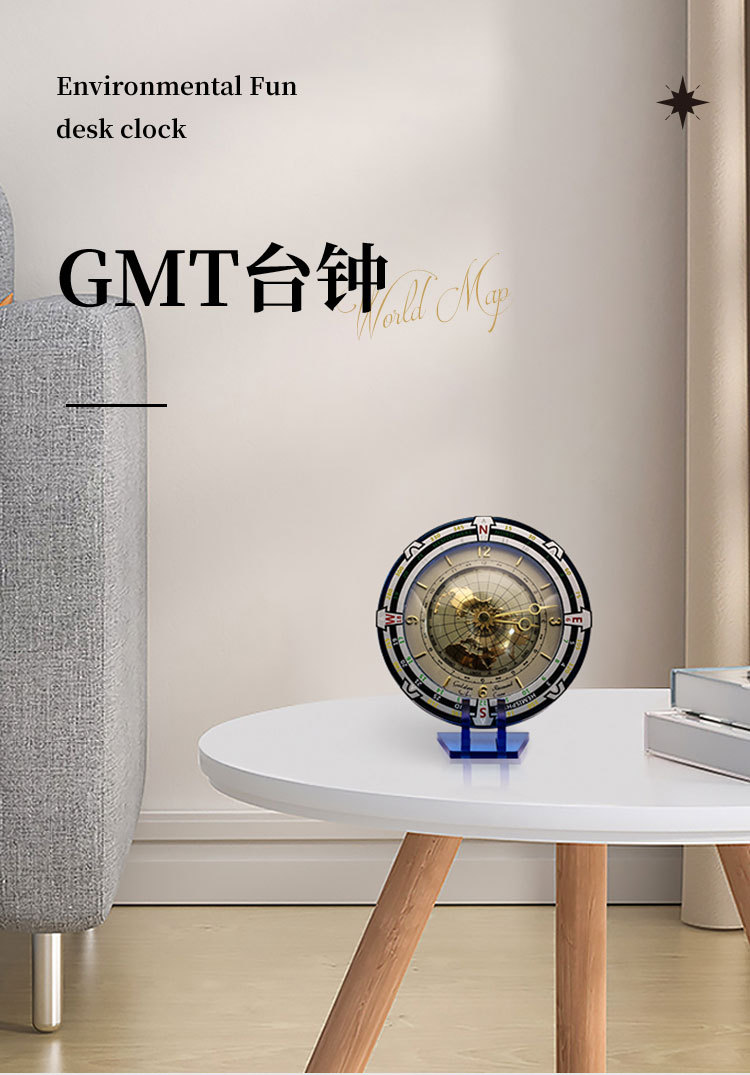 Металлические настоичные часы для украшения интерьера креативные украшения рельеф земной диск показывает двенадцать часовых поясов мира