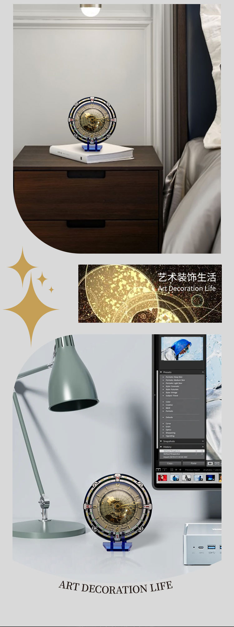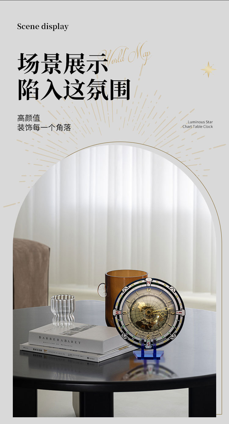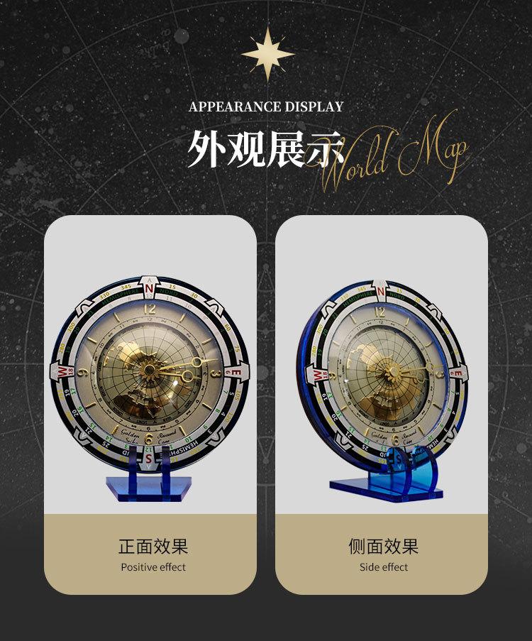 Металлические настоичные часы для украшения интерьера креативные украшения рельеф земной диск показывает двенадцать часовых поясов мира