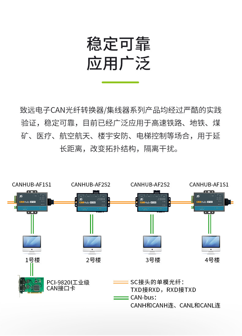 ZLG Zhiyuan электронный интеллектуальный CAN волоконно-оптический конвертер серии концентратор CANHub-AF1S1/2S2