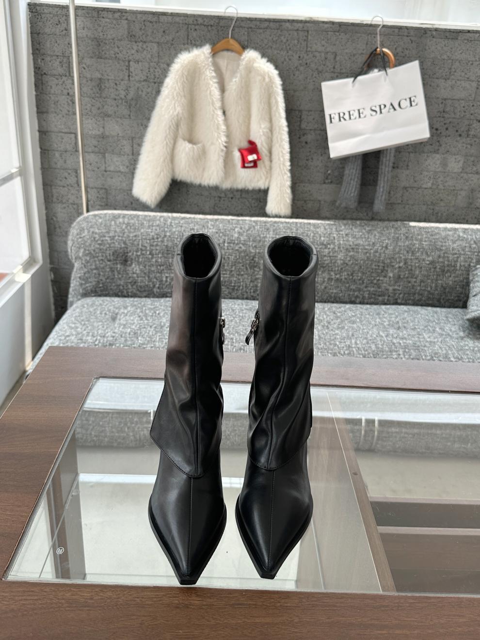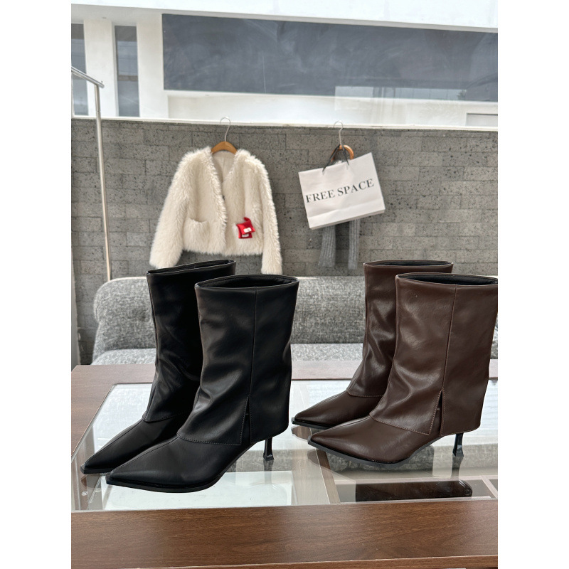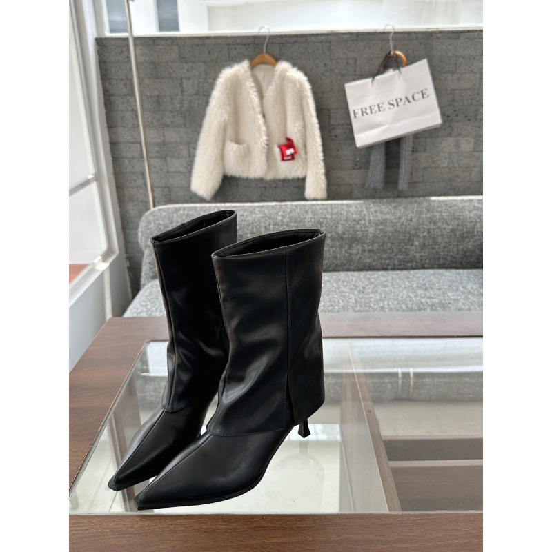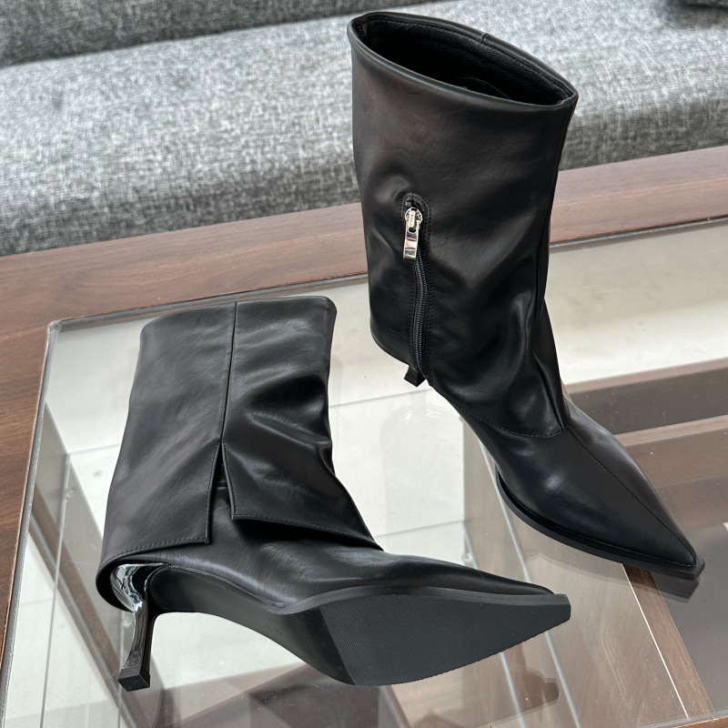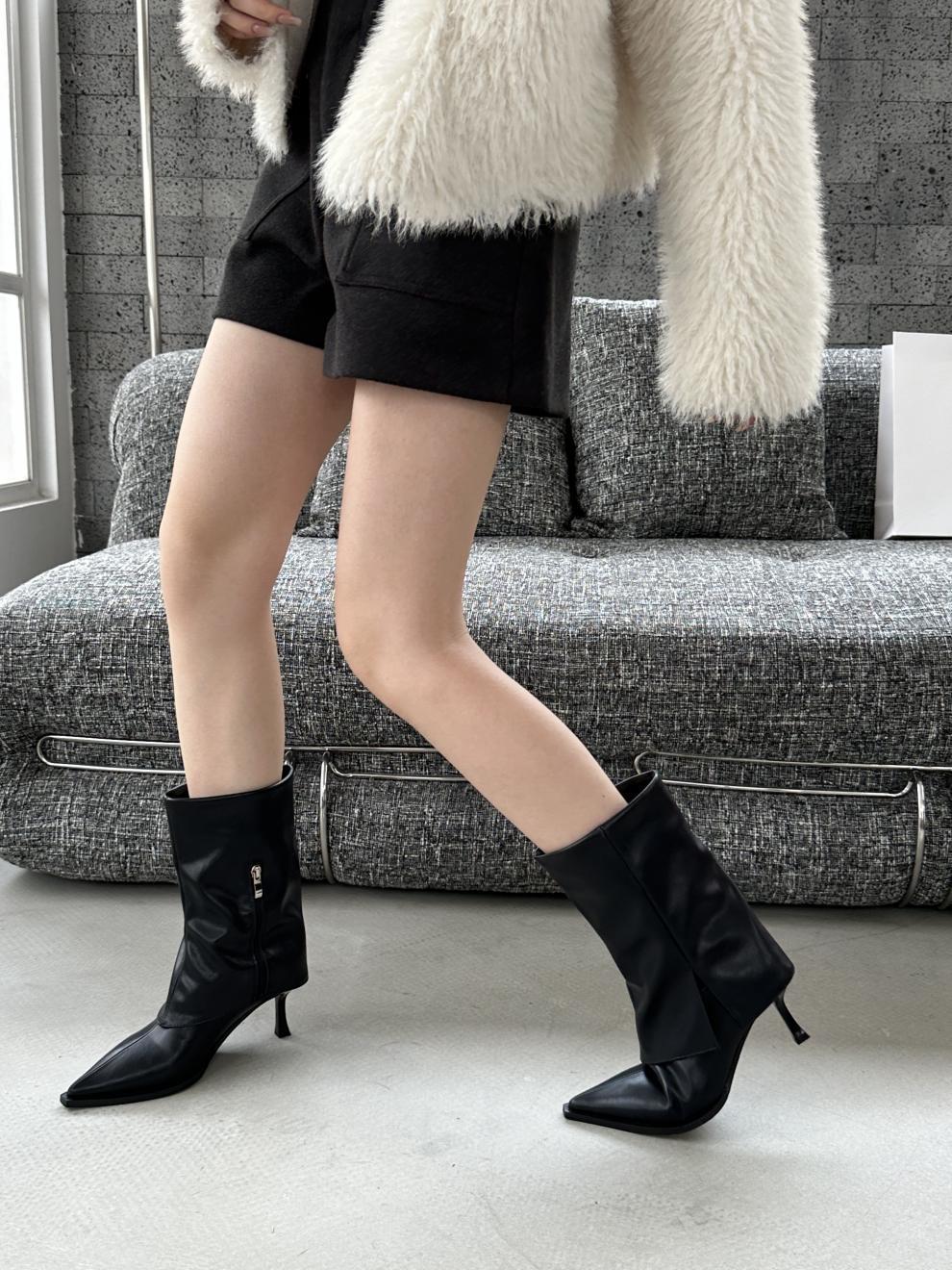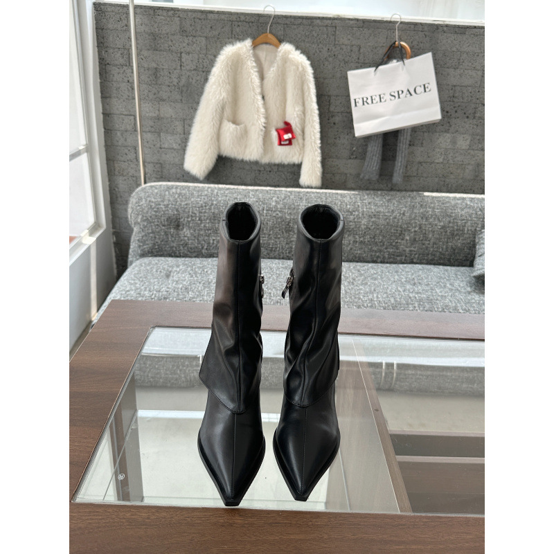 2024 осенние и зимние новые одиночные сапоги остроконечные модные сапоги на каблуках короткие сапоги женские тонкие сапоги эластичные сапоги