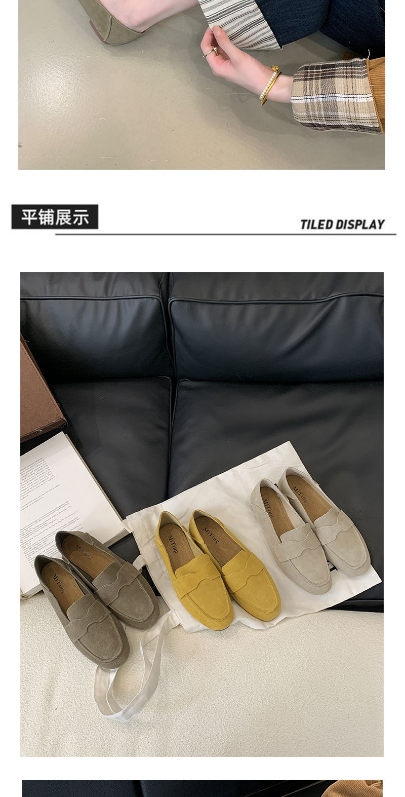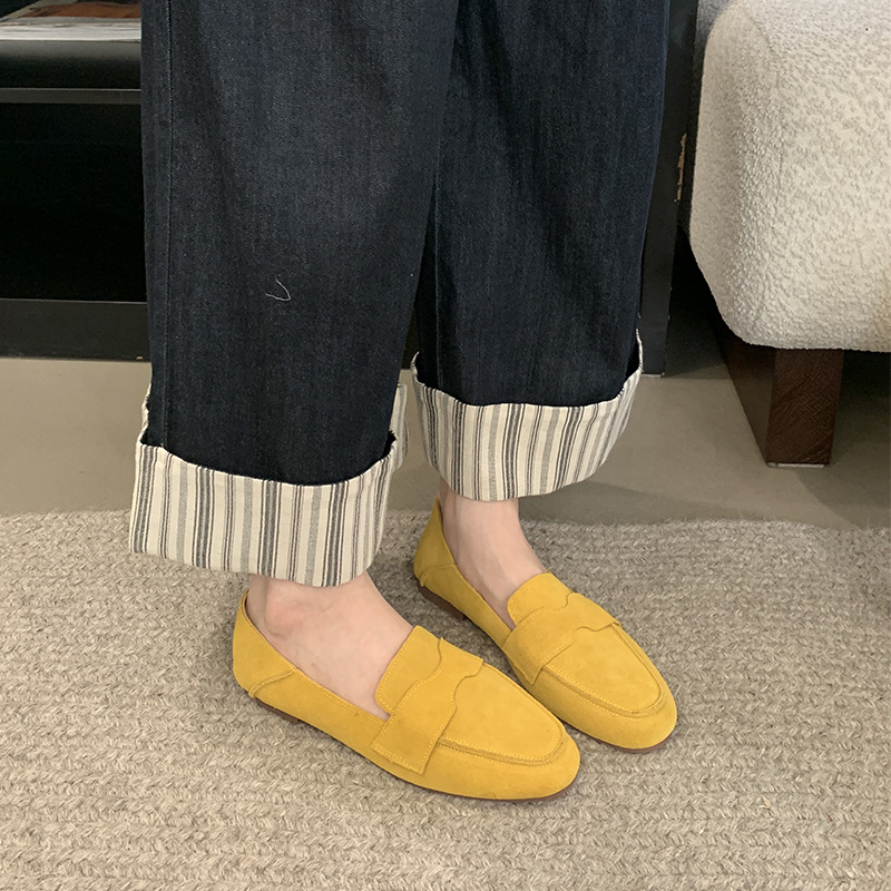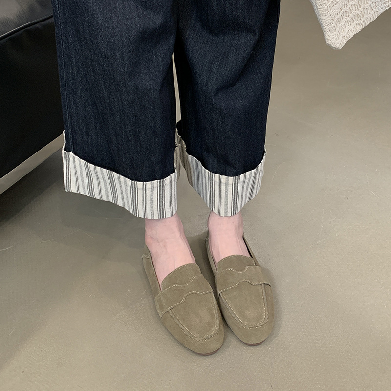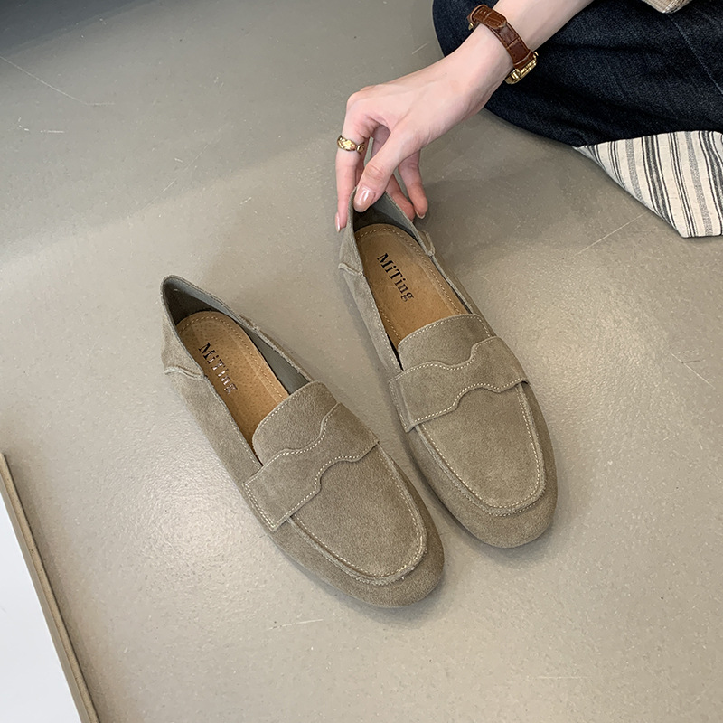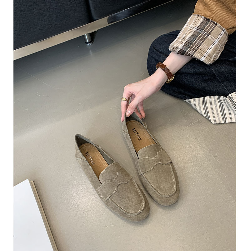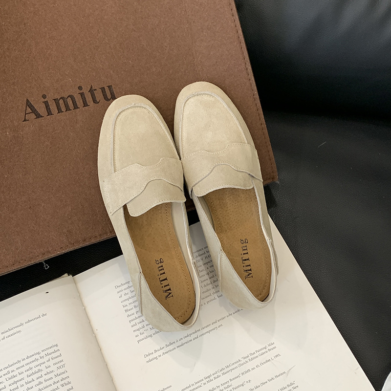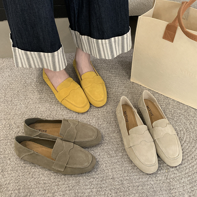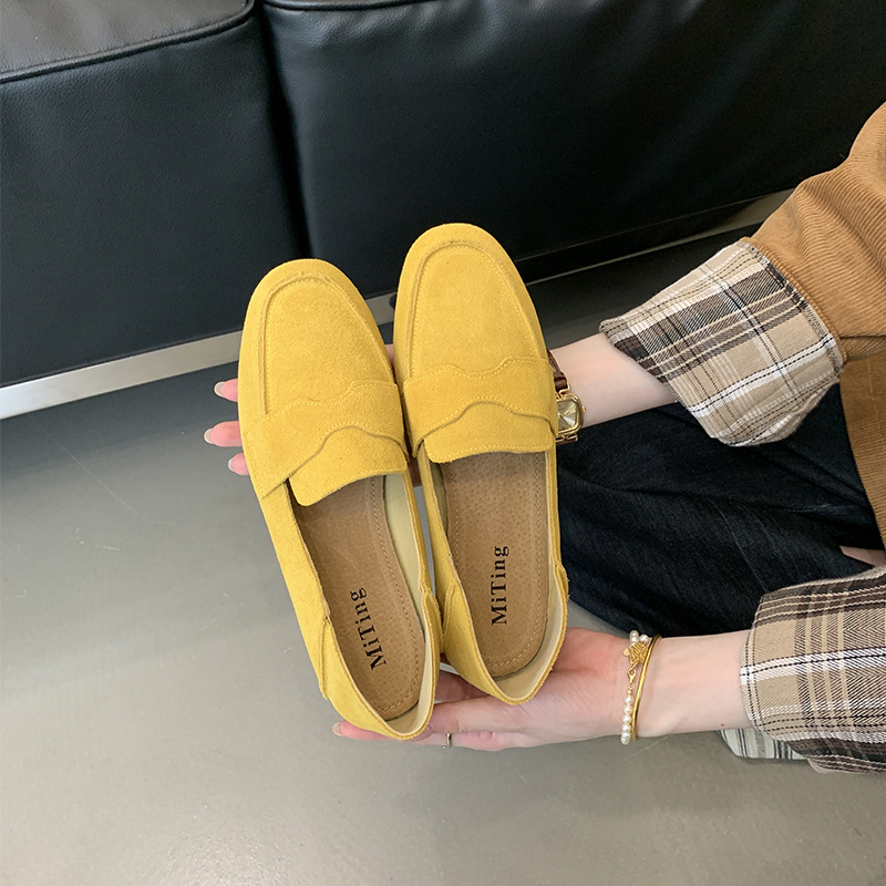Mi Ting ленивый педаль плоские женские ботинки Lefu женские 2024 кожаные туфли с круглой головкой на низком каблуке
