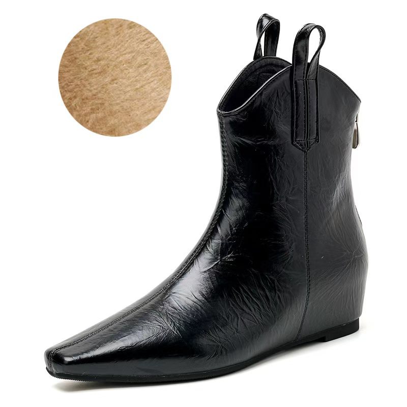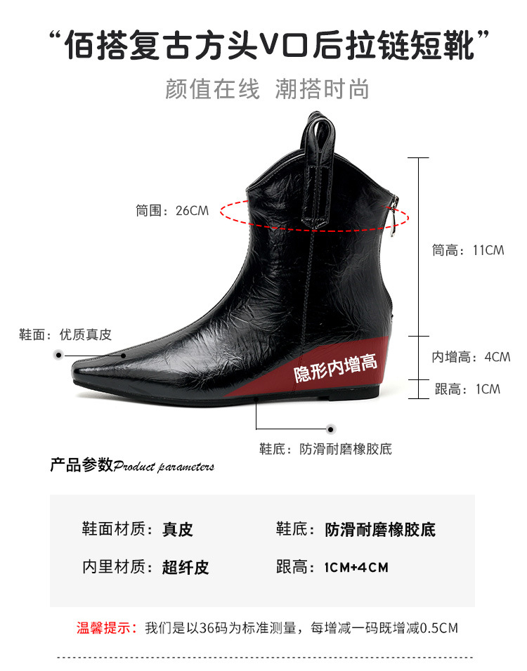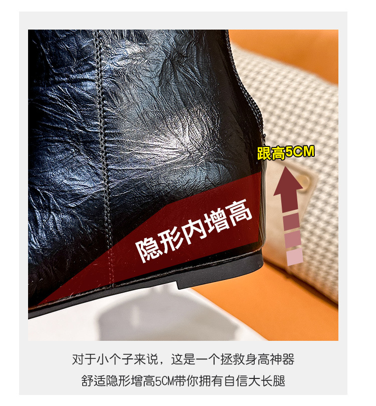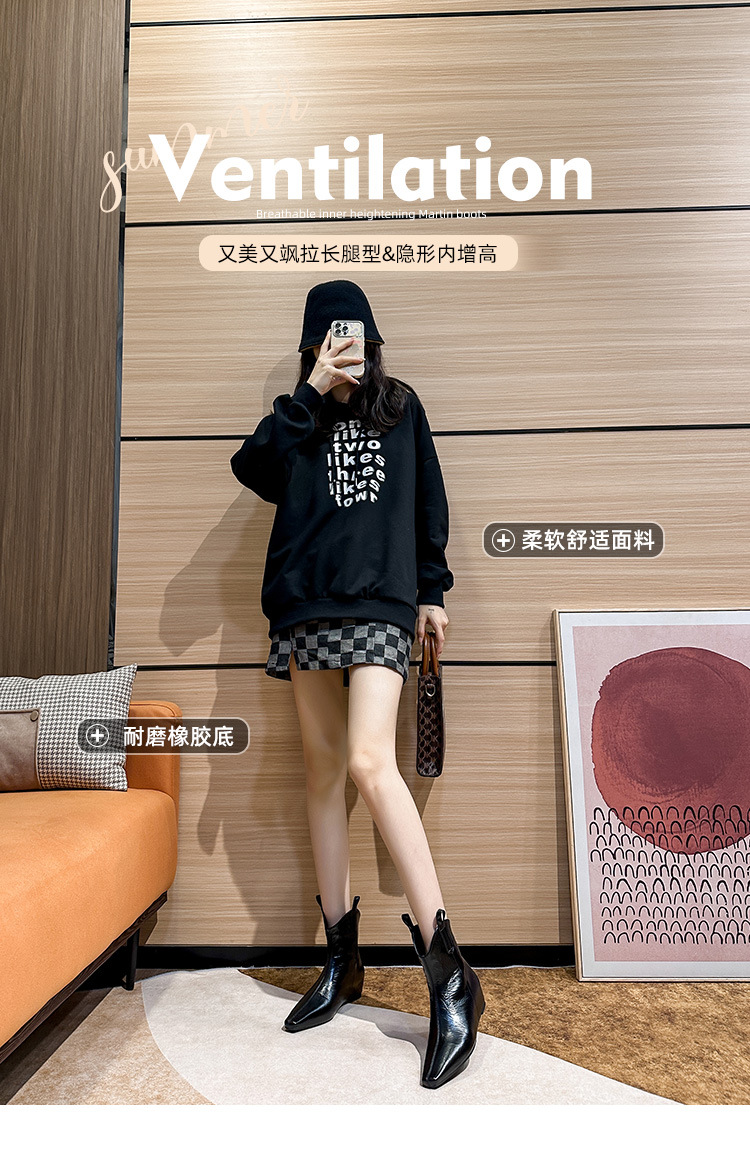 Увеличение ботинок Martin женские весенние и осенние новые наконечки увеличены внутри короткие ботинки на молнии женские V рот короткие ботинки челси трансграничные