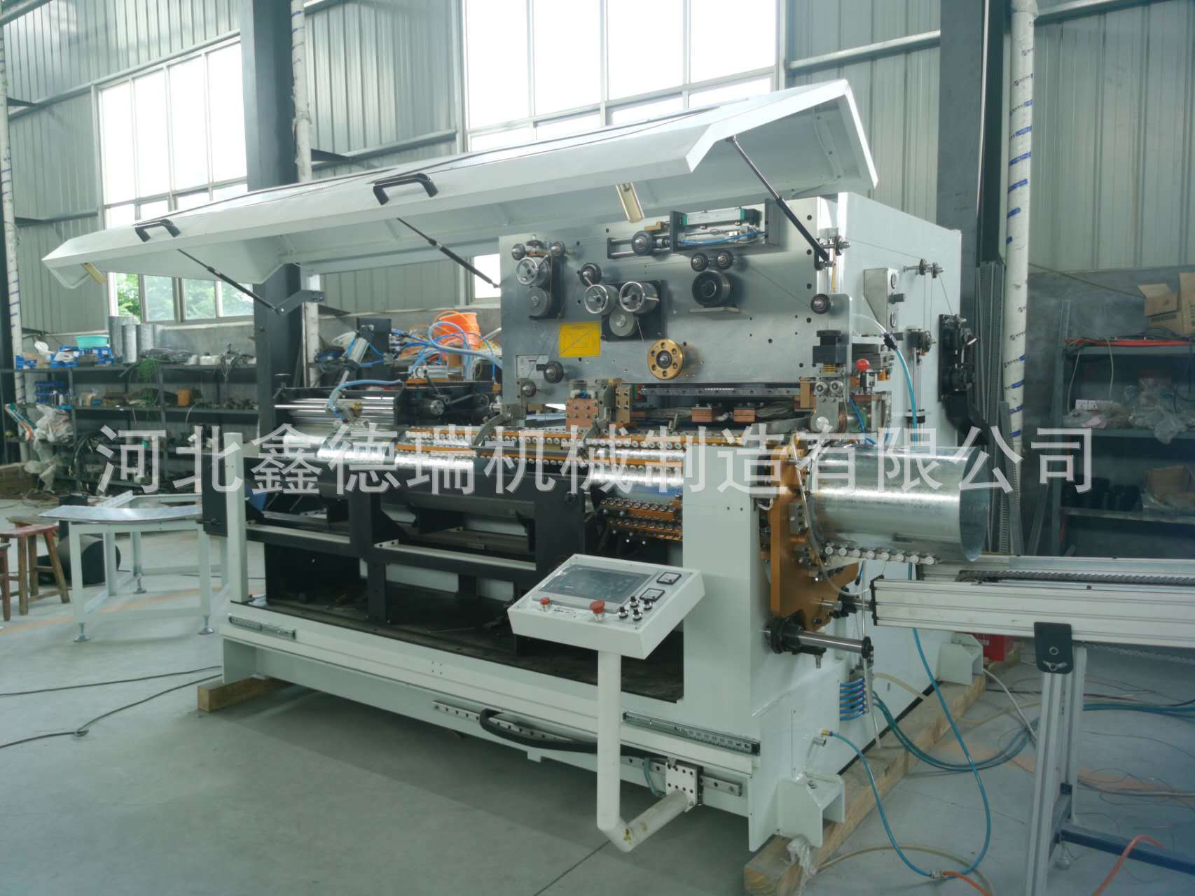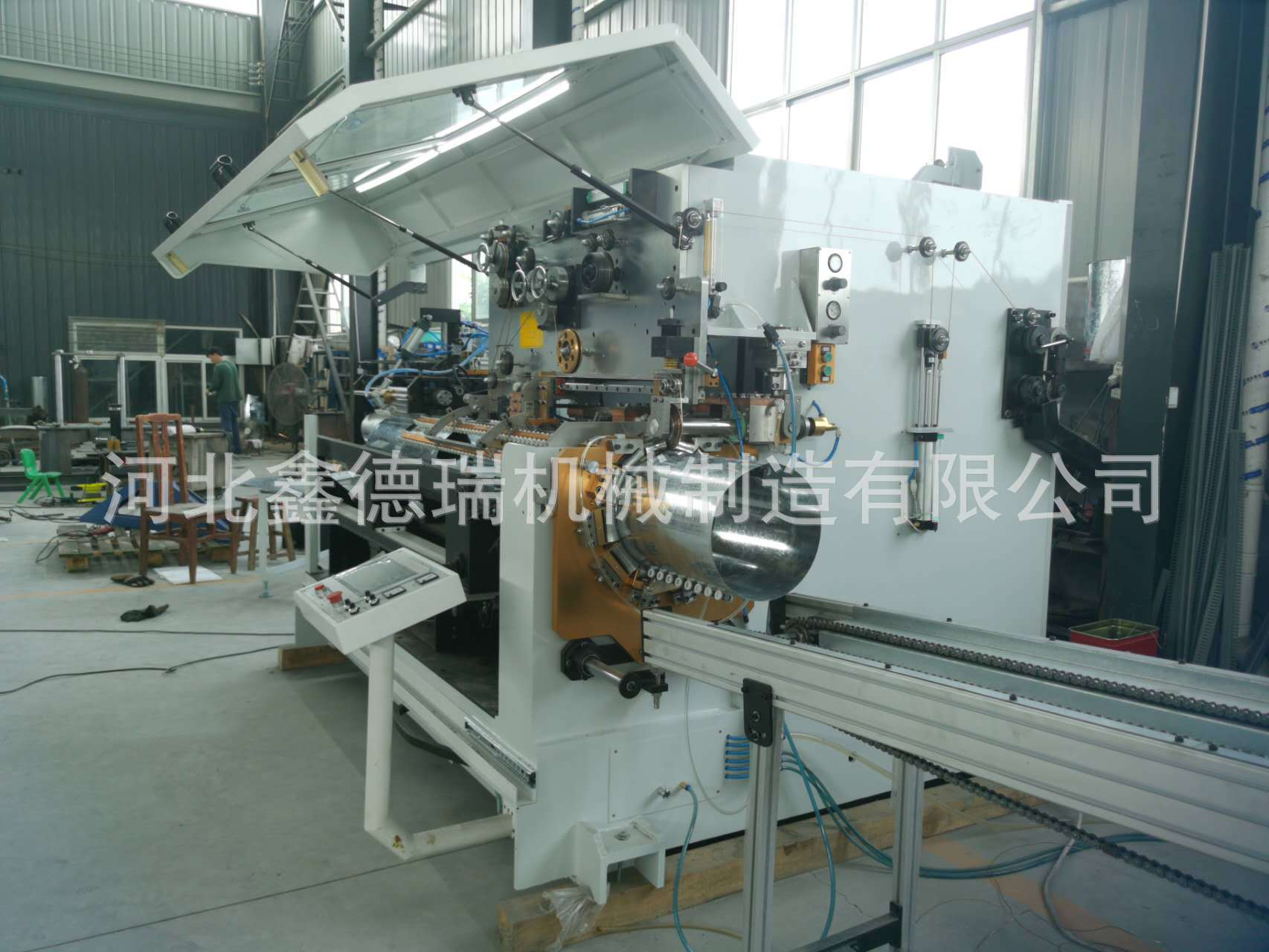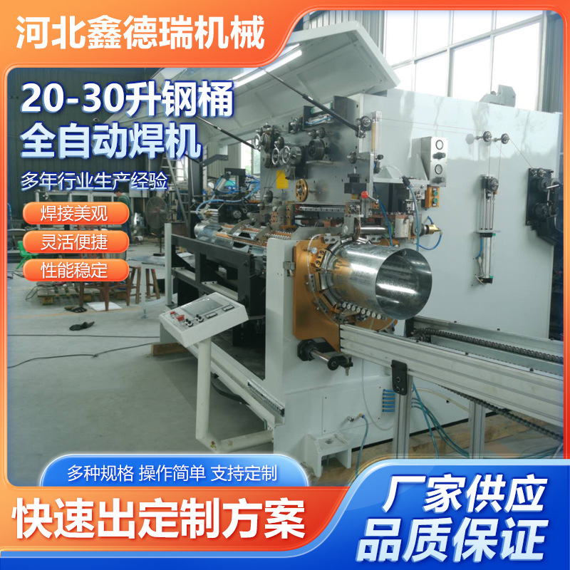 Автоматическая линия для производства стальных бочек объемом 20-30 литров, специализированная машина для контактной сварки прямых швов.