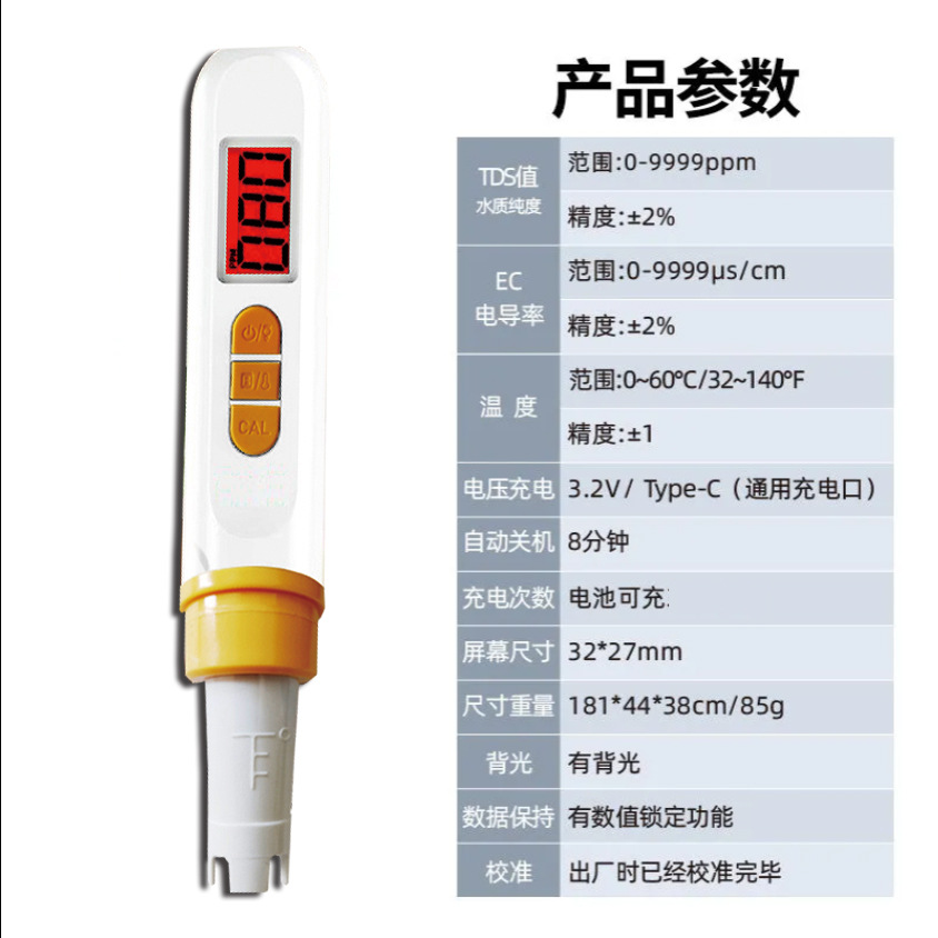 Зарядная ручка TDS для контроля качества воды многофункциональная интеллектуальная двухцветная ручка для измерения воды с подсветкой дома TDS & EC тестовая ручка