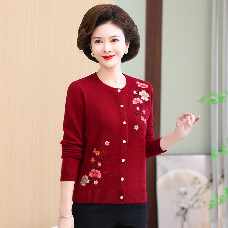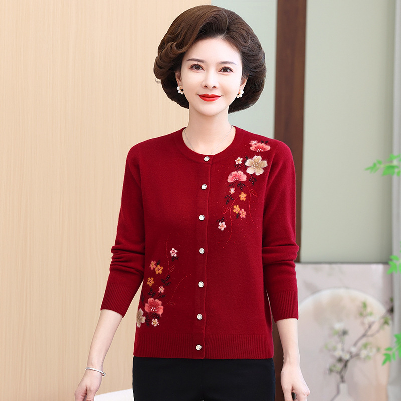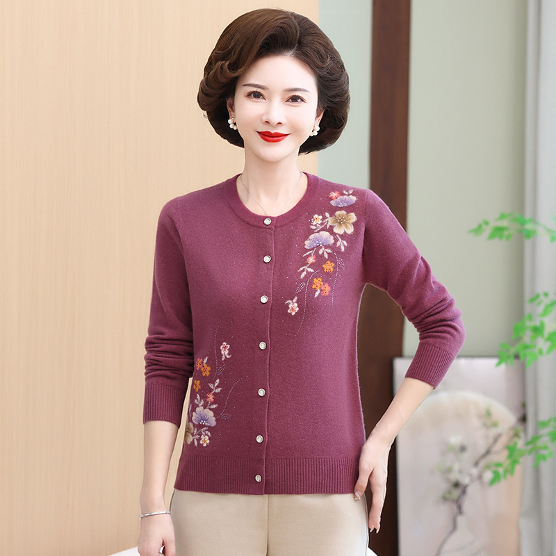 Люди среднего и пожилого возраста 100% чистый свитер женский вязаный кардиган пальто осень-зима мама одеваются плюшевые свитера