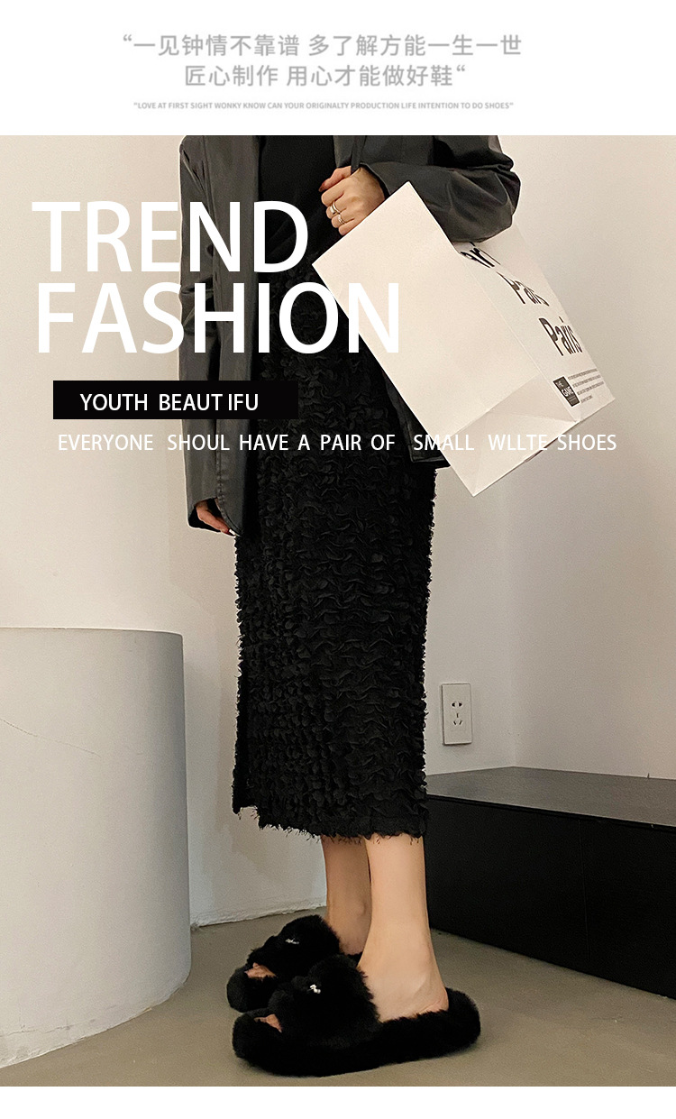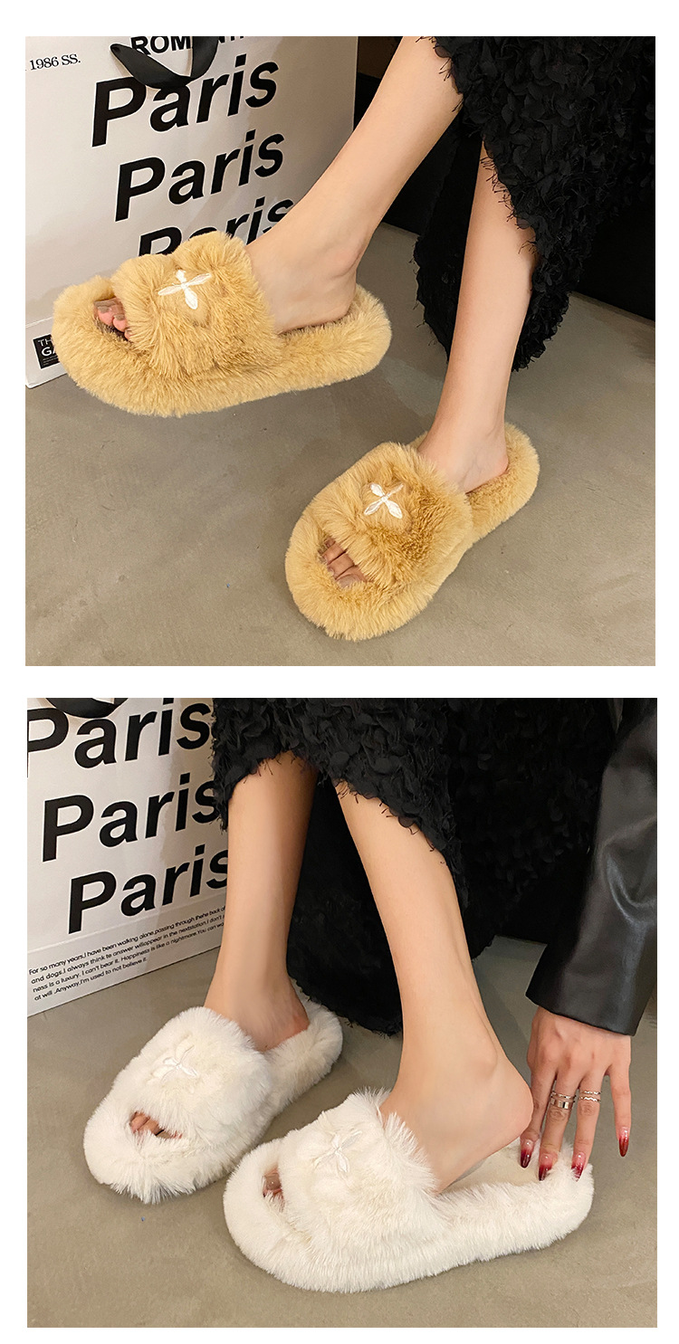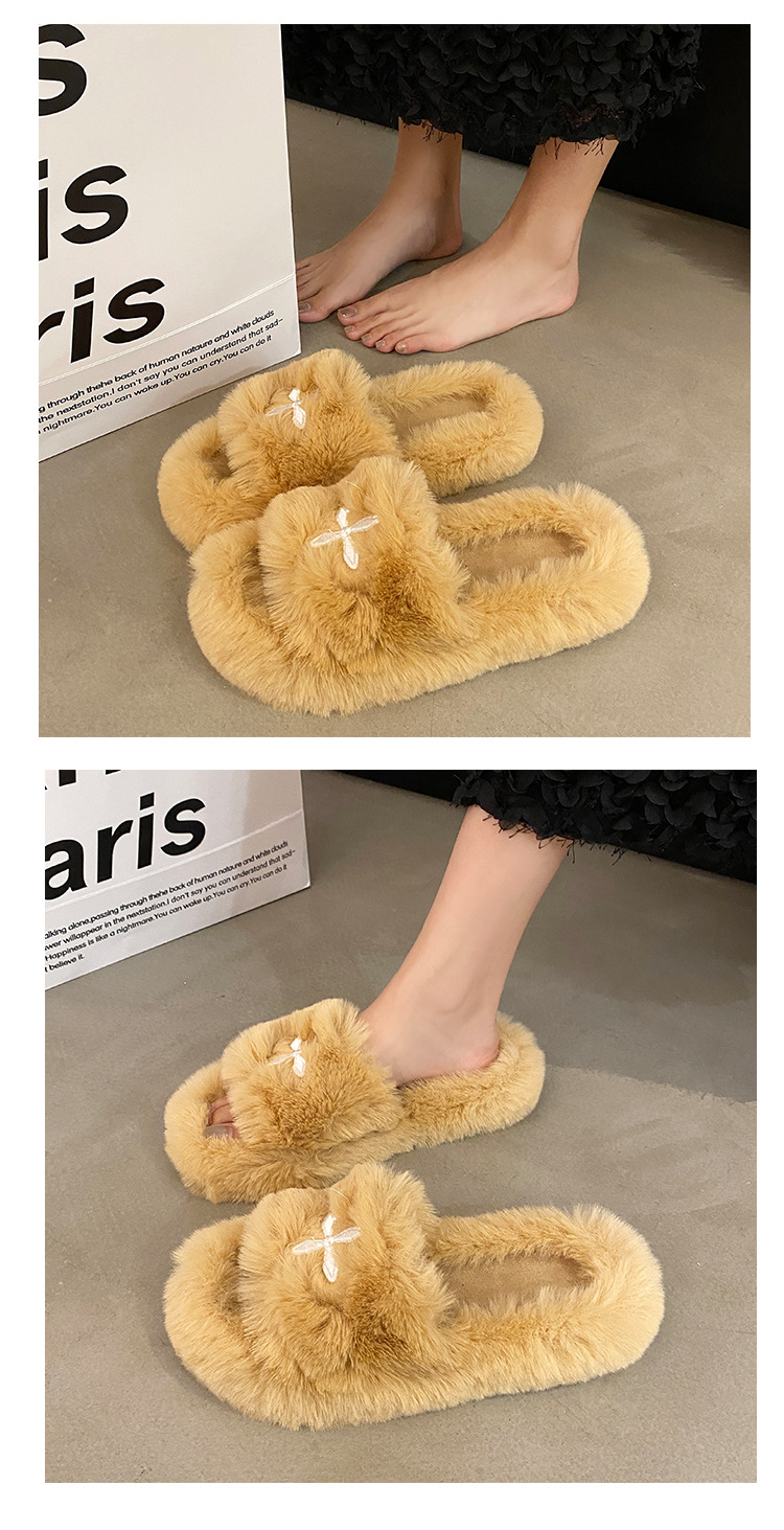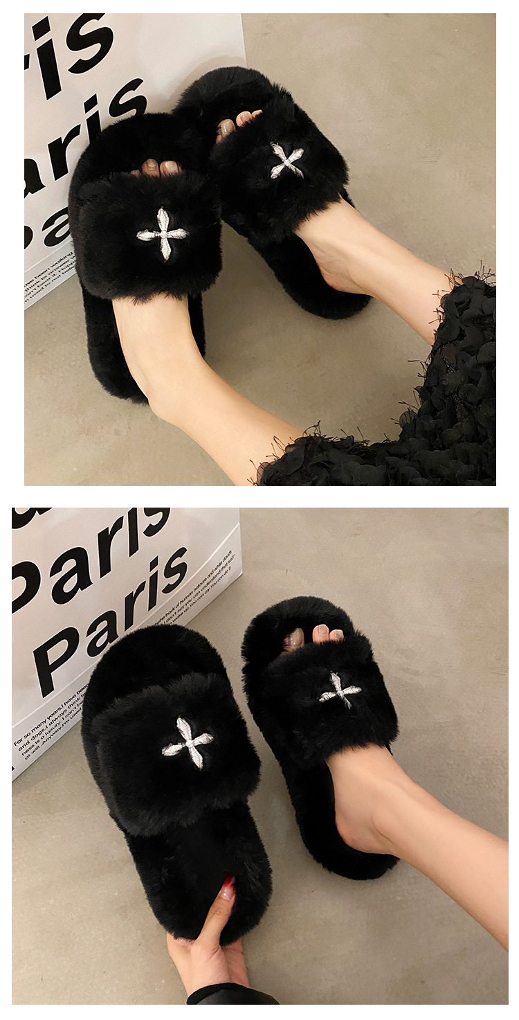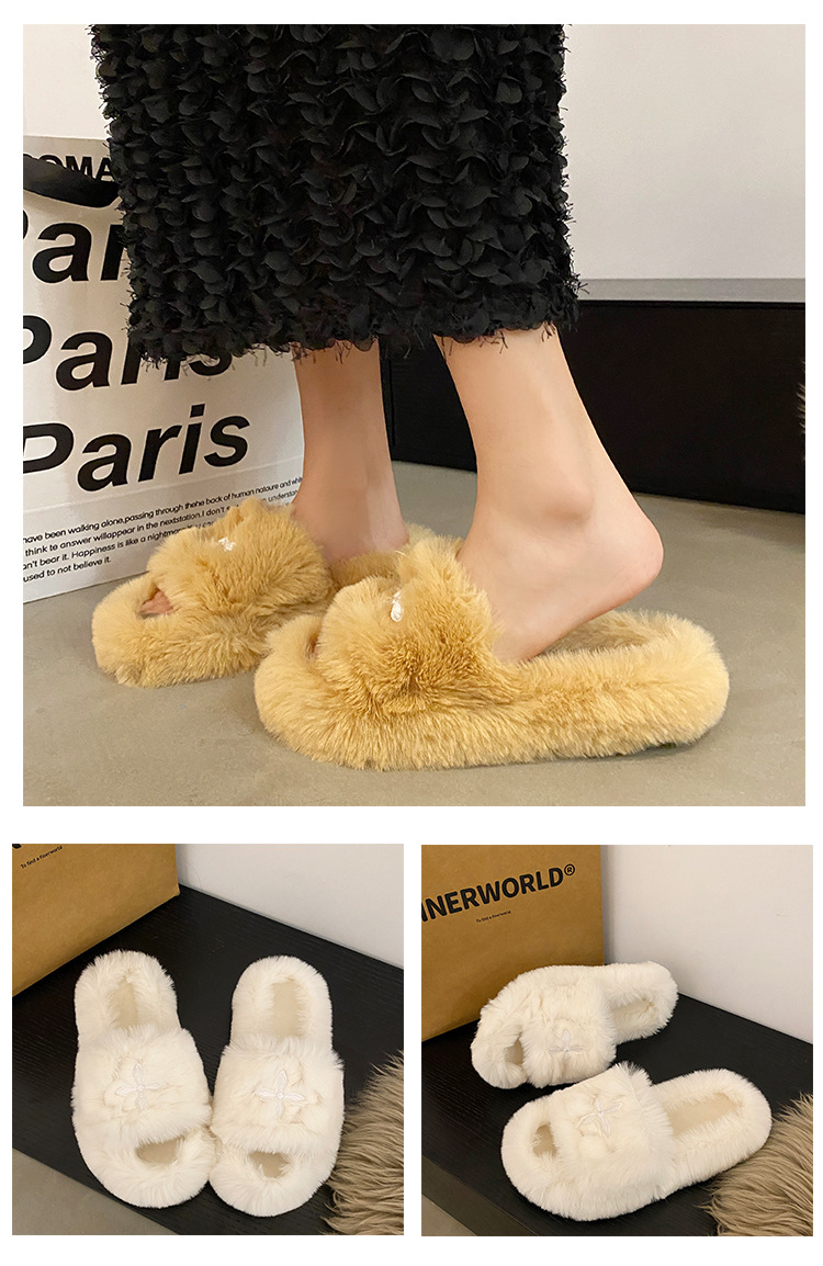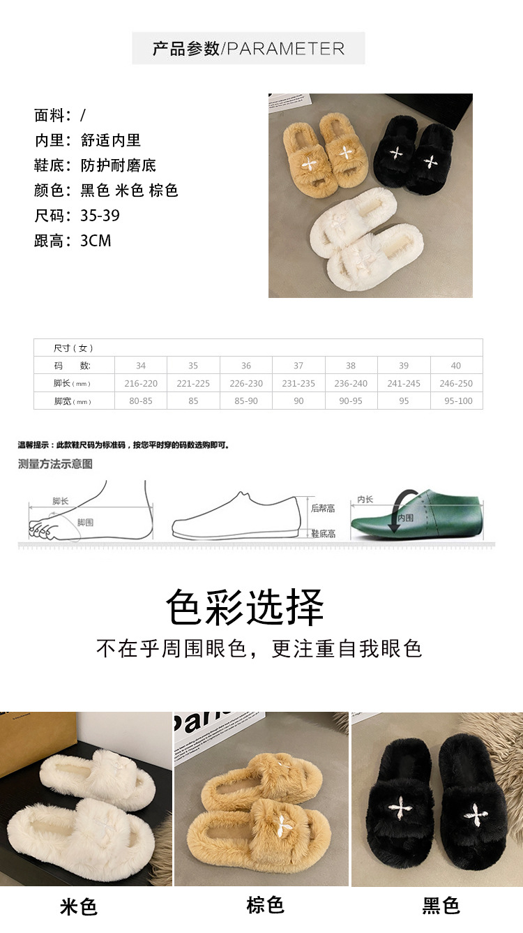 Интернет-красный волосатые тапочки женские осенние и зимние новые бытовые наружные носить нескользкие увеличенные женские теплые хлопчатобумажные тапочки